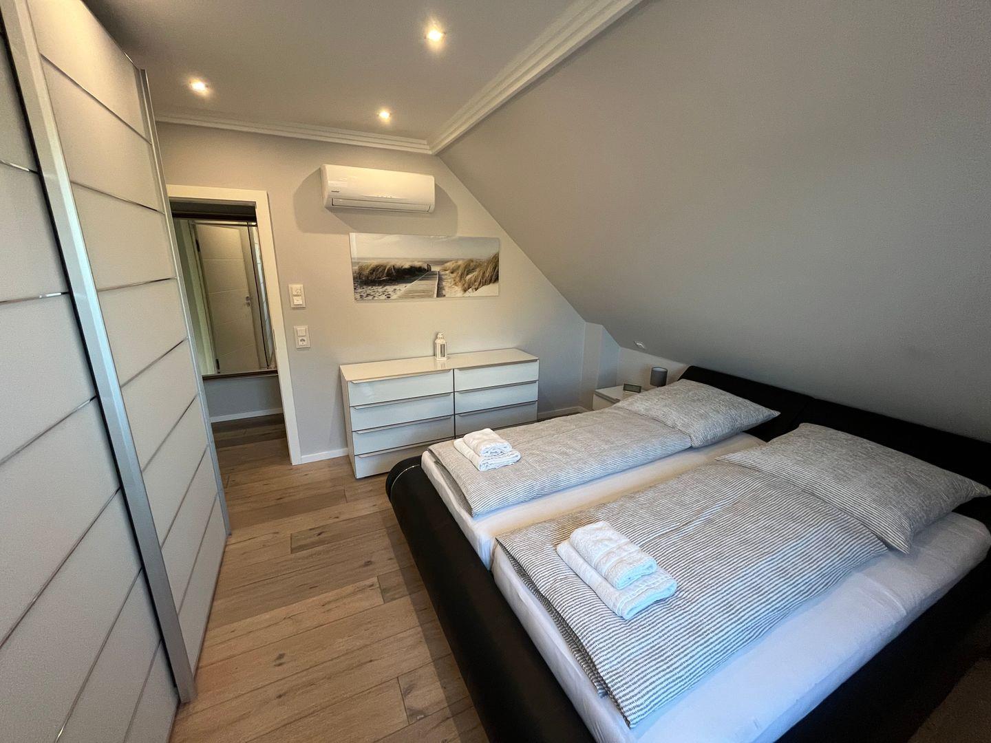 Willkommen in unserem luxuriösen Ferienhaus mit 6 Zimmern und Platz für bis zu 8 Personen (über Weihnachten/Silvester maximal 6 Personen oder nach Absprache). Genießen Sie die ca. 200 m² Wohnfläche, 4 Schlafzimmer und einen großen Fernseher im Wohnzimmer. Entspannen Sie in der Sauna, dem Ruheraum und dem Wellnessbereich im Freien mit Liegen und Außendusche. Ein Whirlpool steht zur Verfügung und dient ausschließlich zum Baden (Frostschutz: Vom November bitte nicht befüllen). Bitte beachten Sie, dass dieser keine Massage- und Heizfunktion hat. Im großen Garten sorgt ein Mähroboter für Pflege, während Sie den Außenbereich mit Tisch, Sonnenschirm, Strandkorb und Gasgrill nutzen können. Waschmaschine, Trockner und Fahrradabstellraum sind vorhanden. Kinder sind durch Treppenschutzgitter geschützt, und der Strand ist nur 300 m entfernt.