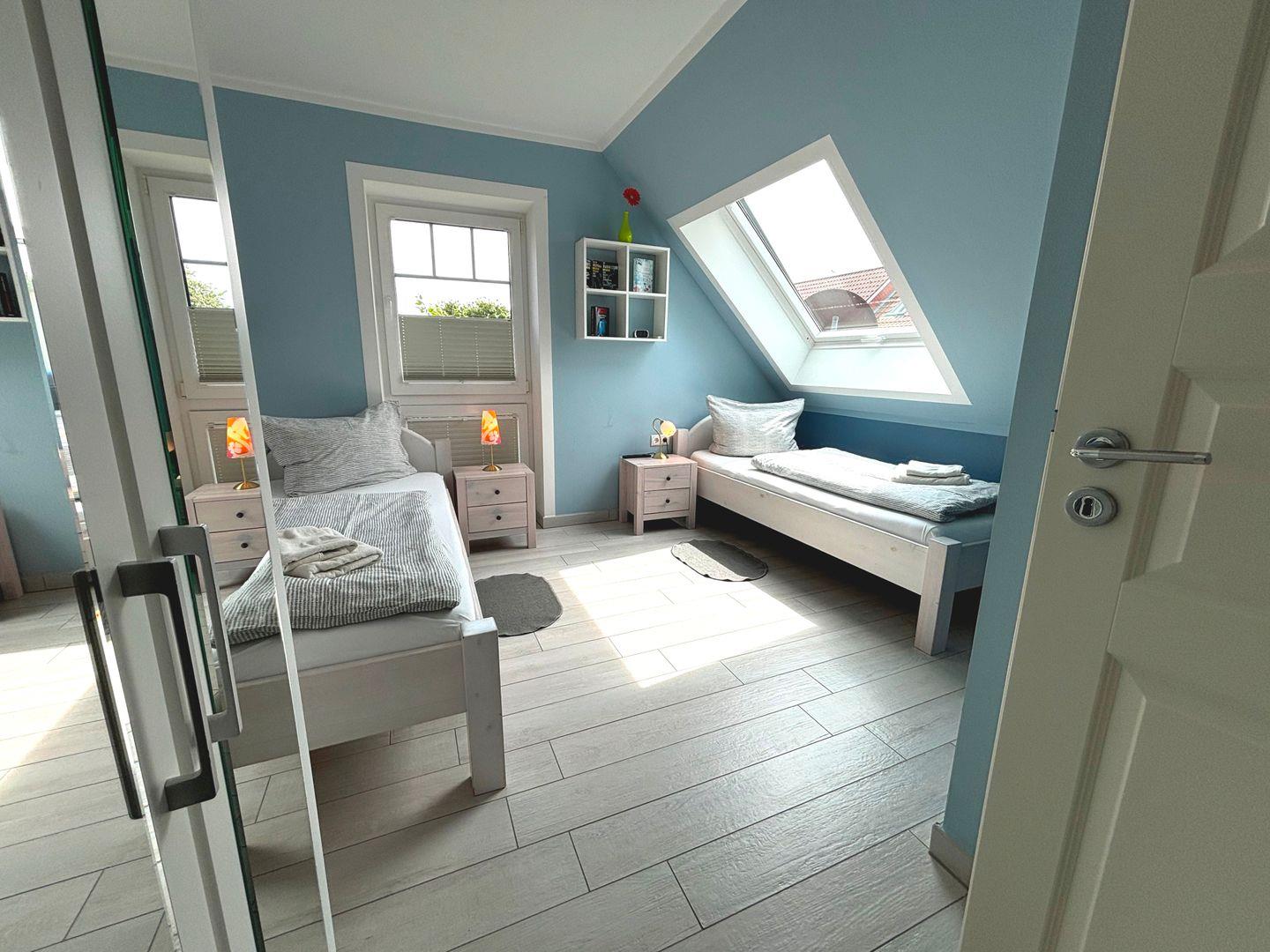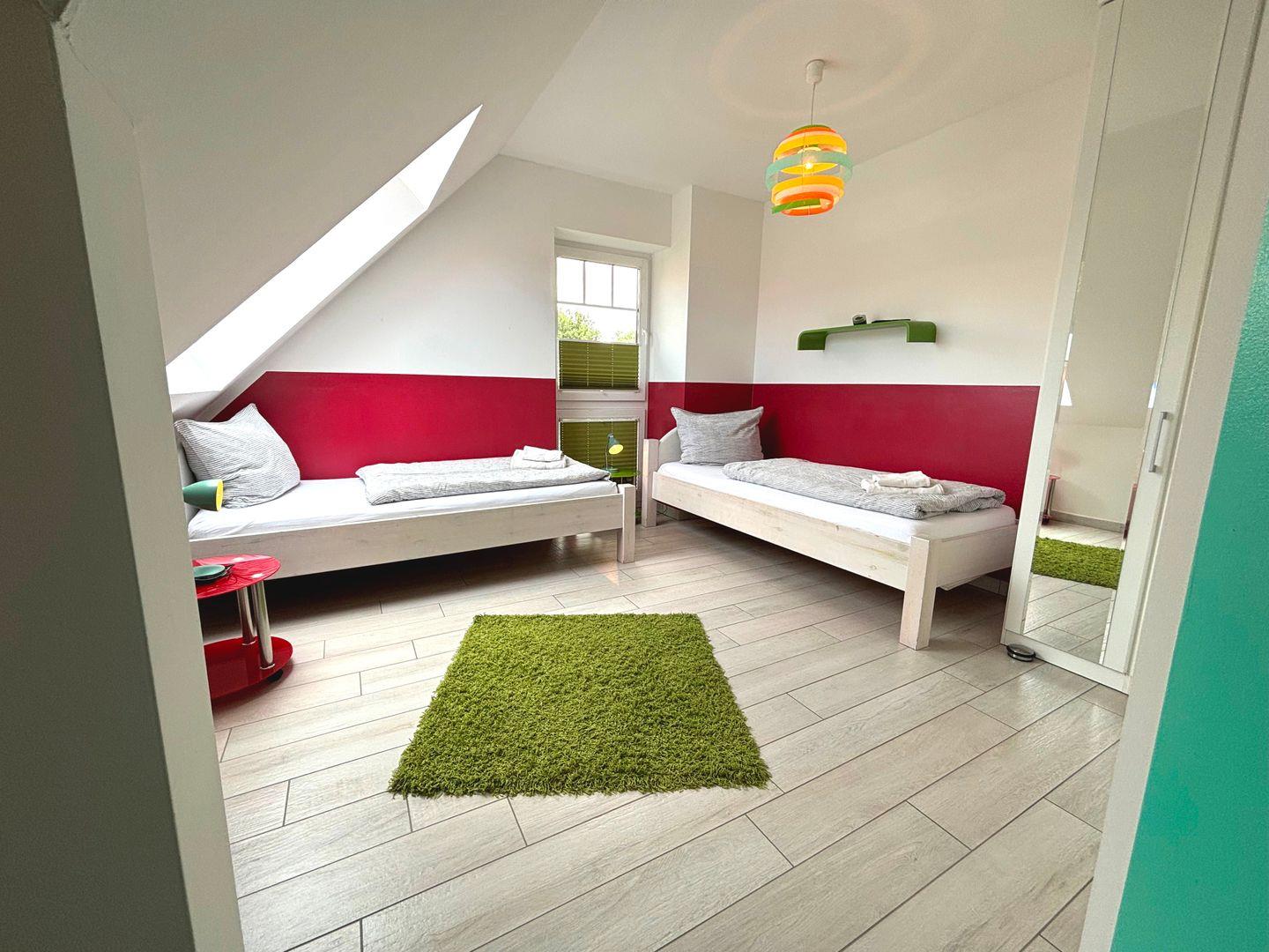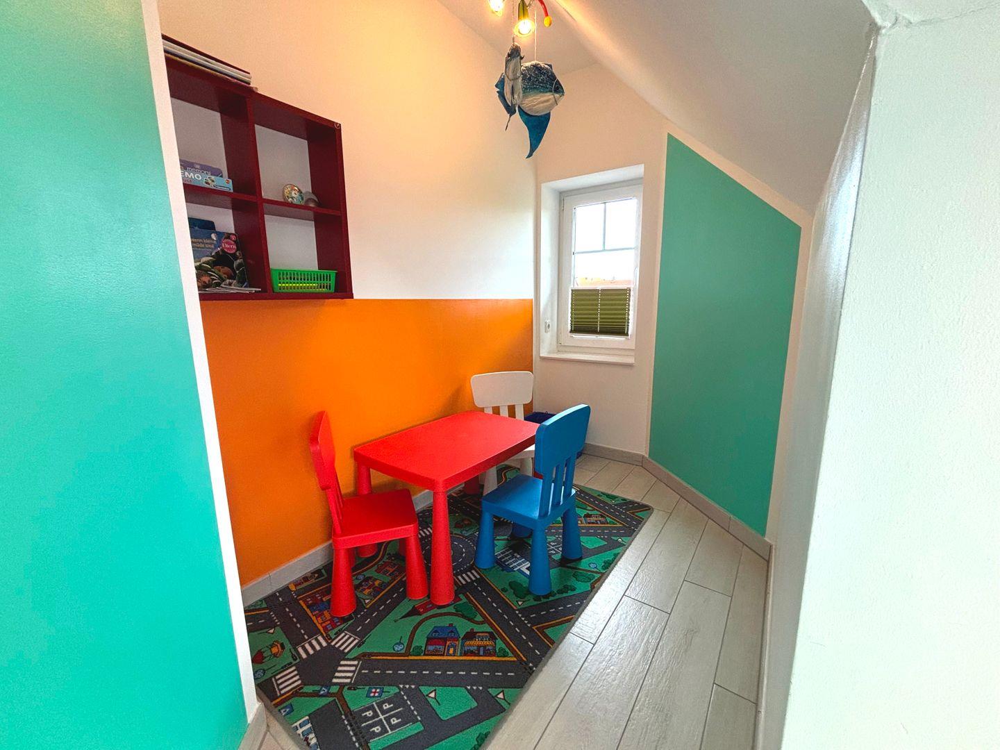 Willkommen in unserem charmanten Ferienhaus mit zwei Etagen, fünf Schlafzimmern, zwei Badezimmern, einer voll ausgestatteten Küche und einem gemütlichen Wohnzimmer mit Kamin. Genießen Sie die möblierte, blickgeschützte Terrasse, den großen Garten mit Sandkiste und Schaukel, sowie die Sauna für entspannte Urlaubstage.