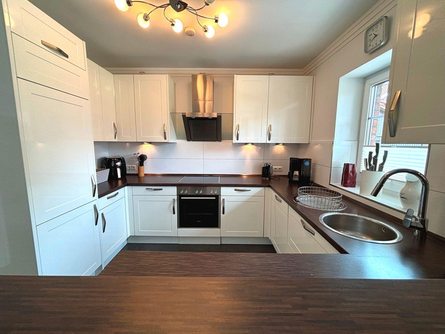 Die voll ausgestattete Küche lässt keine Wünsche offen. Sie verfügt über ein 4-Platten-Ceranfeld, Mikrowelle, Filterkaffeemaschine, Geschirrspüler, Wasserkocher, Dunstabzugshaube, Kühlschrank mit Gefrierfach, Toaster und Eierkocher. Hier können Sie nach Herzenslust kochen und genießen.
