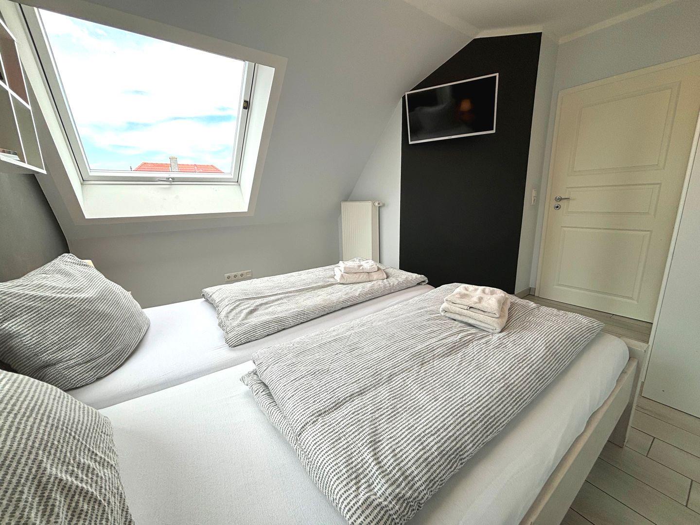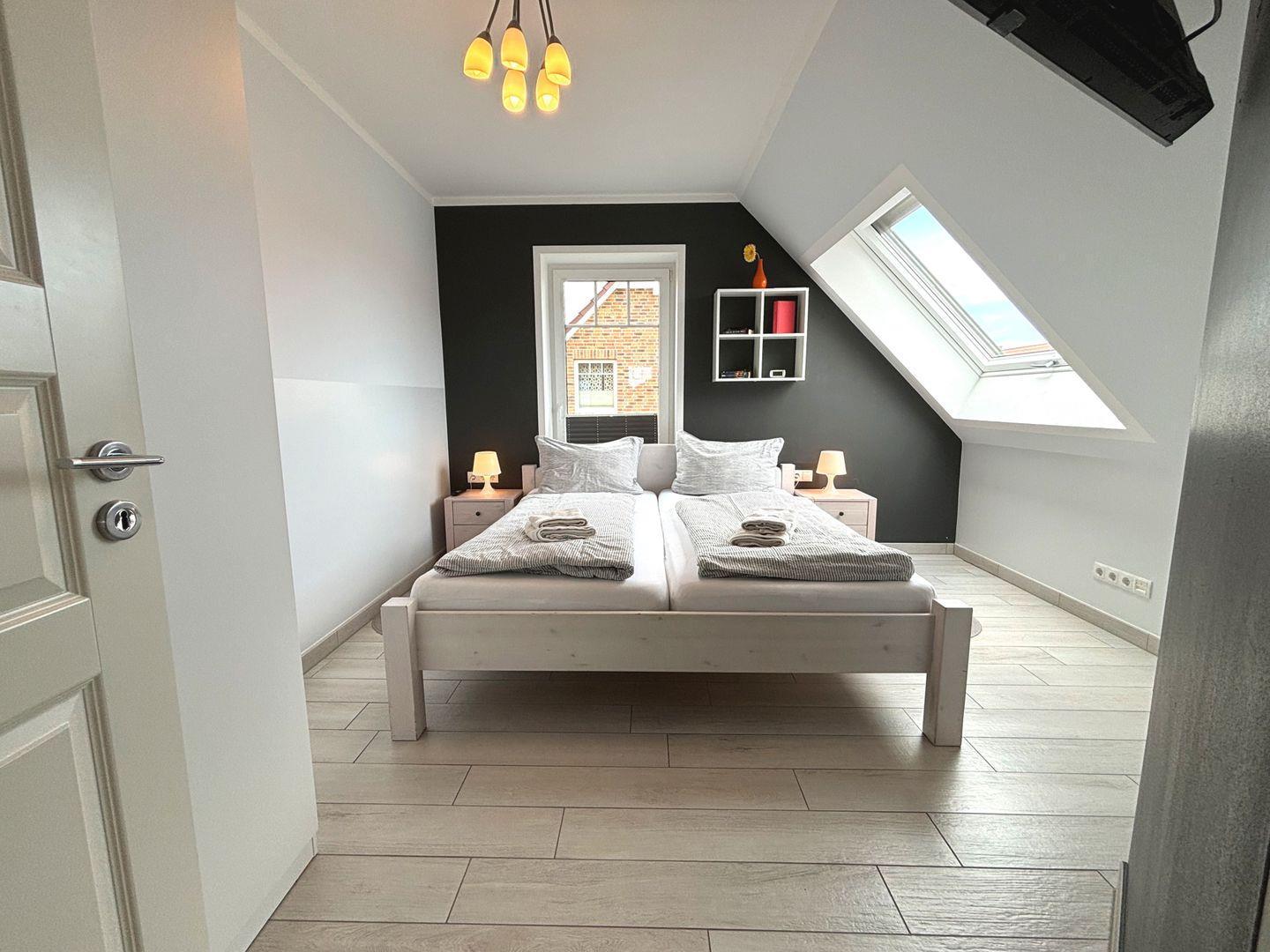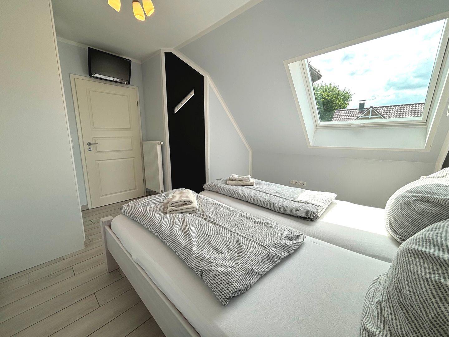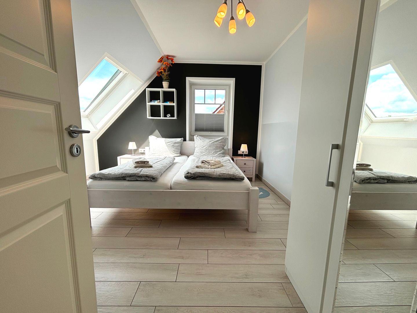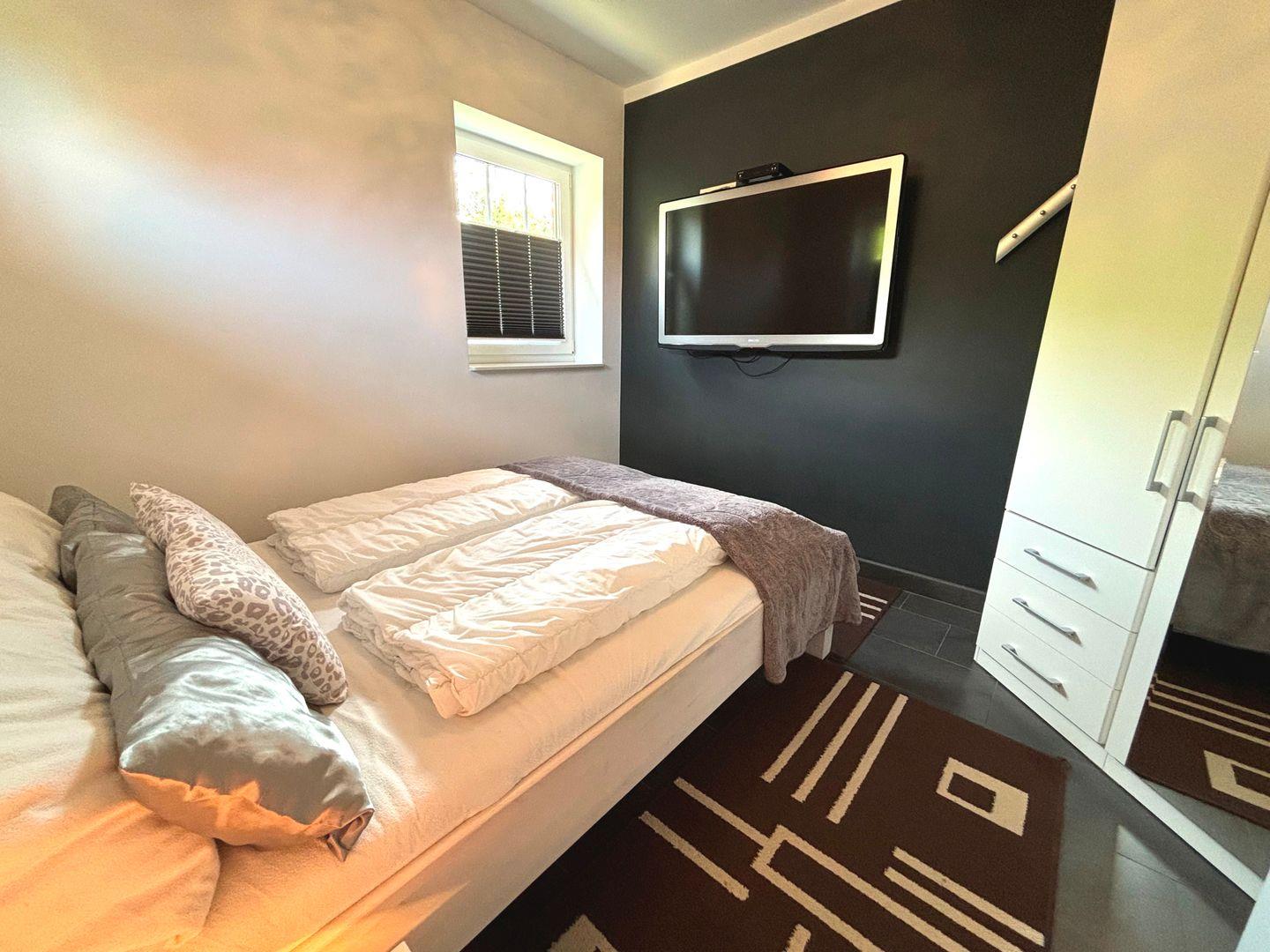 Das Haus bietet insgesamt fünf Schlafzimmer, die alle mit einem Kleiderschrank und einem Fernseher ausgestattet sind. Im Erdgeschoss befindet sich ein Schlafzimmer, während im Obergeschoss vier weitere Schlafzimmer zur Verfügung stehen, die für erholsamen Schlaf sorgen.