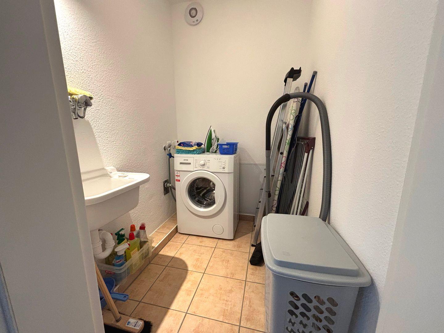Das Badezimmer ist mit einer Badewanne ausgestattet, die zur Entspannung nach einem erlebnisreichen Tag einlädt. Für einfaches Waschen und Trocknen Ihrer Wäsche steht eine Waschmaschine zur Verfügung, und auch ein Bügeleisen sowie ein Bügelbrett sind vorhanden, damit Sie immer einen frischen Look haben.