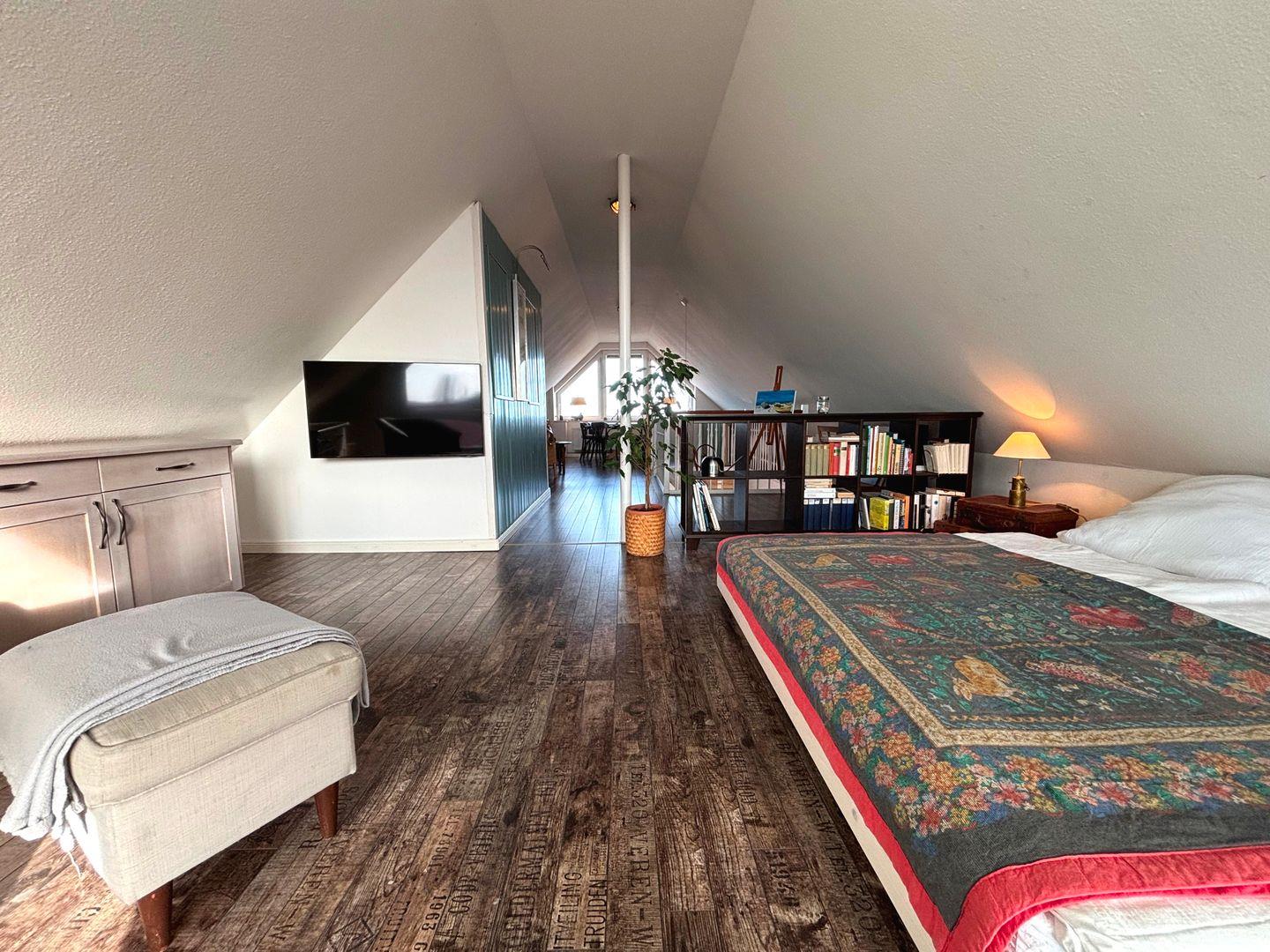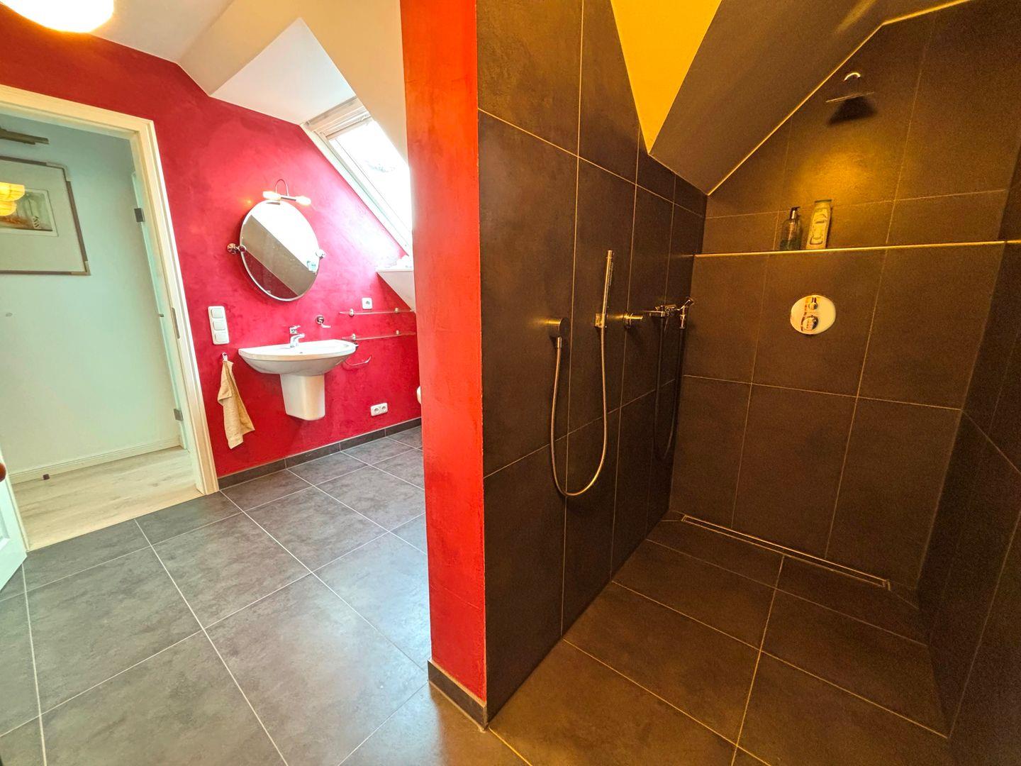 Der barrierearme Zugang, dank Rampe vor dem Haus und Fahrstuhl bis vor die Wohnungstür, erleichtert den Zugang zum Hauptteil der Wohnung z.B. mit Kinderwagen sowie für Person mit eingeschränkter Mobilität. Beide Duschen sind ebenerdig. Lediglich zum oberen Schlafzimmer muss eine Treppe, und um auf den Balkon zu gelangen eine kleine Stufe überwunden werden.