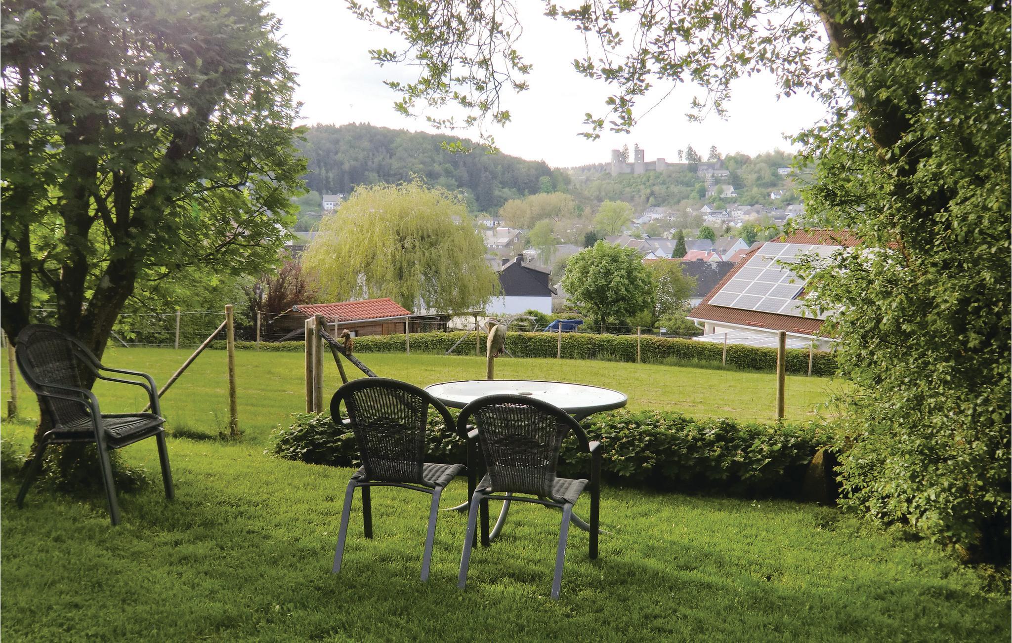 Hold ferie i denne lejlighed i Schönecken, hvor der er udgang til en dejlig terrasse. Her er der fred og ro og I kan slappe af i en dejlig grøn have. Lejligheden ligger på første sal under taget i et stort enfamiliehus. Der er udsigt til byen og dens borgruin, og der er adgang til lejligheden via en udvendig trappe. Indvendigt består lejligheden af opholdsstue, køkken, badeværelse og det halvåbne soveværelse.