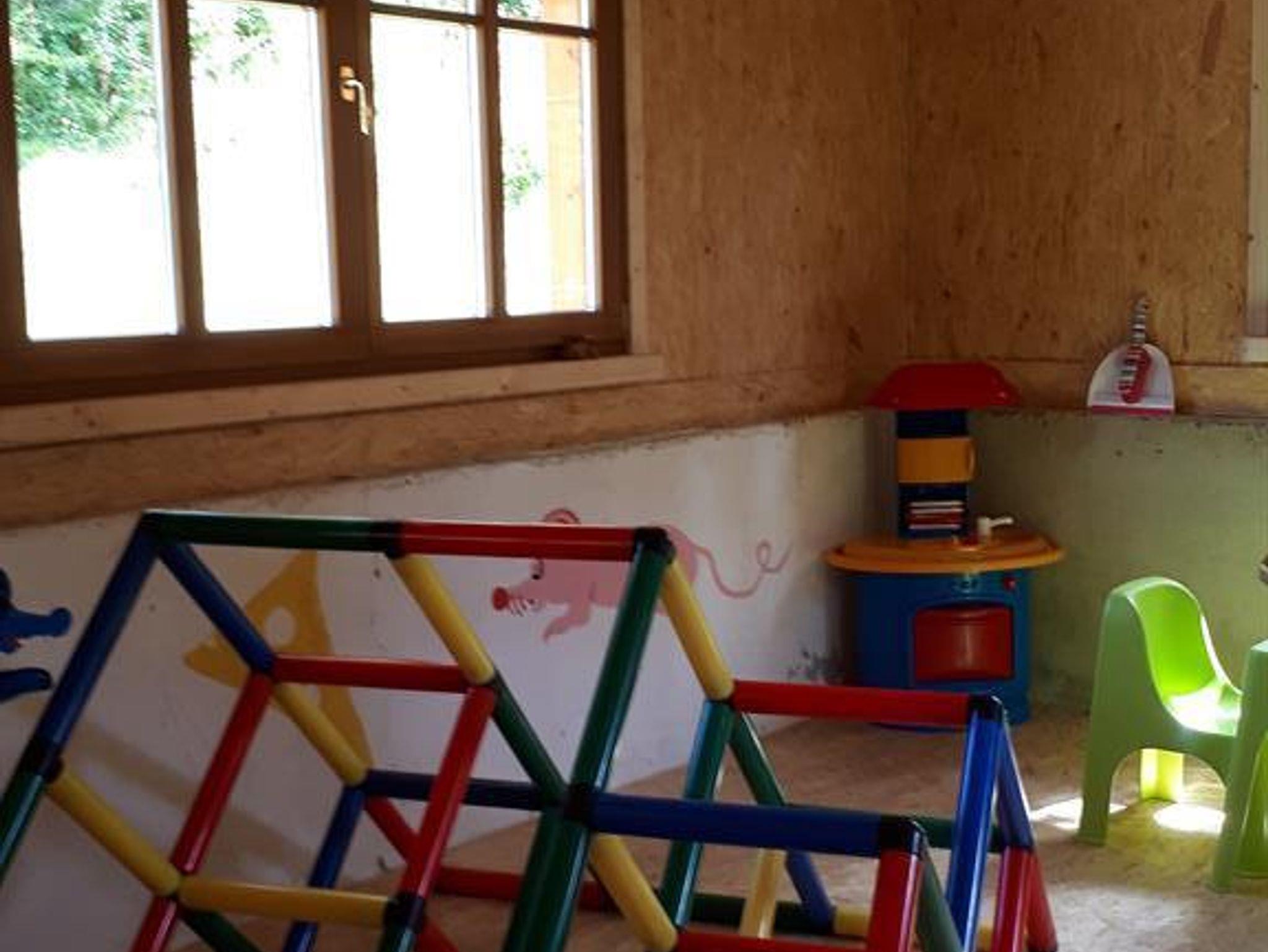 Im Spielhaus gibt es ein Klettergerüst für die Kleinen und viele nette Spielsachen die zum gemeinsamen Spiel einladen. Im Außenbereich Rutsche und Schaukeln.