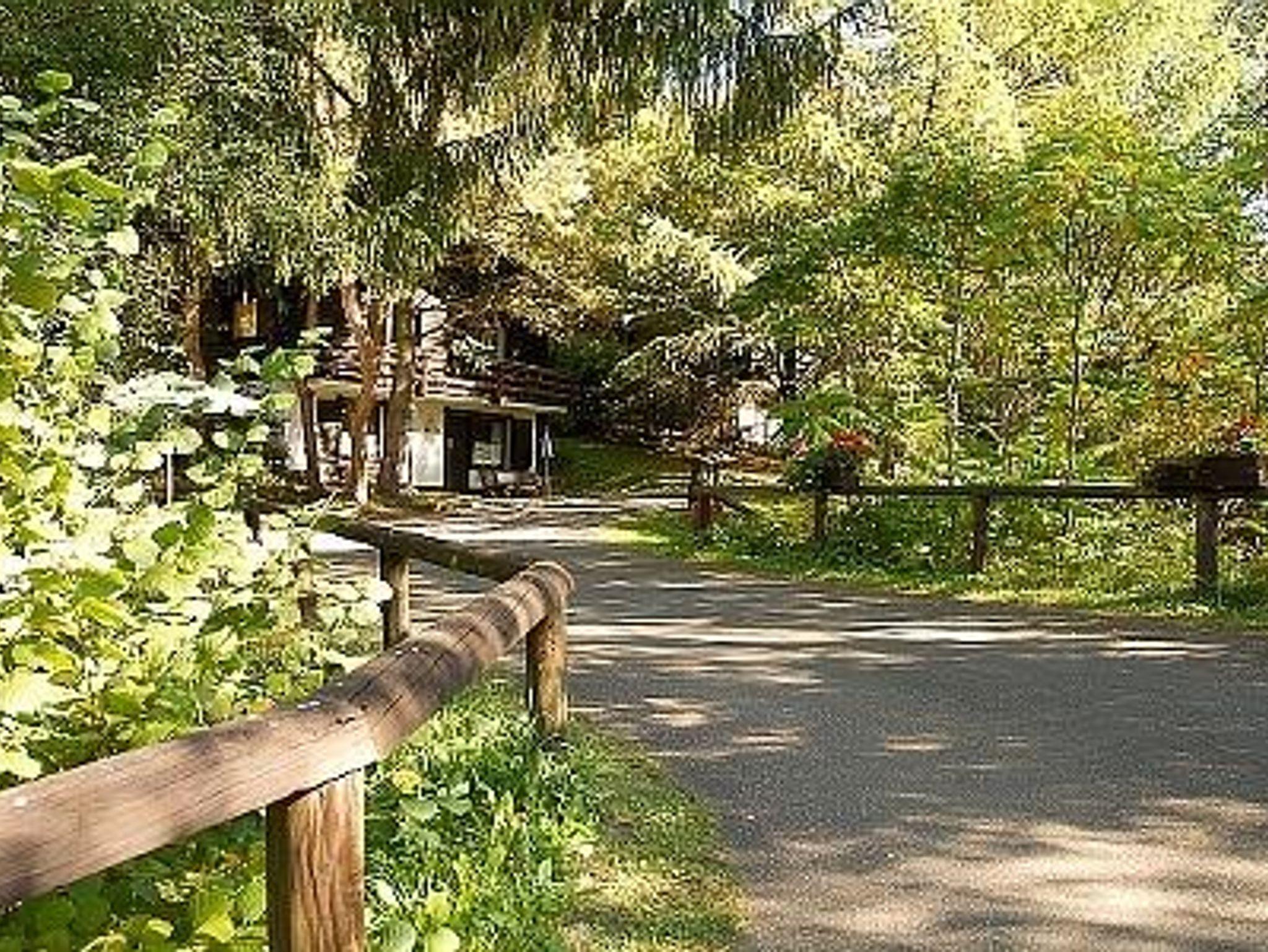Außerdem großes Rasenspielfeld für Volleyball und Basketball, Tischtennisplatte, Gartenschach, kleiner Weiher mit Grillplatz, Waschmaschine und Trockner mit Münzautomat