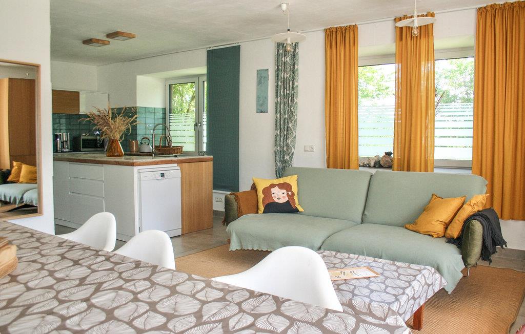 I bor ud til et dejligt engområde og kun fem minutters kørsel eller en kort cykeltur fra Østersøen. Det er nemt at parkere ved stranden. Dörphof ligger lige ud til Østersøen, hvor der er en fin sandstrand og et tilstødende naturreservat. Glæd jer til det store netværk af cykel- og vandrestier, hvor I kan tage på fantastiske ture. På den modsatte side af Østersøen løber Slien, som er Tysklands eneste naturlige fjord, som I også kan opleve fra cykelsadlen eller i båd. Kappeln er en nærliggende by med en dejlig havn, god gastronomi og detailhandel, så her kan I også lægge vejen forbi.