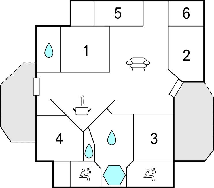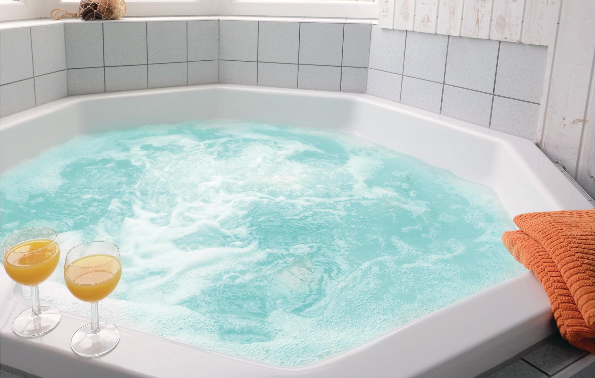 Med et tryk på en knap kan I vælge mellem klassisk sauna, tropebad, soft-dampbad, aromabad eller varmluftsbad. Den gode oplevelse understøttes af et specielt 'lyd- og farvevandfald'. Bagefter anbefaler vi et koldt brusebad og en pause på hvile- og massagebænken. Prøv også stenfeltet på gulvet, der benyttes til zoneterapi eller tag et bad i det sprudlende 5-personers spabad.