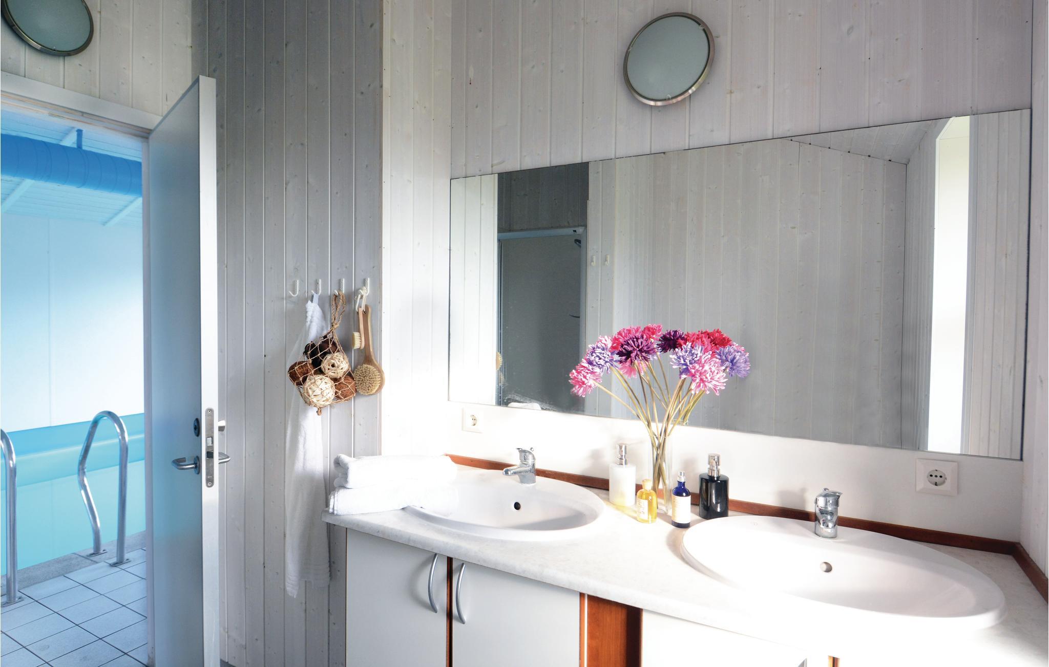 Og i modsætning til de fleste andre badeverdener skal I ikke dele denne med nogen - det er nemlig jeres helt private, og det står udelukkende til rådighed for jer! I kan bruge badet uden at skulle forlade huset overhovedet. Fra opholdsstuen har I med andre ord kun få skridt til jeres eget lille badeparadis: swimmingpoolen, der står til jeres rådighed med vandrutsjebane og en lille, særskilt børnepool. Her kan I boltre jer i vandet i alle slags vejr, på alle tider af året og uanset, om solen skinner eller ej. Her kan I sprøjte med vand, rutsje, lege og svømme - alt efter, hvad I har lyst til, store som små. Og hvis I så alligevel gerne vil have endnu mere, så har I også mulighed for at hygge jer i det store spabad, der venter lige ved siden af swimmingpoolen, og som kan rumme helt op til 5-7 personer. Her kan I roligt koble helt fra!