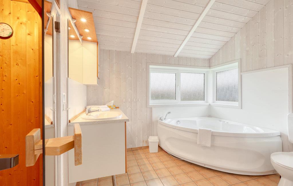 - Nogle billeder er eksempler. Gulvbelægningens art, farven på huset og indretning kan variere. I alle huse er whirlpool og sauna ens.