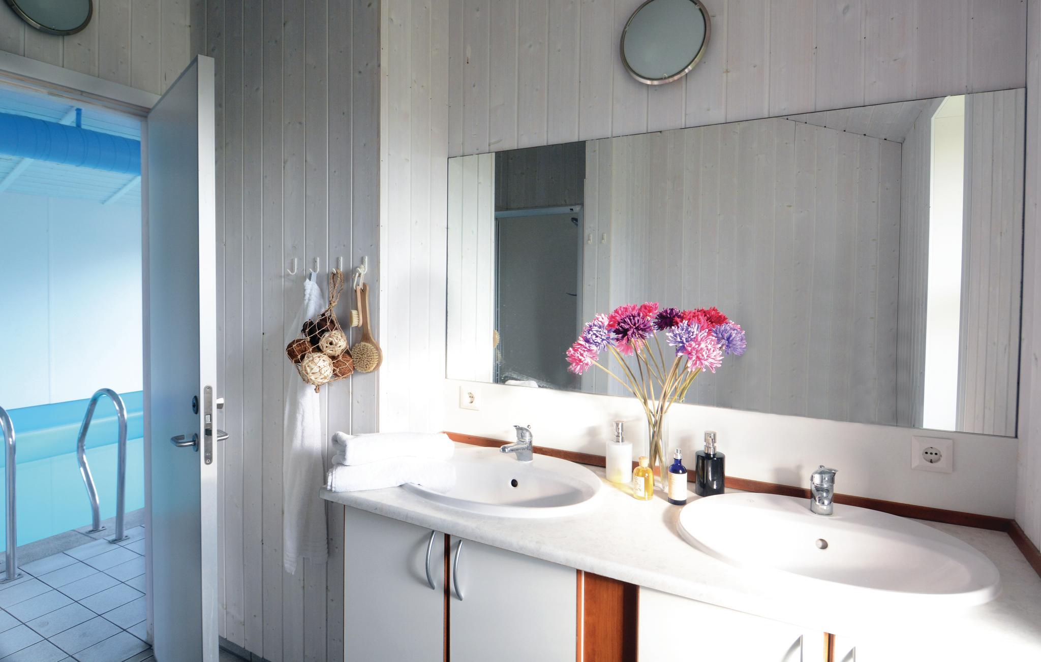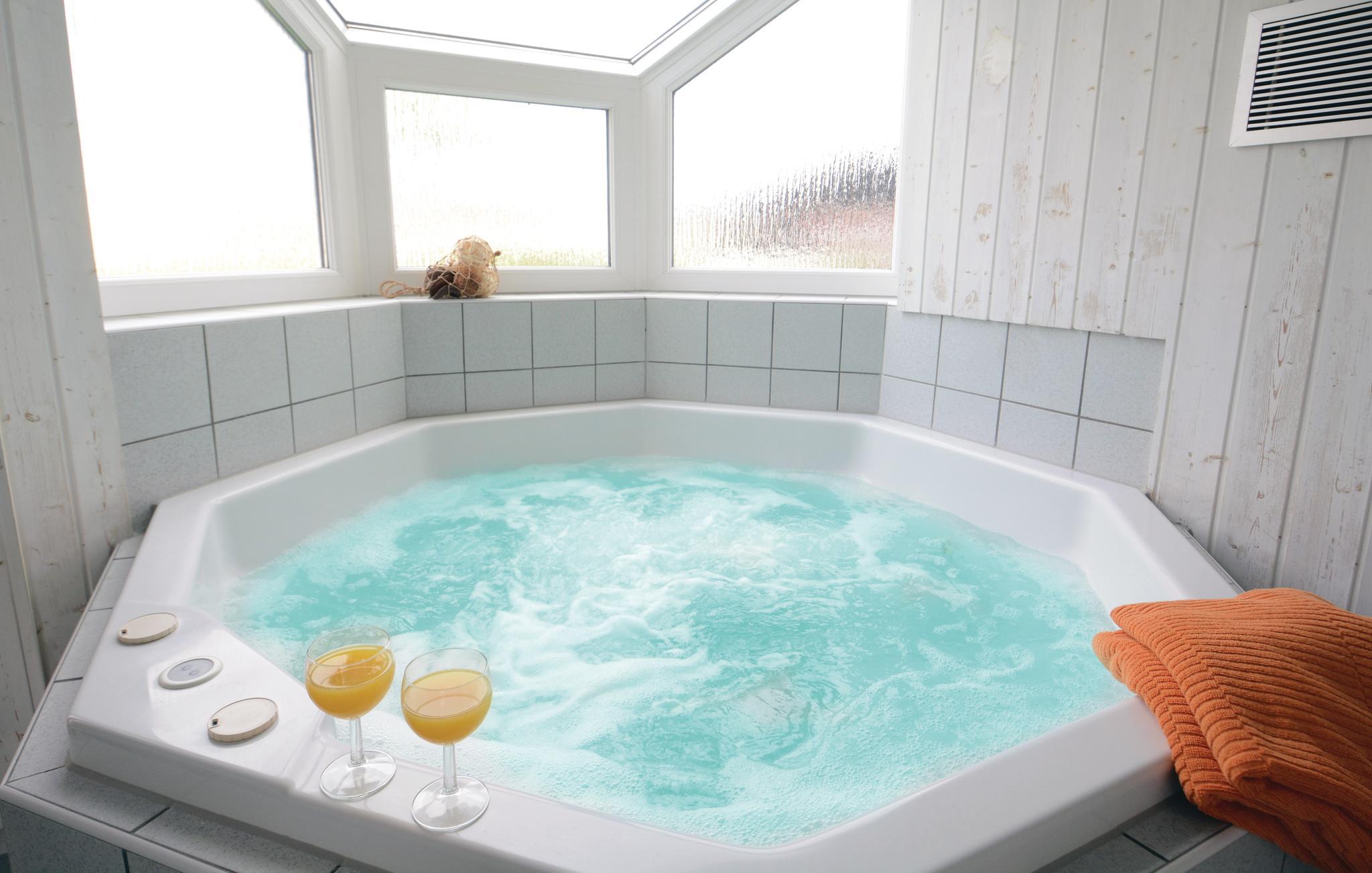 - Nogle billeder er eksempler. Gulvbelægningen, farven på huset og indretningen kan variere. I alle husene er whirlpool og sauna ens.