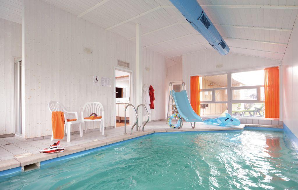 Dette dejlige hus med egen swimmingpool, spabad og sauna ligger lige i nærheden af stranden med det fine sand og i en bebyggelse med hyggelige feriehuse. Uanset om det stormer eller regner - her kan I bade i al slags vejr.