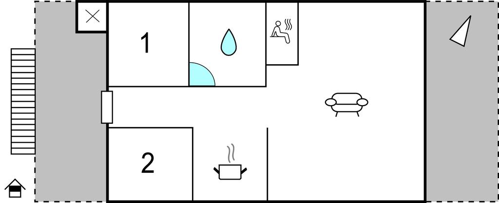 Jeres lejlighed ligger på første sal og i kommer op til den over en gittertrappe uden på huset. På havsiden har den en overdækket balkon (loggia), hvor liggestole indbyder jer til at slappe af. En grill har I selvfølgelig også.