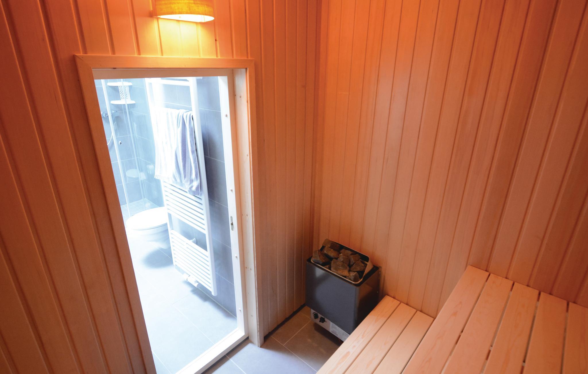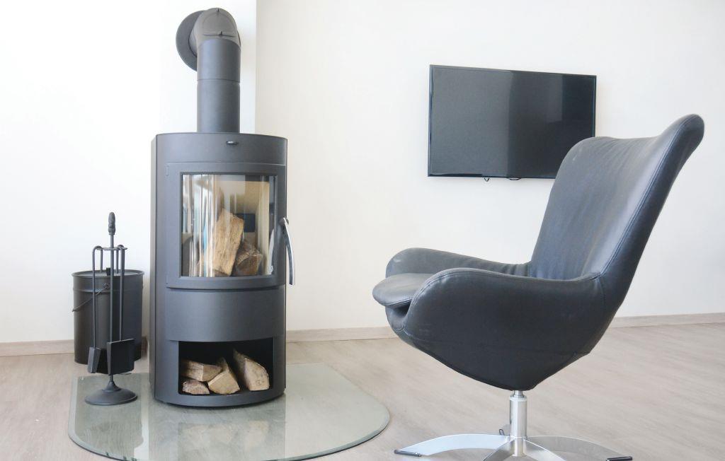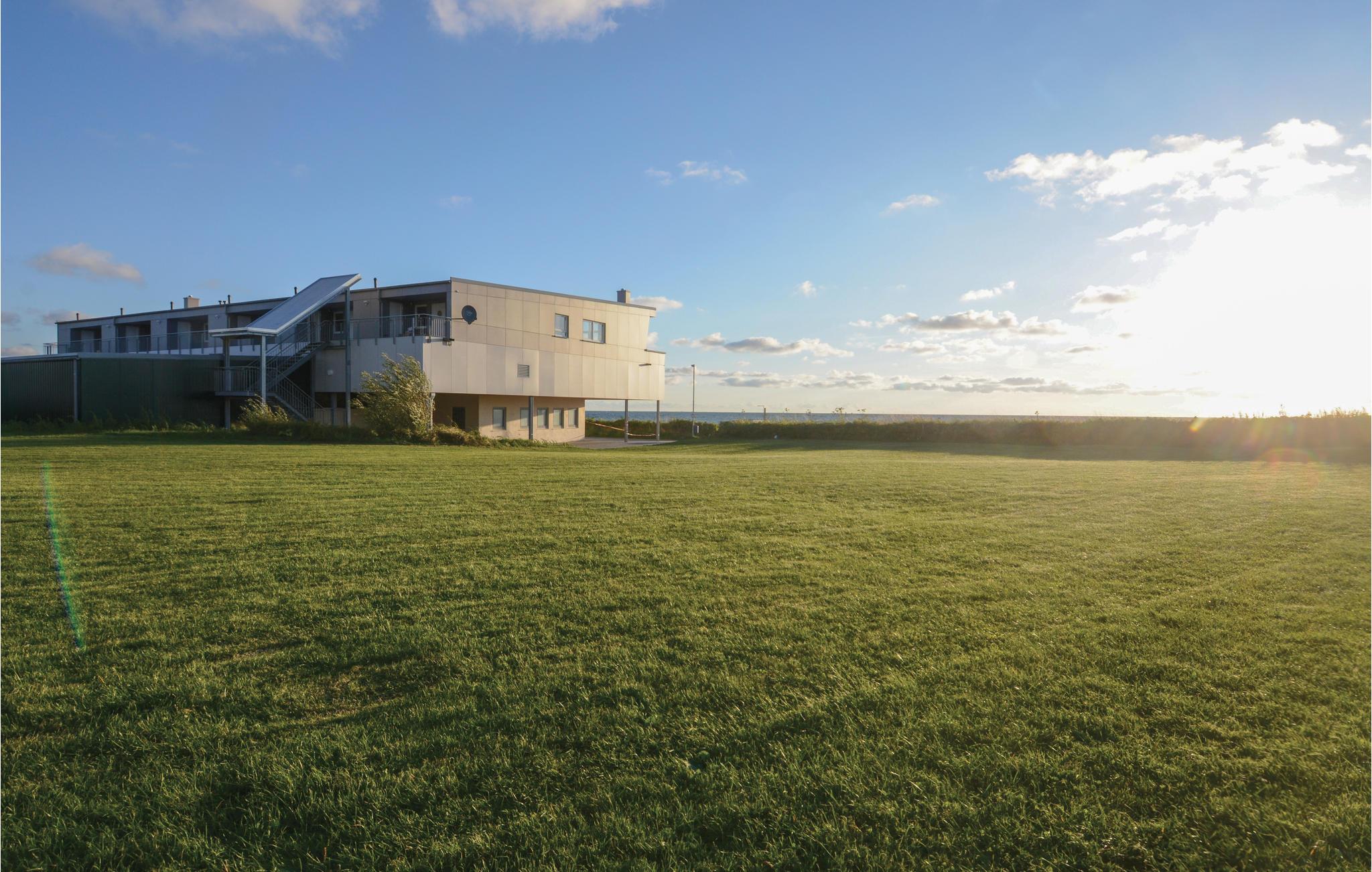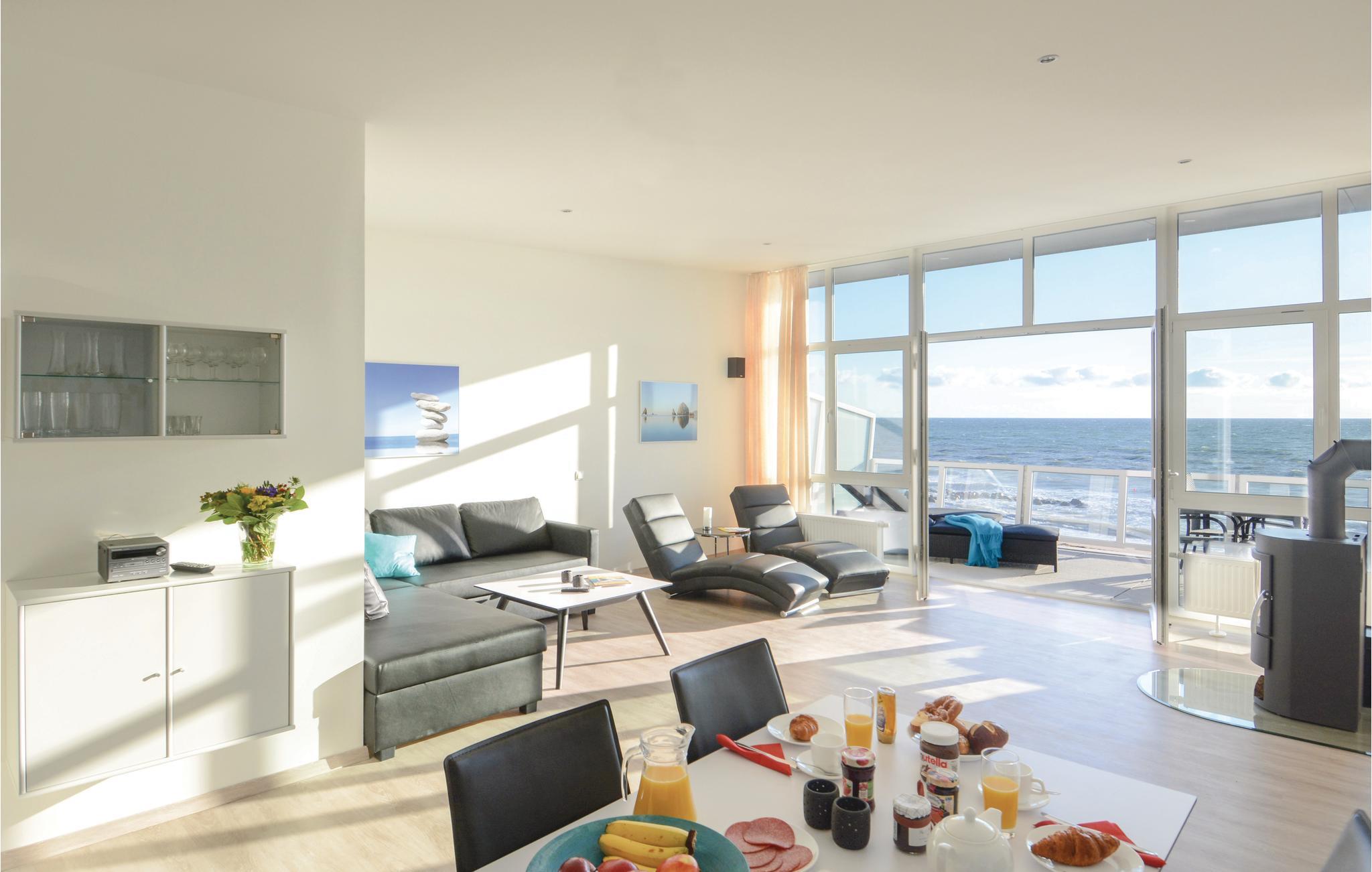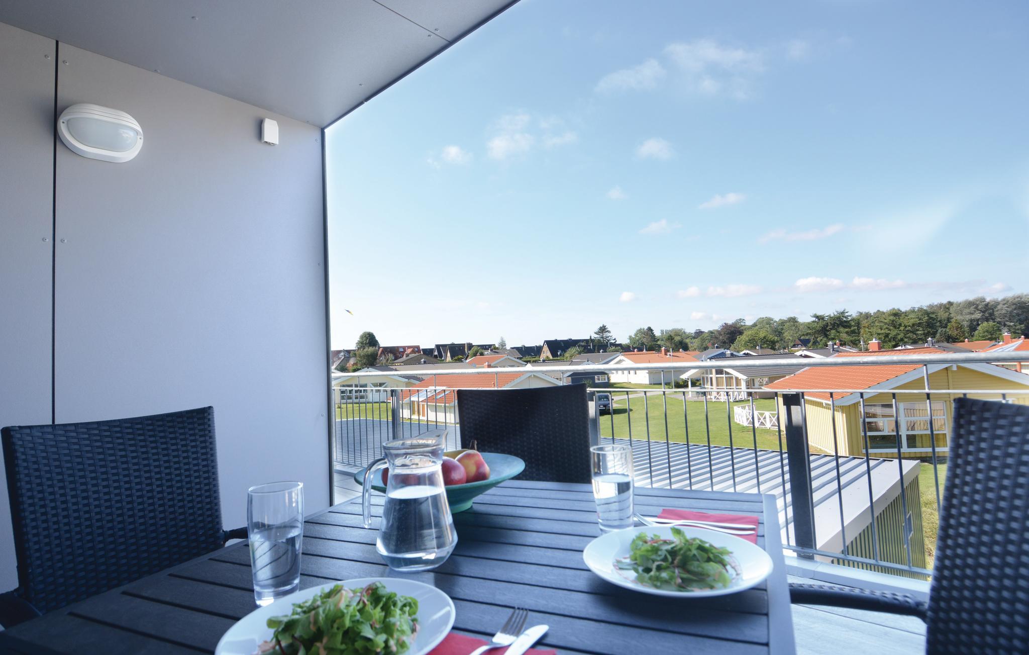 På den anden side er svalegangen med indgang til de i alt seks lejligheder i huset. Fordi svalegangen er så stor, kan den også bruges som loggia. Her har I bord og havestole, hvor I kan nyde den varme aftensols sidste stråler. Ferielejligheden har med sine 110 m² meget plads til op til seks personer (to sovepladser på sofaen til at trække ud, i opholdsområdet) og har sin egen lille wellnessoase med topersoners whirlpool og sauna. Om vinteren sørger den skandinaviske kamin for en særligt hyggelig atmosfære - her kan I foruden den knitrende kaminild nyde panoramaudsigten over den stormfulde Østersø.