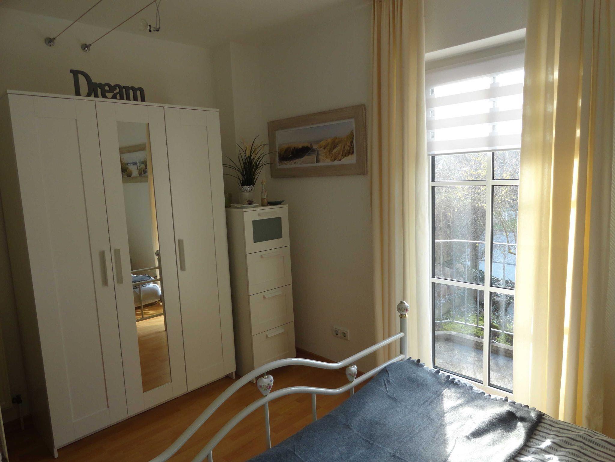 Die 2-Zimmer-Ferienwohnung Strandglück hat ca.46qm Wohnfläche für max. 3 Personen und besteht aus: Wohnzimmer mit Couchgarnitur (Schlafcouch für 1 Person) und Essbereich; Schlafzimmer mit Doppelbett (2x90x200 cm) und Kleiderschrank; Küchenzeile im Flurbereich mit 4-Kochzonen-Ceranfeld, Minibackofen und Geschirrspüler; Bad mit Wanne (Duschmöglichkeit) und WC; möblierte Terrasse zur Süd-Ostseite und Balkon zur Westseite; PKW-Stellplatz; abschließbare Fahrradunterstellmöglichkeit, kostenfreies WLAN in der Wohnung.