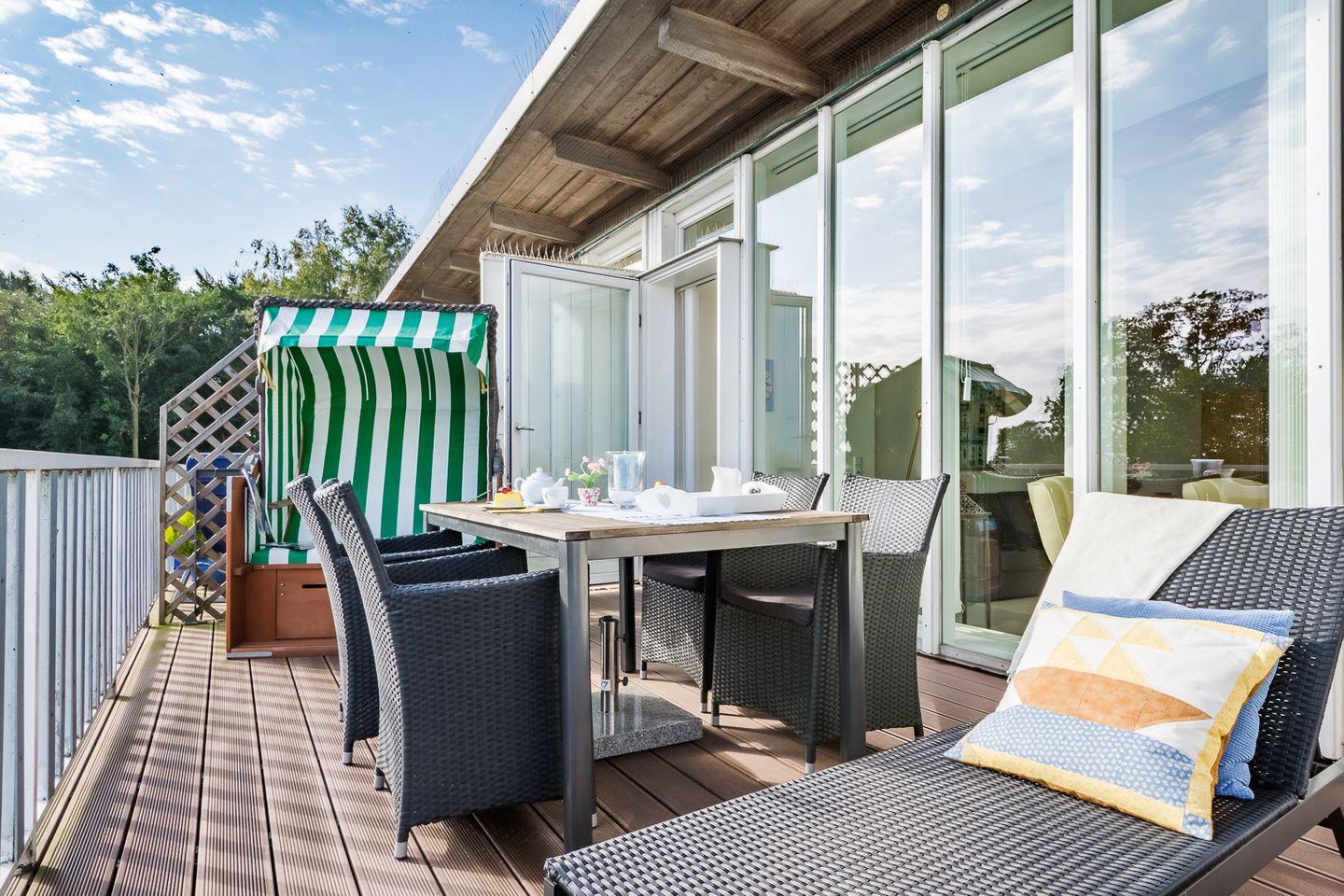 Der Strandkorb auf der Dachterrasse lädt zu gemütlichen Abenden ein.