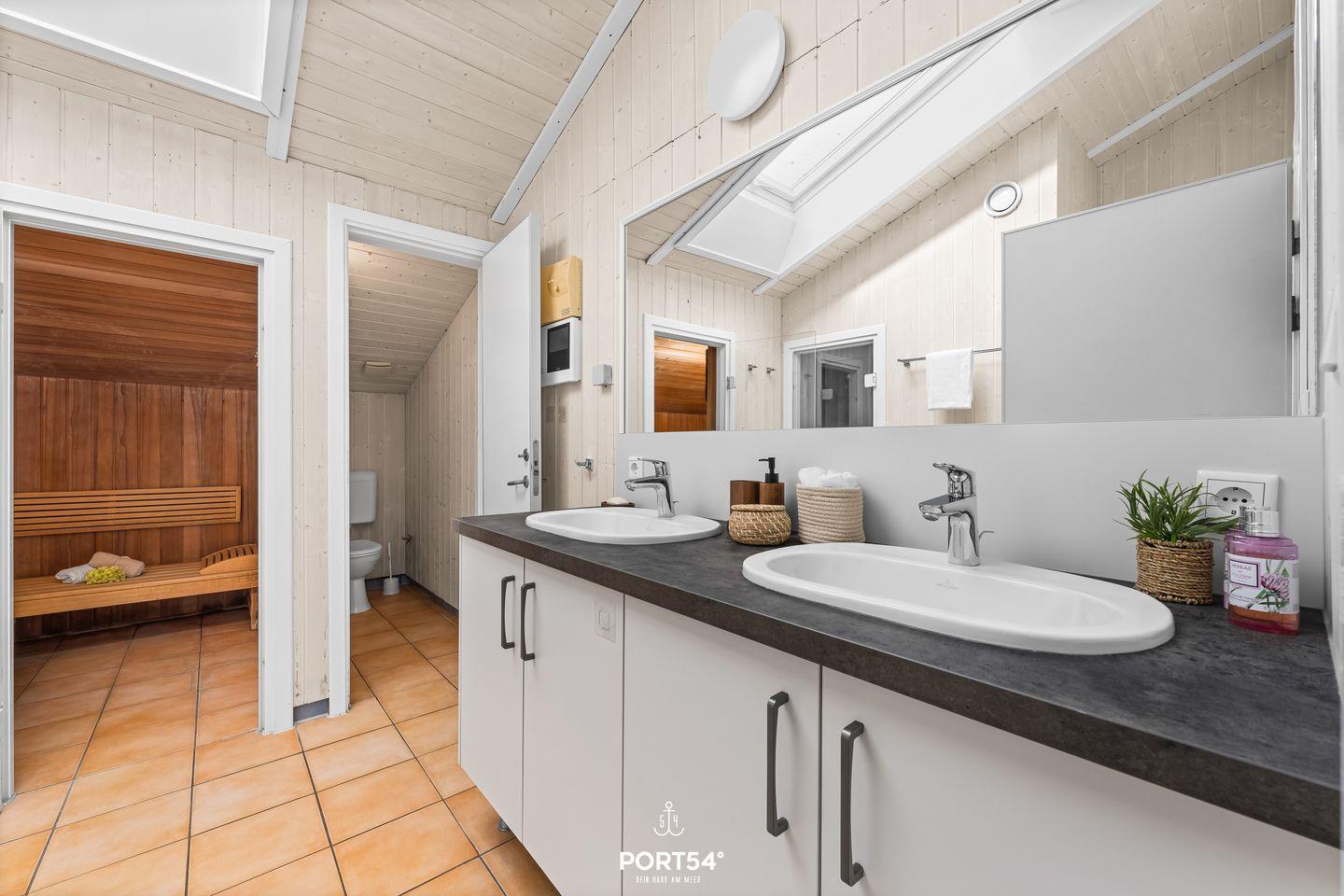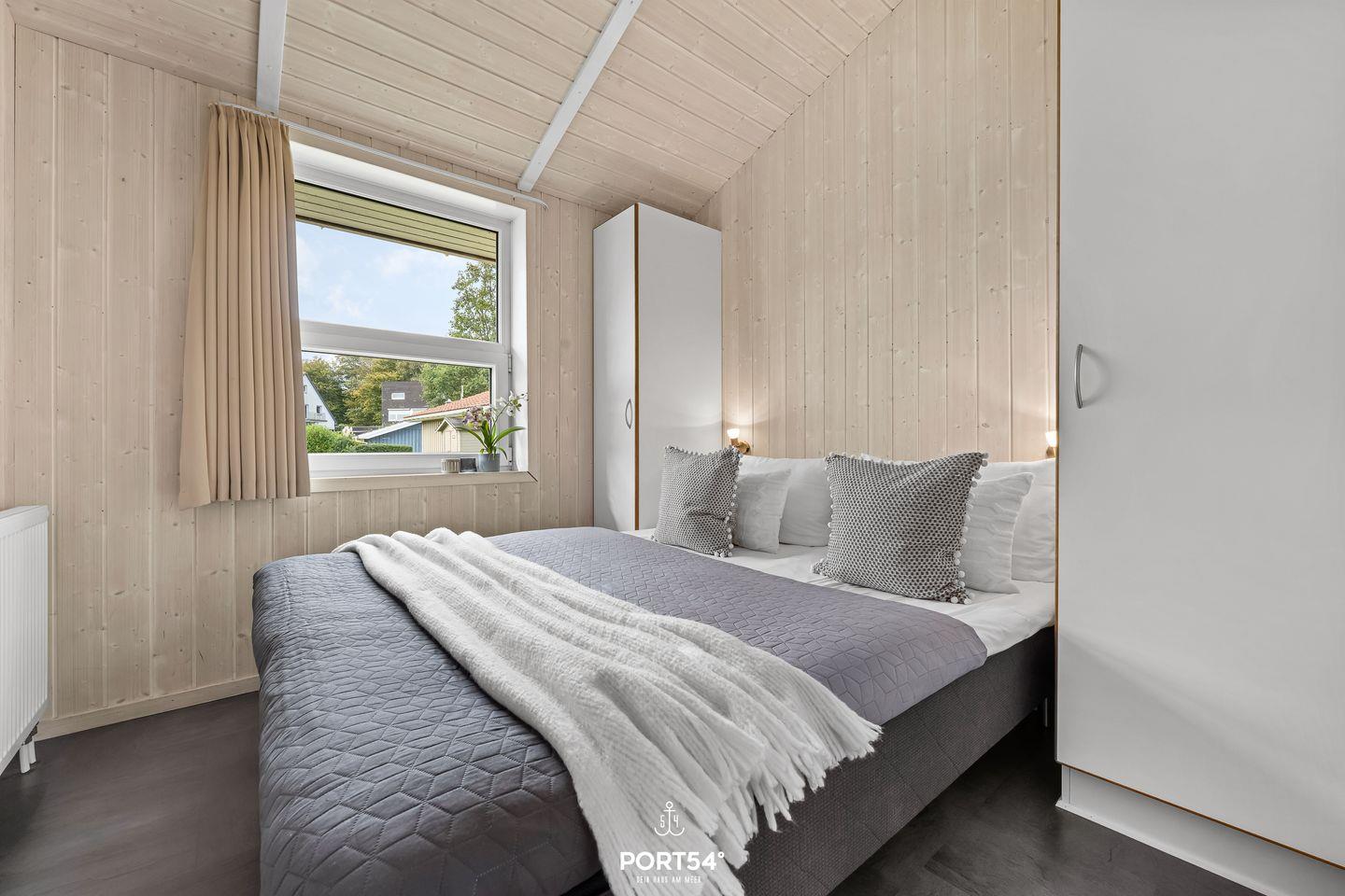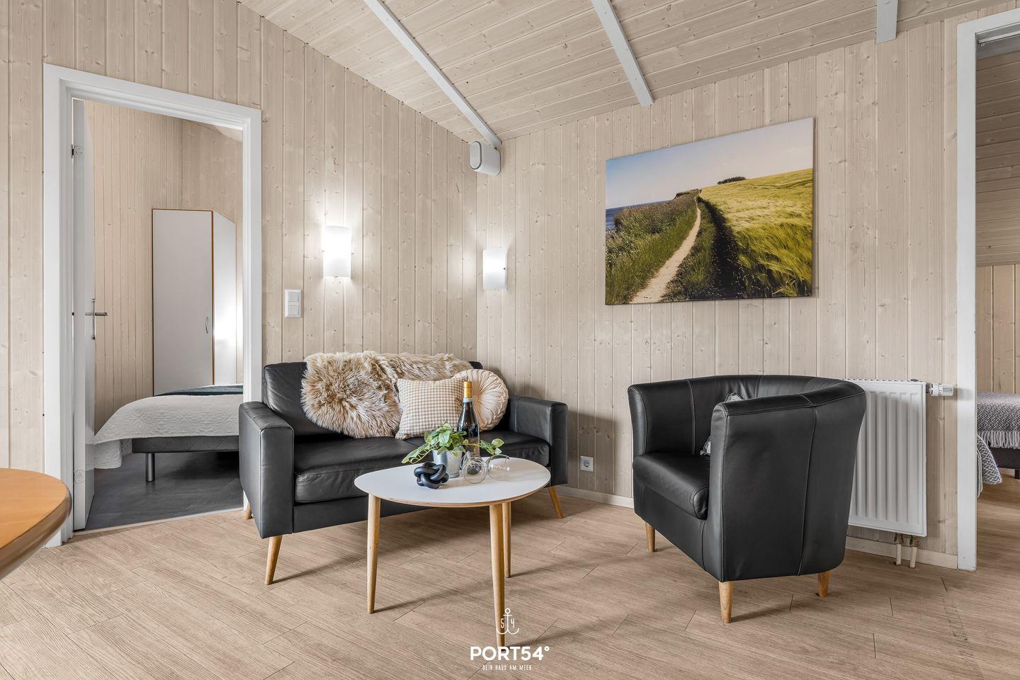 Auch im Inneren überzeugt das Haus mit durchdachter Raumaufteilung und gemütlicher Einrichtung. Insgesamt fünf Schlafzimmer – zwei mit komfortablen Doppelbetten (2 zusammengeschobene Einzelbetten), zwei mit jeweils zwei Einzelbetten und eins mit einem Doppelbett und einem Einzelbett – sowie ein zusätzlicher Alkoven, mit Vorhang vom Wohnbereich abgetrennt, mit zwei weiteren Schlafplätzen bieten ausreichend Rückzugsorte für alle Gäste. Zwei moderne Badezimmer mit Dusche und WC sorgen für Komfort auf allen Ebenen.