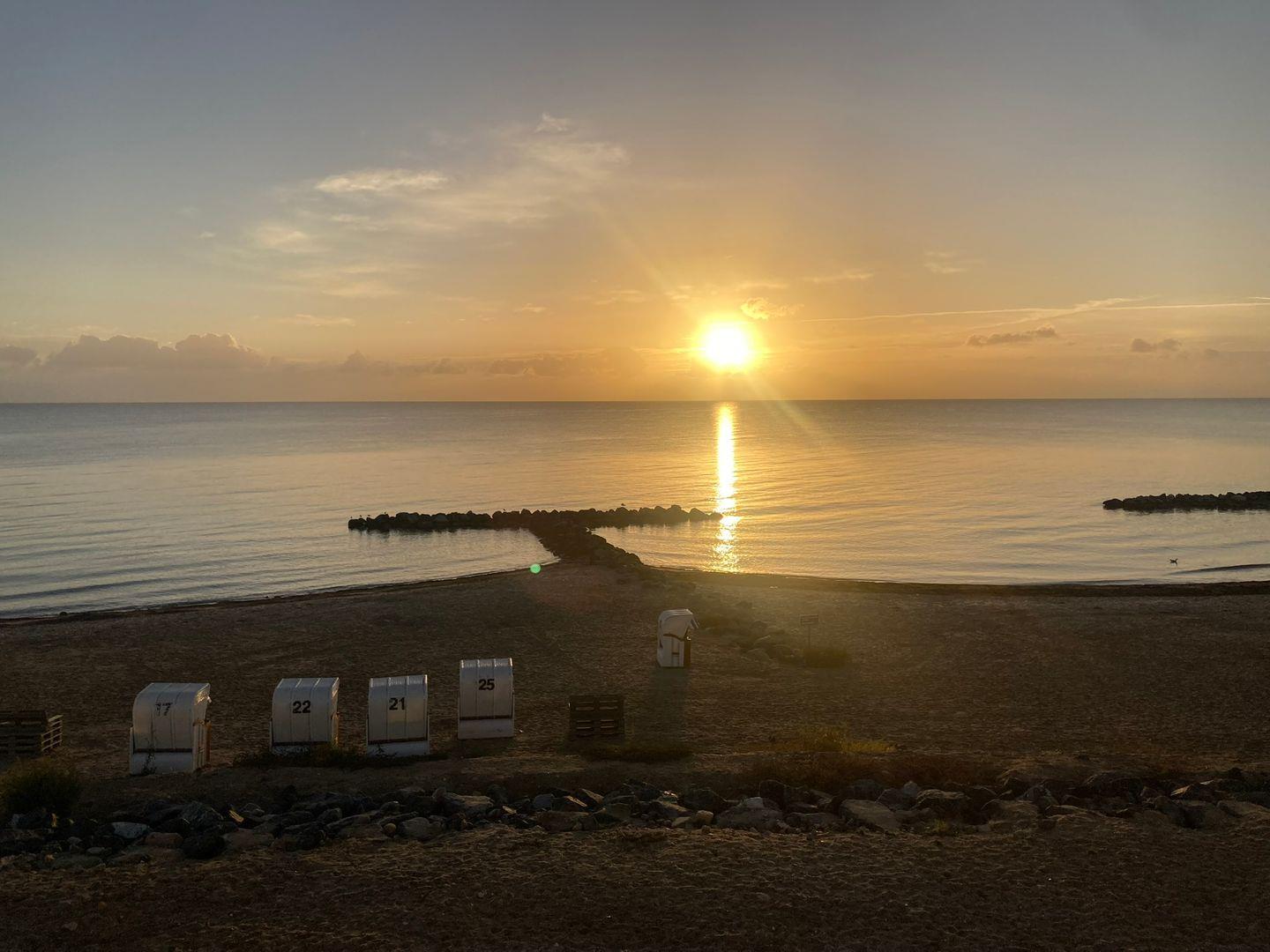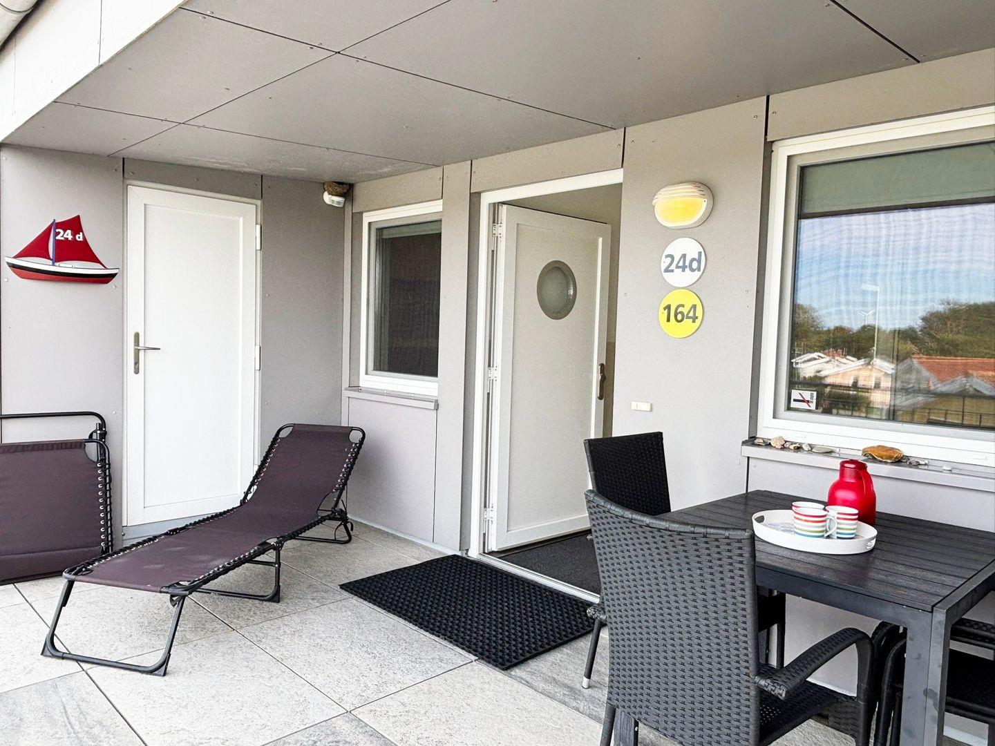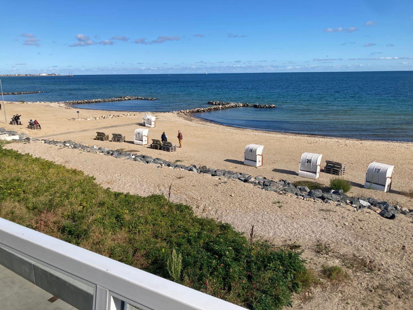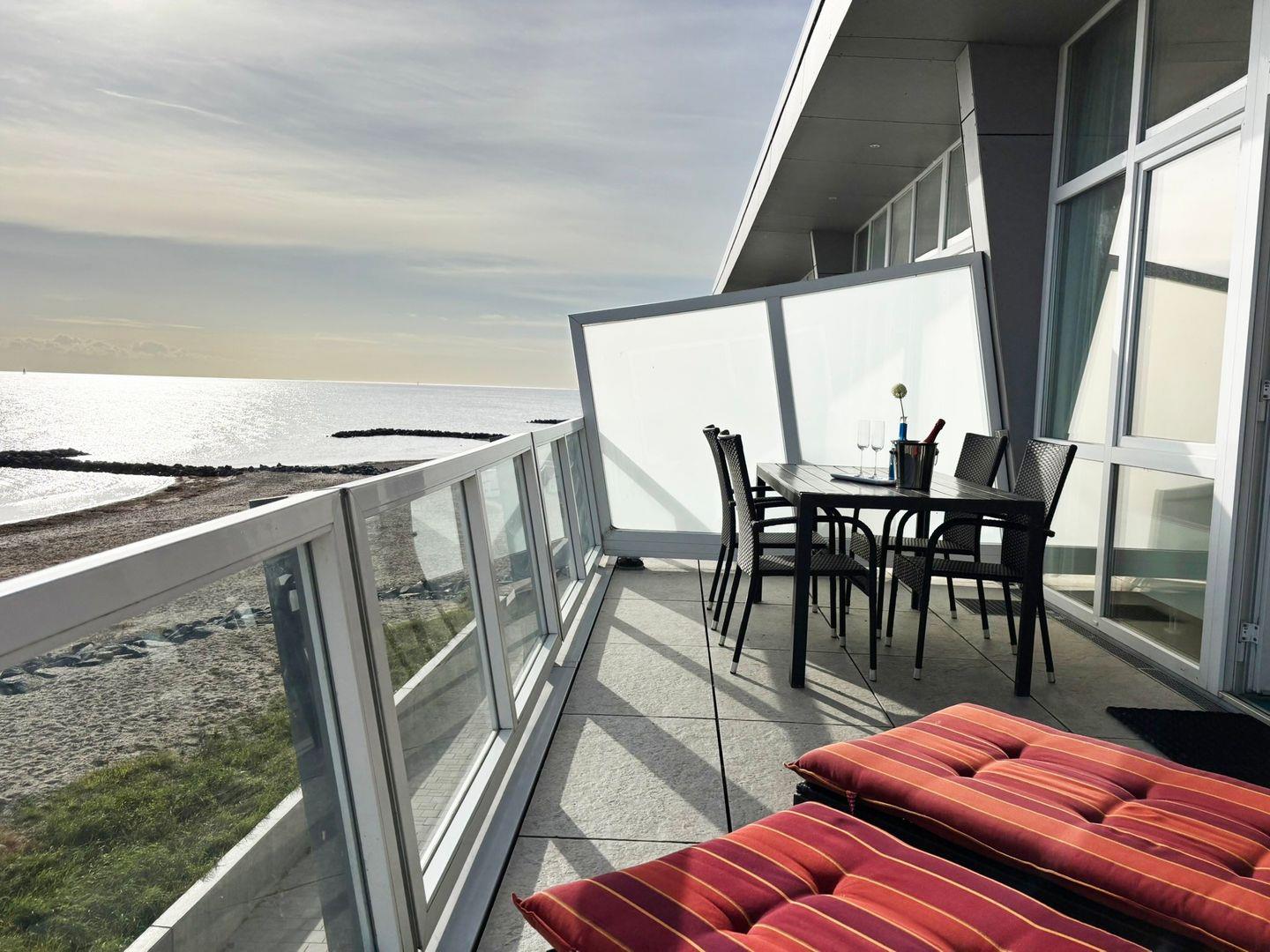 Zur Meerseite hin lädt der teilüberdachte Balkon mit Sonnenliegen und Grill zum Verweilen ein – genießen Sie hier Ihre Auszeit mit direktem Blick auf das Wasser. Auf der Rückseite der Wohnung befindet sich ein zweiter, ebenfalls möblierter Balkon (zugleich der Zugang über den Laubengang zu den sechs Wohnungen des Hauses), ideal, um am Abend die letzten Sonnenstrahlen zu genießen.