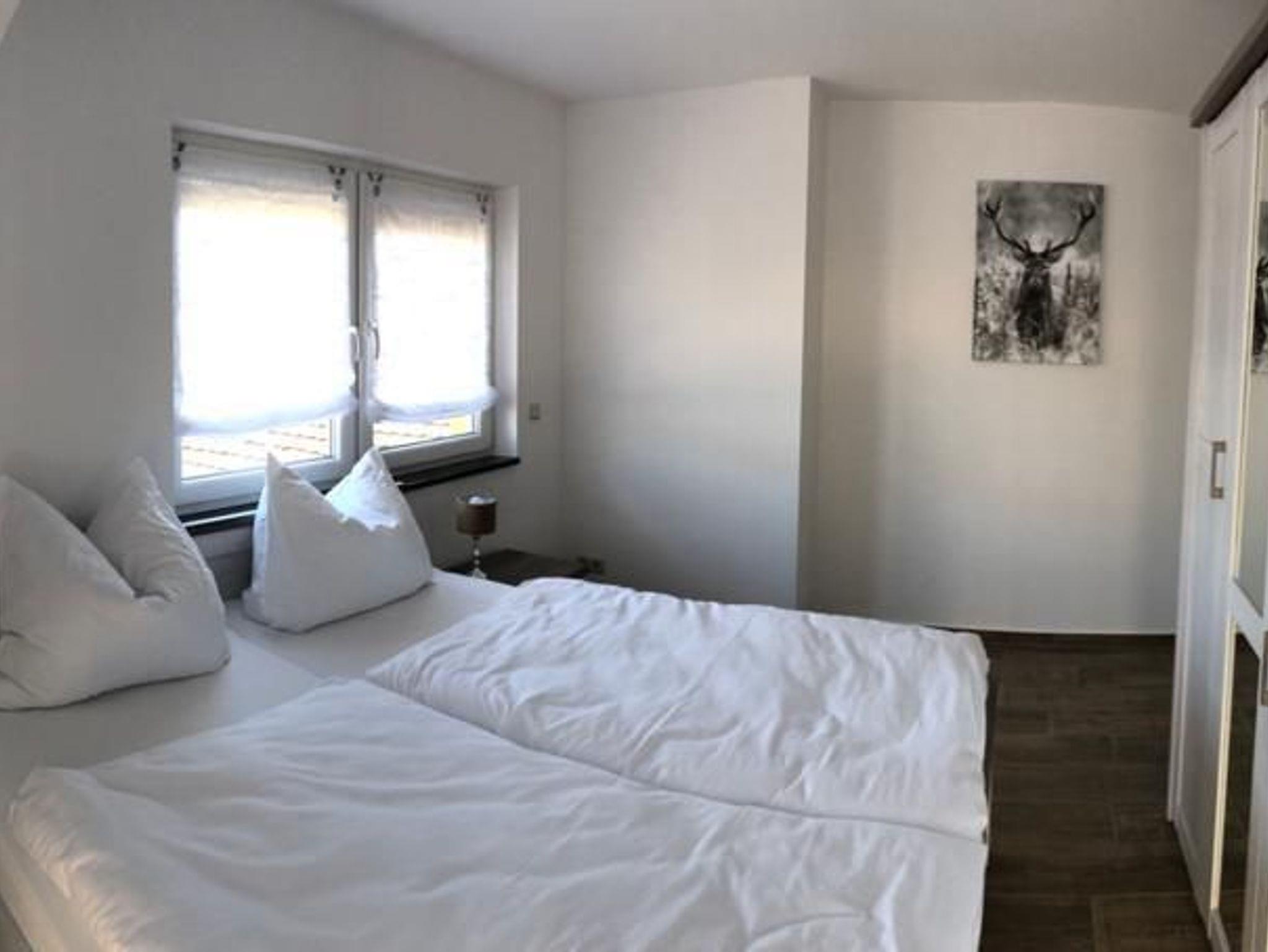 Die Ferienwohnung Angelika ist mit 81 m² Wohnfläche die größere der beiden. Sie ist mit einem Schlafzimmern und einem Kinderzimmer, einer Essküche und einem großen Wohnzimmer ausgestattet und liegt in der 1. Etage des Hauses. Sie ist ideal für 4 Personen. Das Schlafzimmer verfügt über ein Doppelbett, das Kinderzimmer über zwei Einzelbetten für Kinder im Alter von ca. 5-16 Jahre. In der geräumigen Küche befindet sich ein Esstisch für 4 Personen. Das sehr große und modern eingerichtete Wohnzimmer ist mit einem Wohnzimmertisch, einer Sofalandschaft und 125 cm großen Flachbild-TV ausgestattet. Der Eingang befindet sich auf der Hofseite. Die ganze obere Etage steht zur Verfügung.