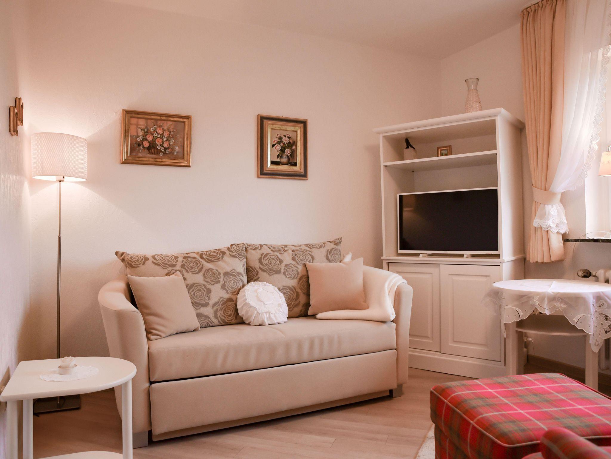 • Gemütlicher Wohnraum mit Maarblick, LED Flachbild TV und Schlafmöglichkeit für eine weitere Person oder zwei Kinder (Ausziehcoach 140 cm x 200 cm)