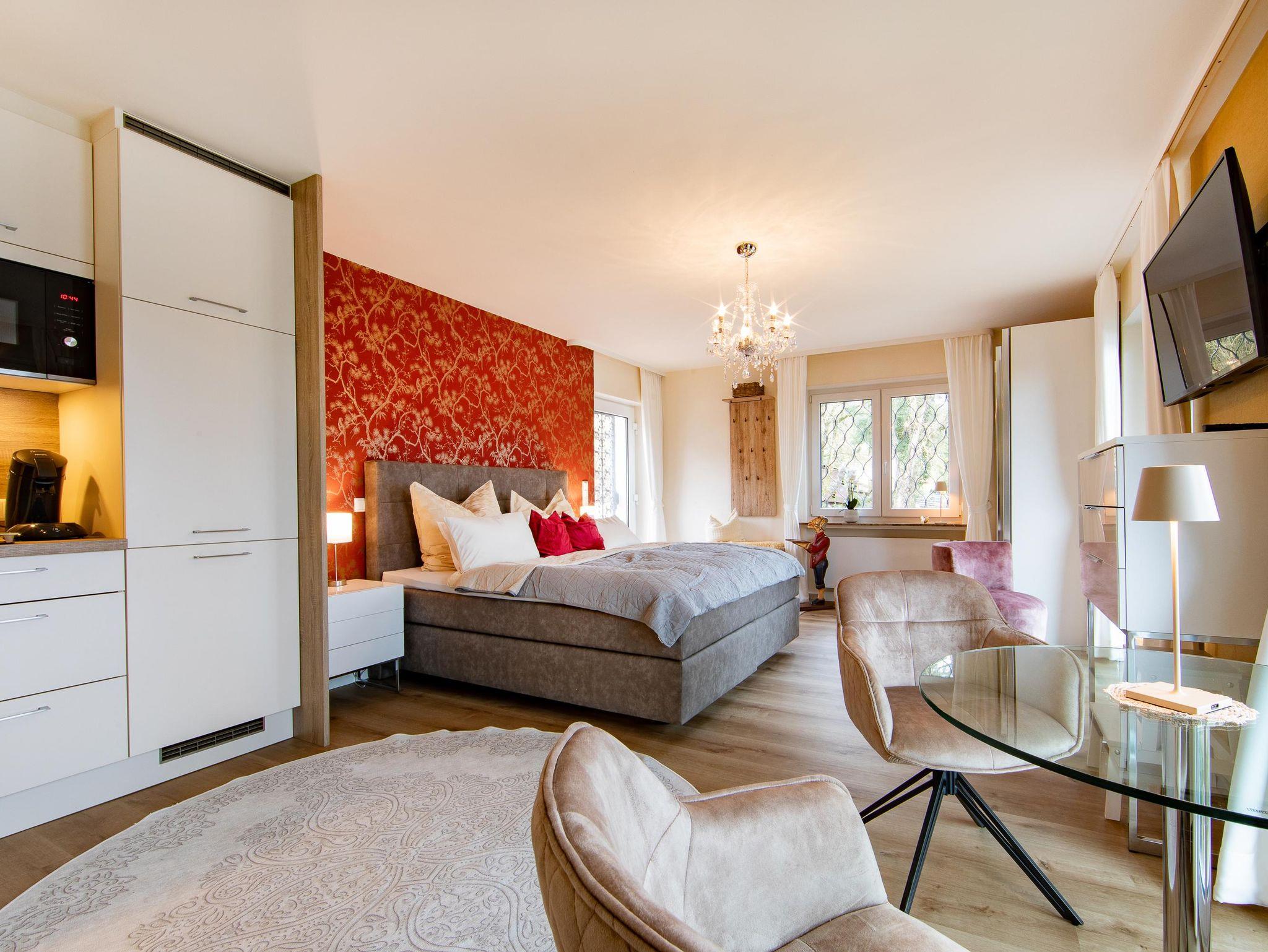 Entdecken sie Ihren neuen Lieblingsplatz in der Ferienwohnung „Rosengarten“ im Marianne am Maar! Ideal für 2 Personen.