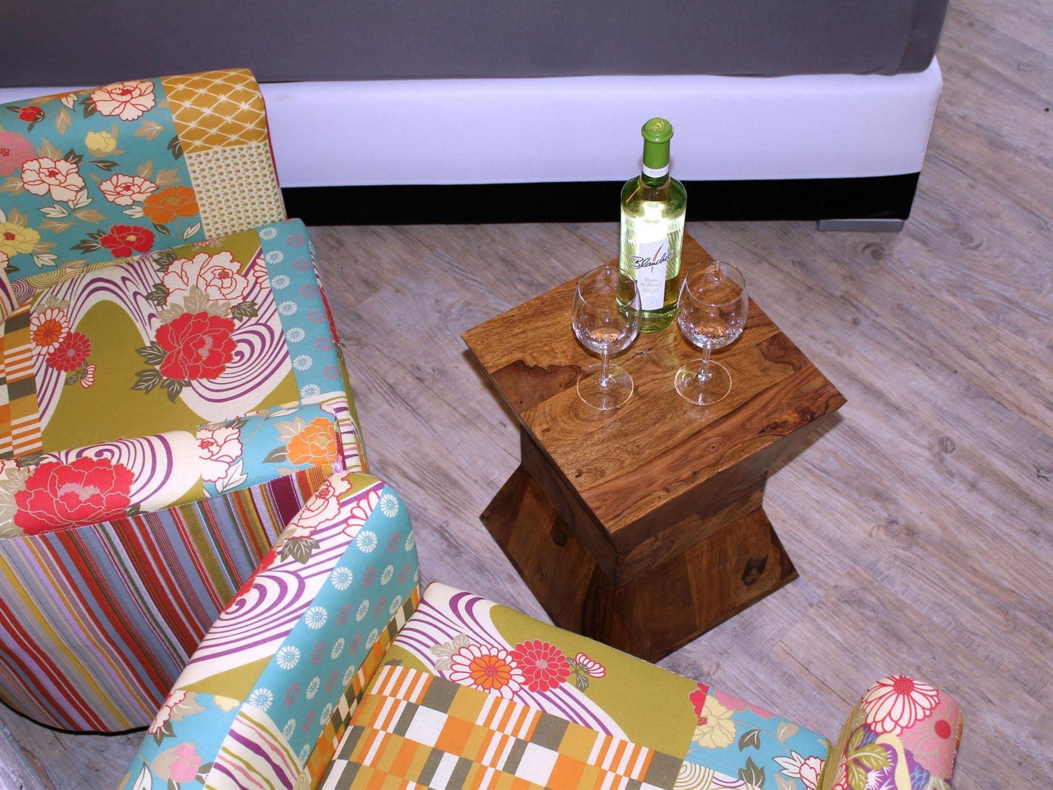 Die hell und freundlich eingerichtete Wohnung vermittelt einen naturverbundenen Flair mit viel Holz und Stein.