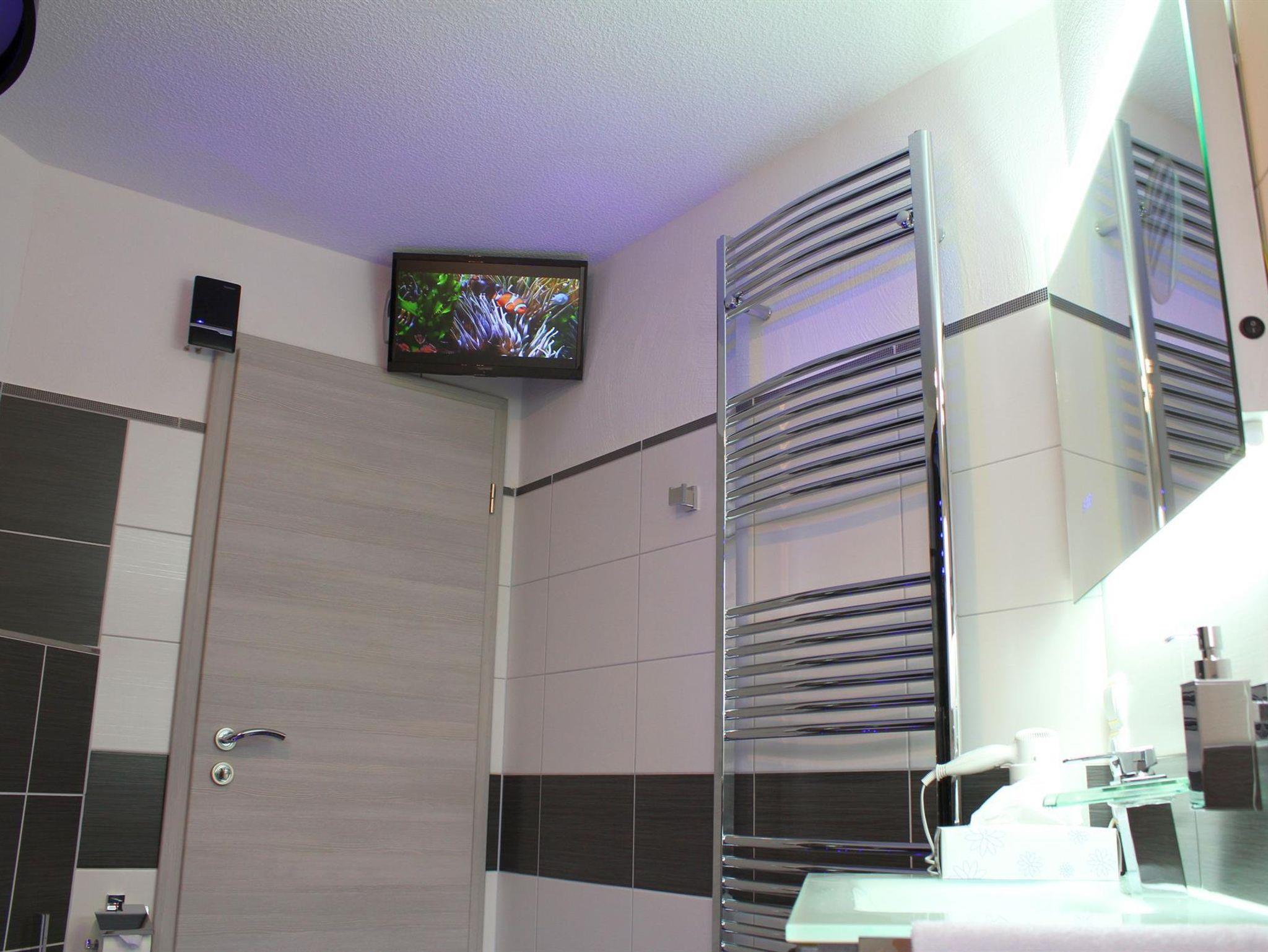 Im Bad befindet sich ein Flachbild-TV. Schauen Sie beim gemütlichen Bad einen schönen Film auf dem TV oder legen Sie eine gute DVD ein.