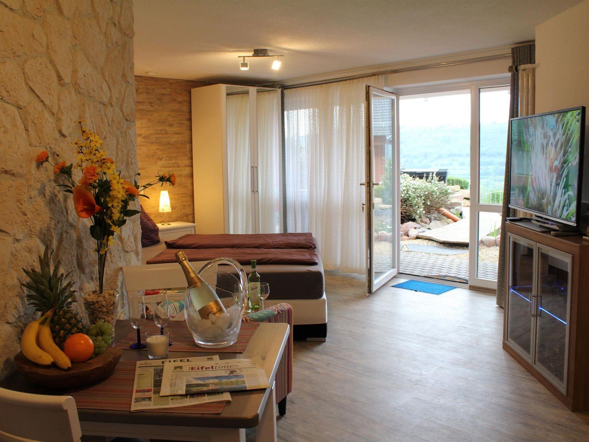 Studio Vulkanpanorama Elegantes Studio in der Apartmentanlage Maarberg Resort in Schalkenmehren am See.