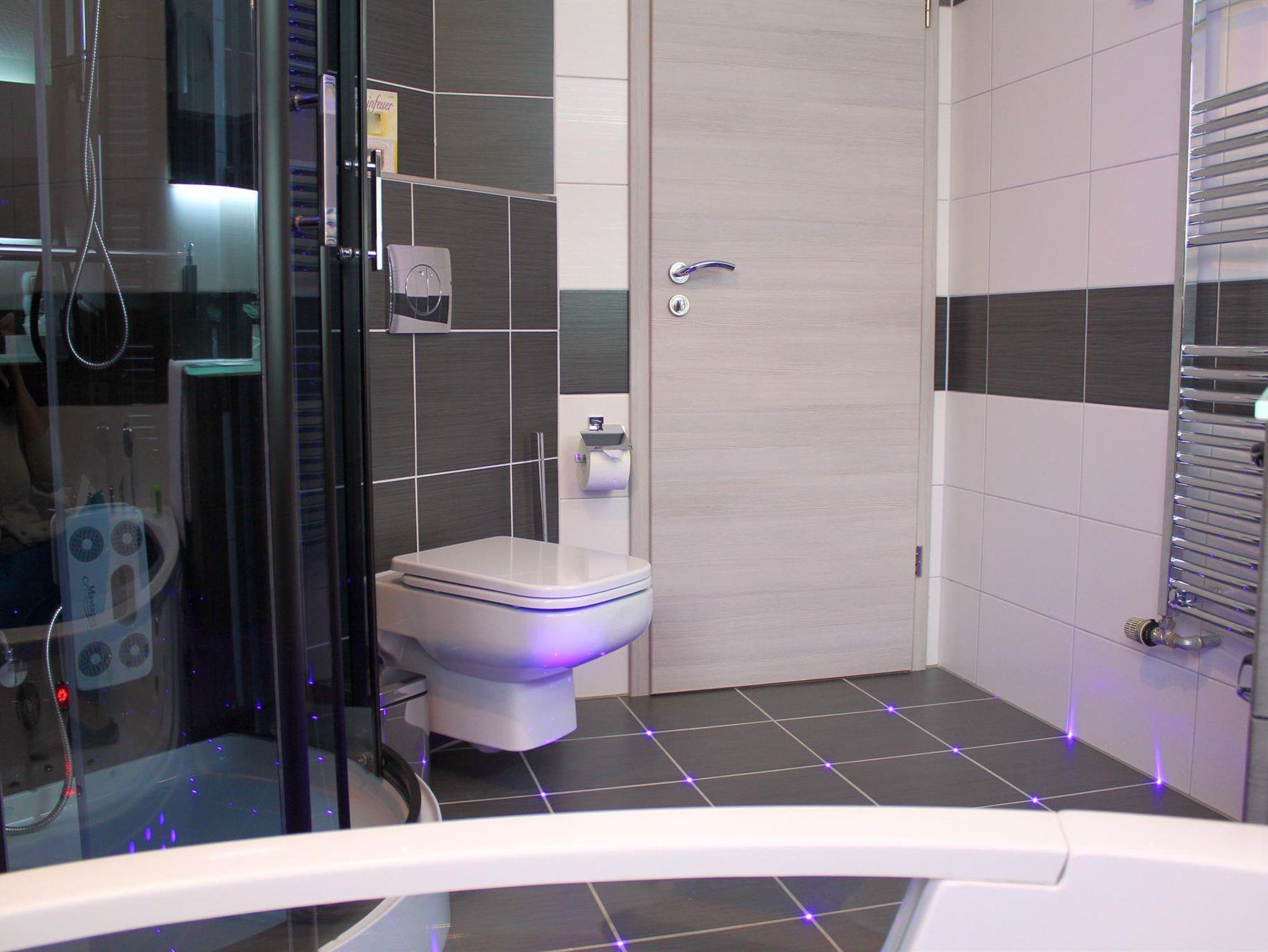 Es gibt Whirlpools, Dampfduschen, TV in den Bädern, LED Bodenbeleuchtung etc.