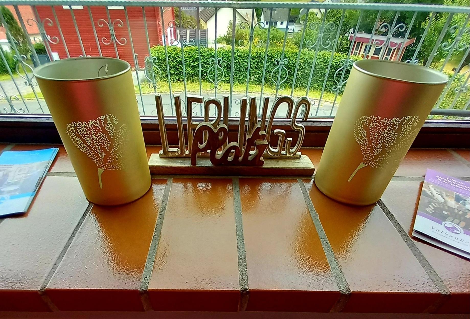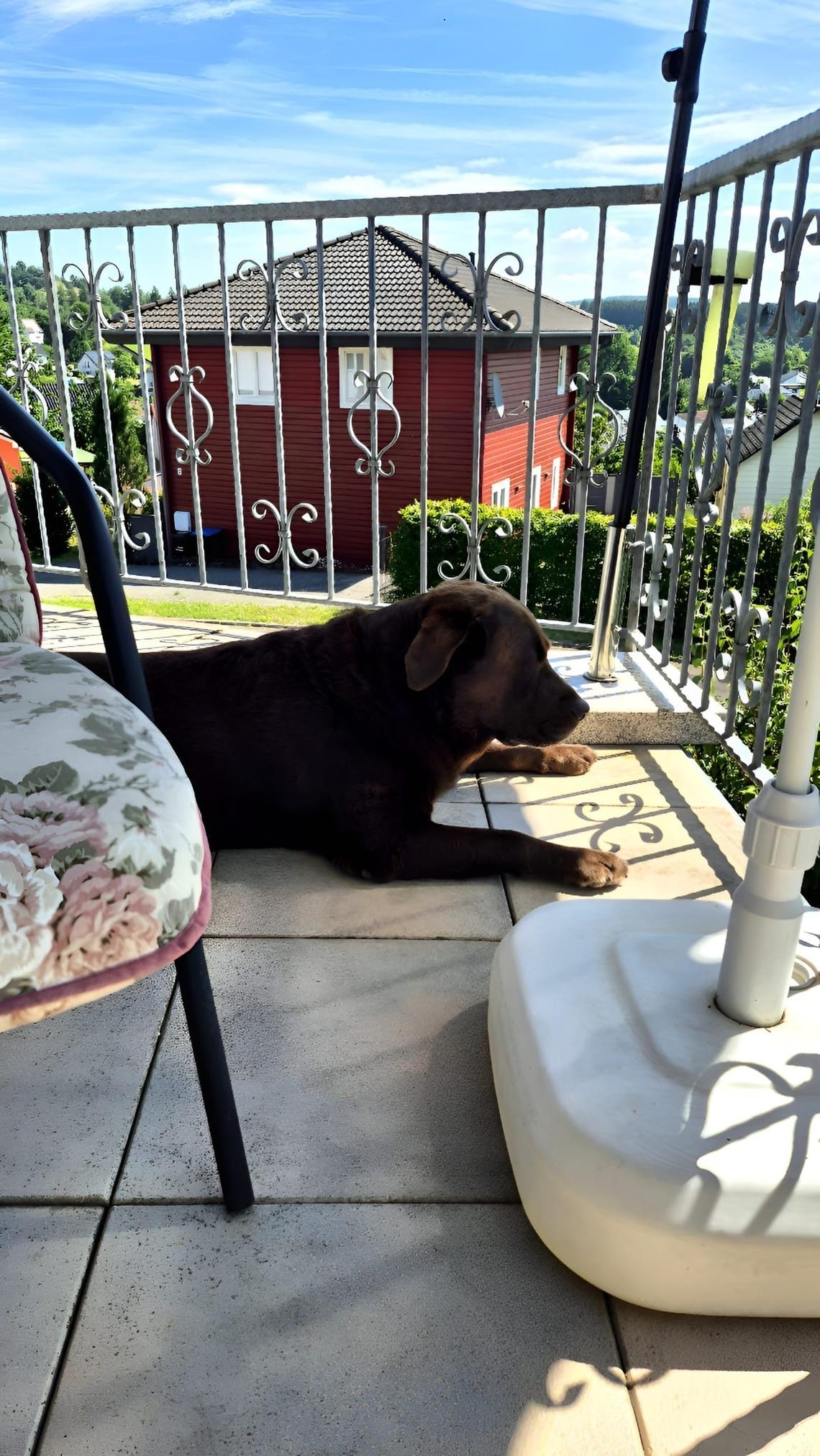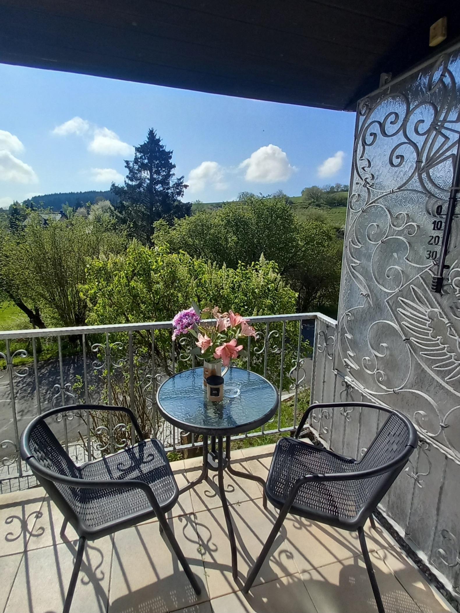 Terrasse mit Grill und 2 Balkone beide mit seitlichem Maarblick.