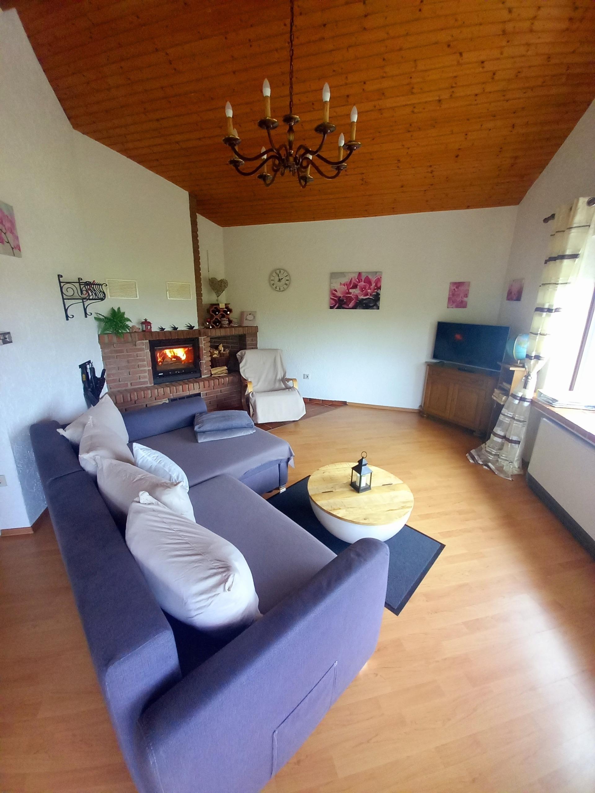 Herd, Backofen, Geschirrspüler, Kühlschrank mit Gefrierschrank, Wasserkocher, Toaster, Mikrowelle, Filterkaffeemaschine, Senseo Maschine. Die Kaminecke im Wohnbereich bietet die Möglichkeit die wohlige wärme des Feuers zu genießen, mit Blick in die wunderschöne Landschaft.