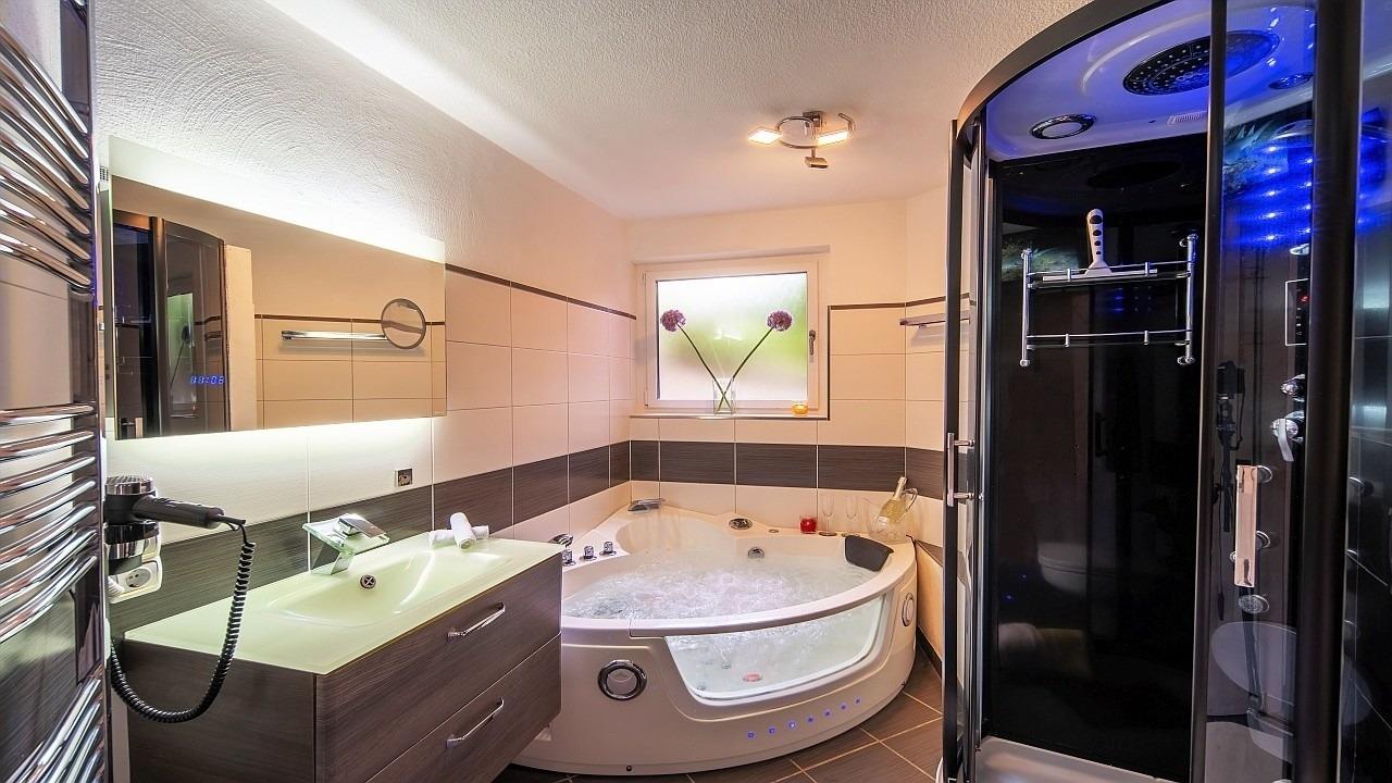 Im Bad befindet sich ein Flachbild-TV. Schauen Sie beim gemütlichen Bad einen schönen Film auf dem TV oder legen Sie eine gute DVD ein.