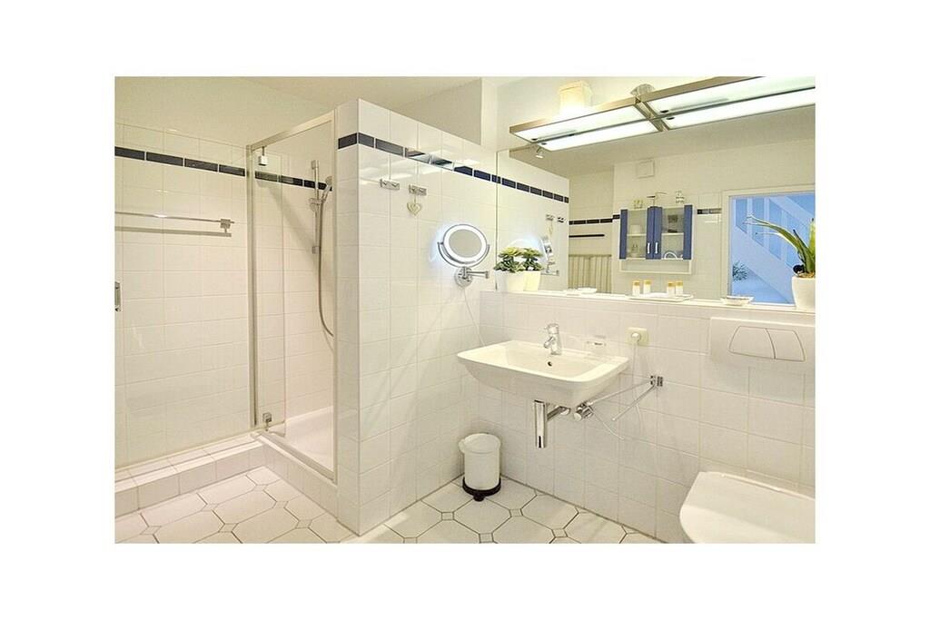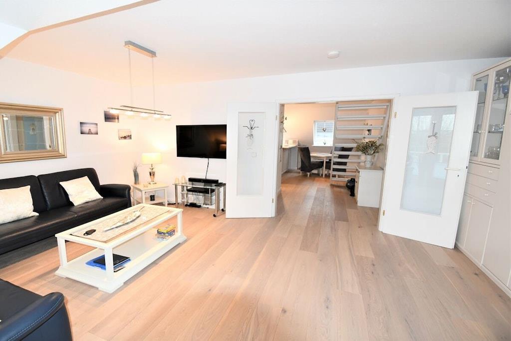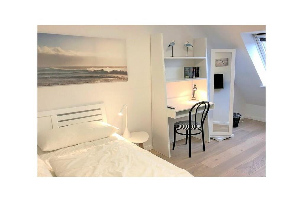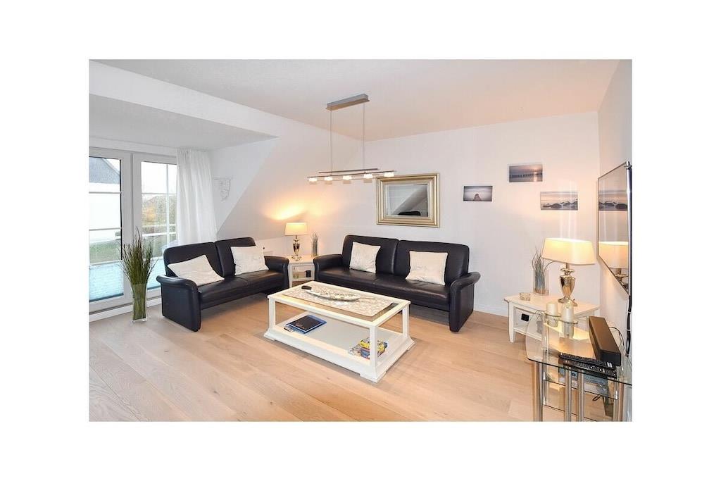 Die charmante lichtdurchflutete 3-Zimmer-Maisonette-Wohnung in Scharbeutz bietet Platz für 2-4 Personen, eine gehobene Ausstattung, Strandnähe (450m) und einen Blick ins Grüne vom Balkon. Der Separate Eingang verleiht dem Objekt einen Hauscharakter. Die Wohnung besteht aus einem großen Wohnraum mit hochwertiger Ledergarnitur, TV-Flat-Screen 4K, SAT Anschluss, Blue-Ray-Player, W-LAN Anschluss Stereoanlange und ist mit einem hochwertigen Echtholzdielenboden verlegt. Im Wohnzimmerschrank befindet sich ein leicht ausklappbares Doppelbett. In der hellen Wohnküche befinden sich ein Herd mit Ceranfeld, Umluftbackofen, Geschirrspülmaschine, Kühlschrank/Gefrierschrank. Der Essbereich ist durch eine trendige Küchentheke getrennt. Das separate, helle Schlafzimmer im 2. OG bietet ein Doppelbett, einen schwenkbaren TV-Flat Screen, Einbaukleiderschrank, Schreibtisch und einen seitlichen Blick auf die Ostsee! Im geräumigen Badezimmer befinden sich eine Dusche, Waschmaschine, Schminkspiegel und Föhn. Auf dem Balkon darf mit einem Elektrogrill (vorhanden) gegrillt werden. Ein eigener Stellplatz rechts vom Hauseingang (der linke) steht zur Verfügung. Auf dem PKW Stellplatz gibt es 2 Fahrradbügel, die das Anschließen von max. 4 Fahrrädern ermöglicht. Die Wohnung ist eine Nichtraucherwohnung, Haustiere sind nicht erlaubt. Über eine Bewertung auf unserer Website: https://scharbeutz-ferienwohnung.com würden wir uns sehr freuen!