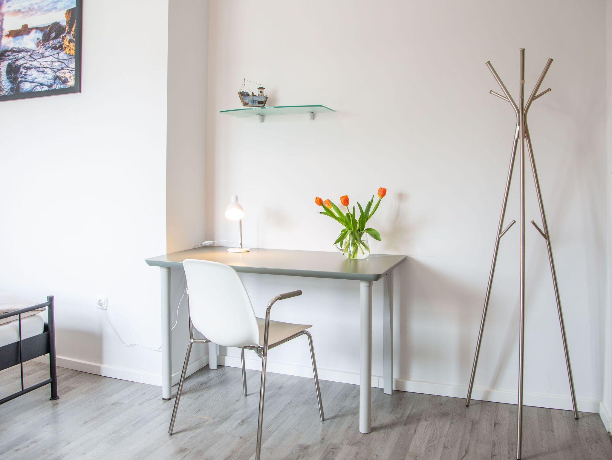 Die helle Ferienwohnung Appartement 05 mit Balkon im Haus Gästehaus Daheim bietet auf 54 m² Platz für bis zu 4 Personen (zzgl. max. 1 Babybett). Sie befindet sich in der ersten Etage und verfügt über 2 Schlafzimmer, 2 Badezimmer, 1 Wohnzimmer, 1 Küche und einen großen Balkon. Für die Raucher unter unseren Gästen befindet sich auf dem Balkon ein Aschenbecher. Ein Parkplatz steht direkt am Haus kostenfrei zur Verfügung.