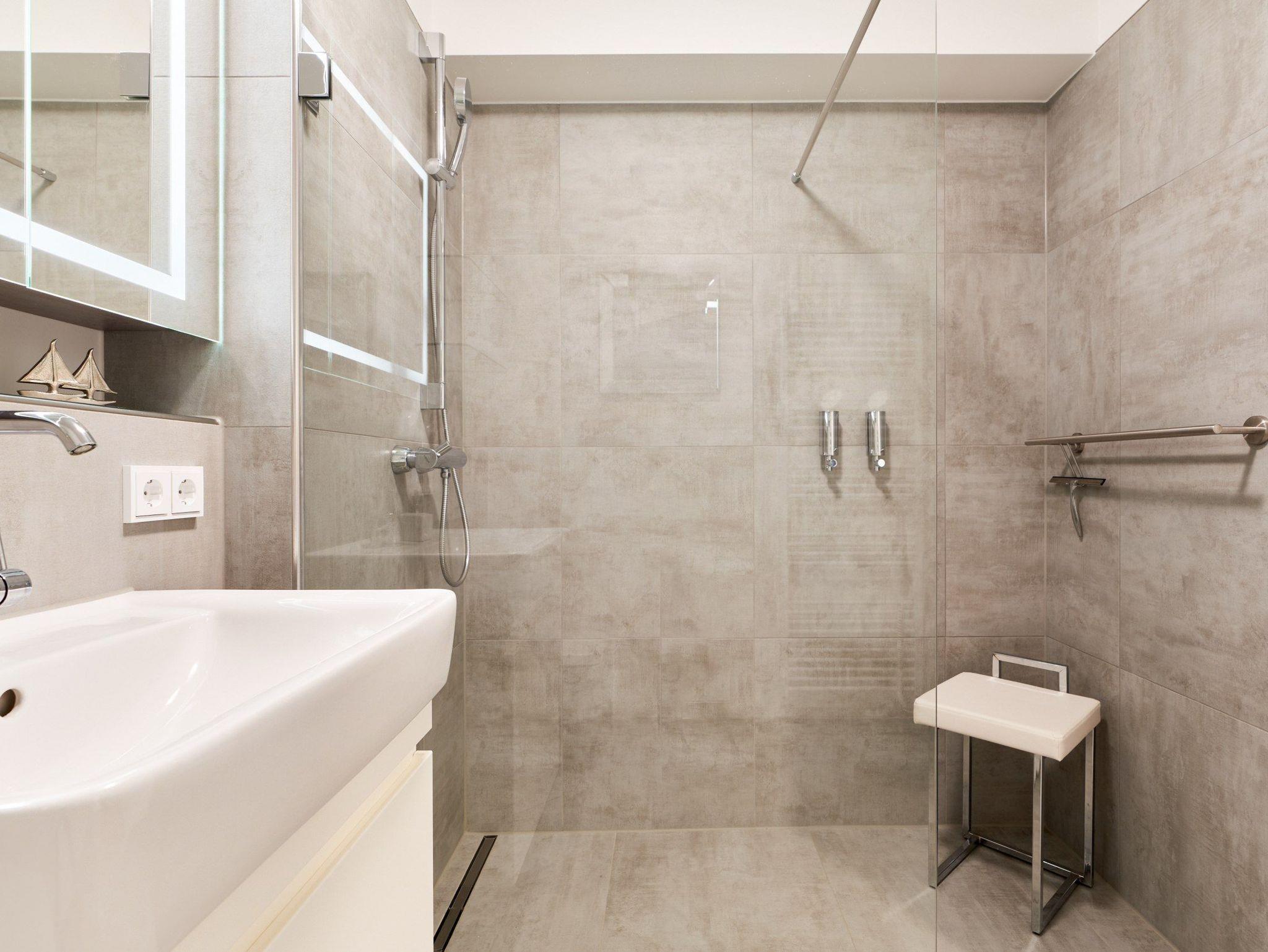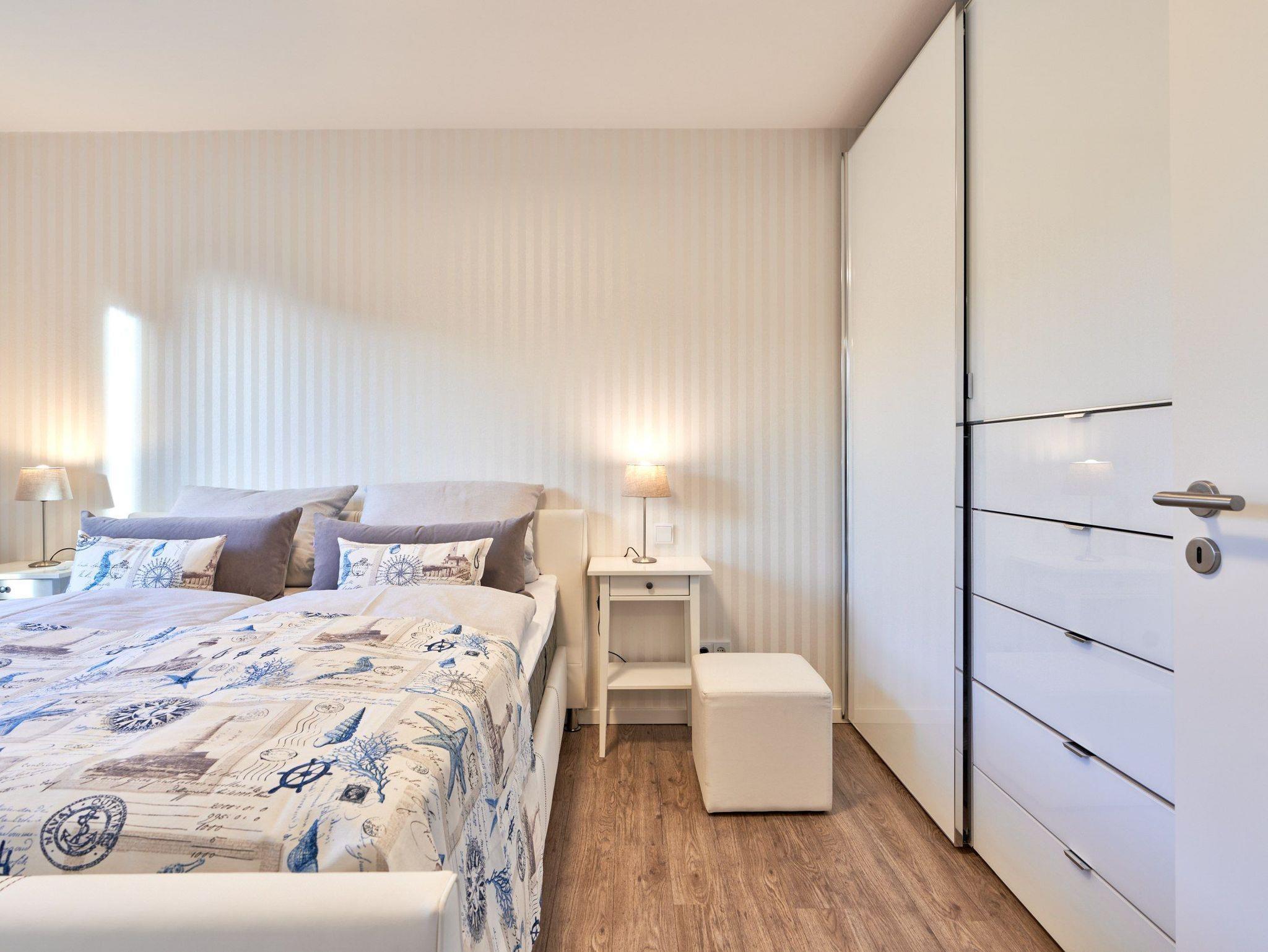 Die offene Küche ist komplett ausgestattet, mit einem Esstresen sowie zwei Stühlen. Der Wohn-Essbereich ist hell und freundlich gestaltet. Der Wohnbereich bietet zwei bequeme Relaxsessel und ein Sofa. Ein Flachbildschirm sowie eine Stereoanlage sorgen für Unterhaltung. Ein kostenfreies WLAN ist selbstverständlich. Im Schlafzimmer steht ein bequemes Doppelbett mit Einzelmatratzen (0,80 x 2,00m) sowie ein geräumiger Schrank. Auch im Schlafzimmer ist ein Flachbildfernseher für Sie angebracht. Das Badezimmer verfügt u. a. über eine großzügige, bodentiefe Dusche und einen zusätzlichen Handtuchheizkörper. Es gibt einen Abstellraum, in diesem ist eine Waschmaschine mit Trocknerfunktion untergebracht.