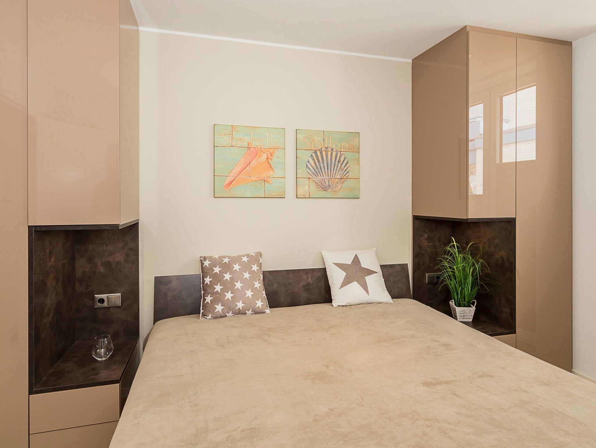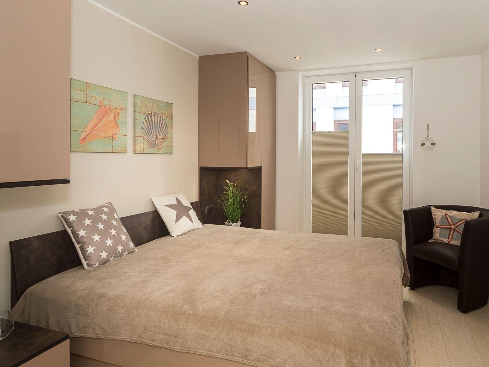 Der Wohnbereich ist mit einem großen Ecksofa, einem Tisch und einem Kaminofen eingerichtet. Neben einem Flach-TV steht Ihnen selbstverständlich kostenloses WLAN zur Verfügung. Das Bad verfügt über Tageslicht, eine bodentiefe Dusche, einen Handtuchheizkörper und Fußbodenheizung. Die 2 Schlafzimmer sind mit Boxspringbetten (1,80 bzw. 1,60 x 2,00m), Kleiderschrank und Flachbild-TV ausgestattet.