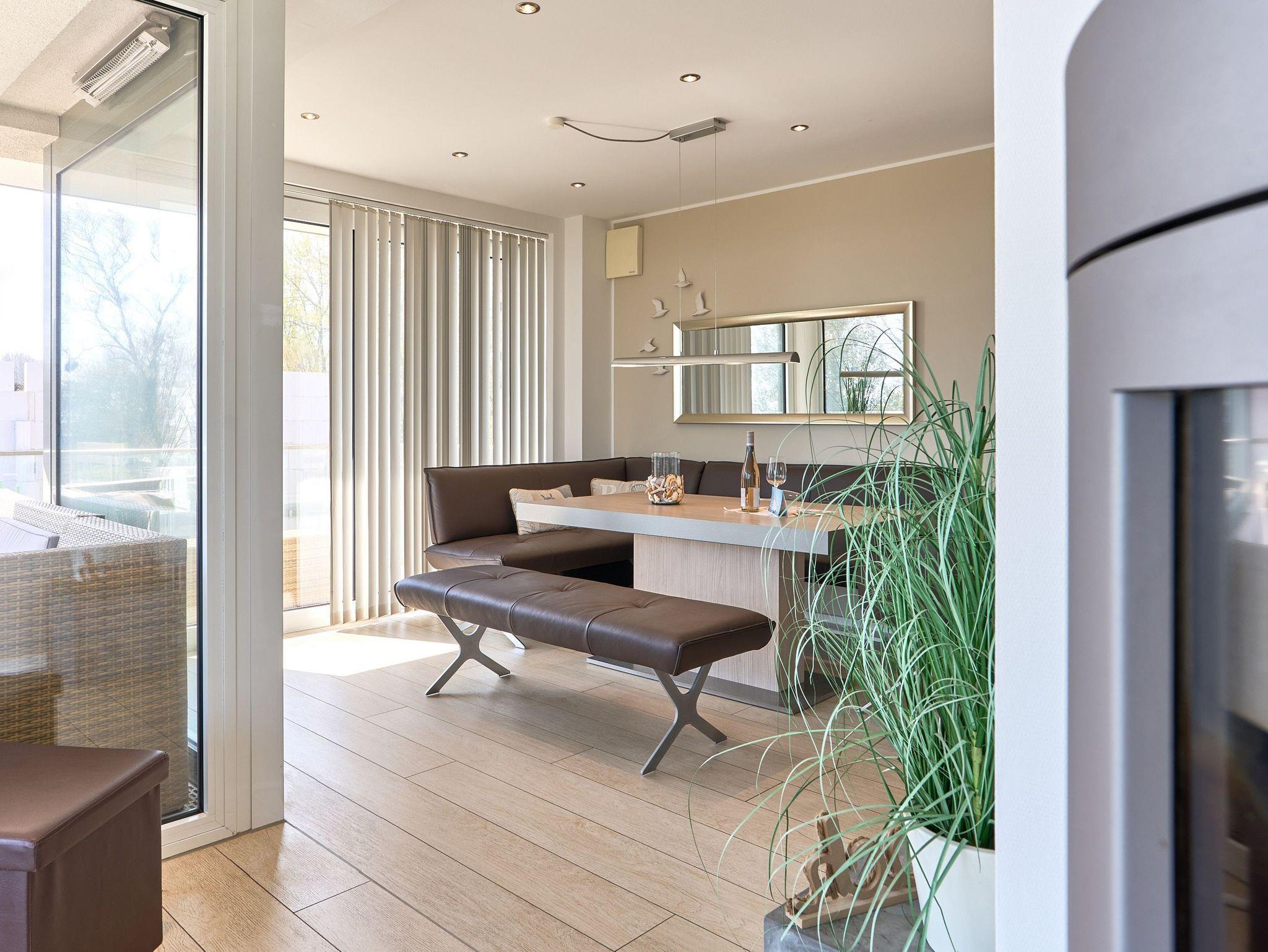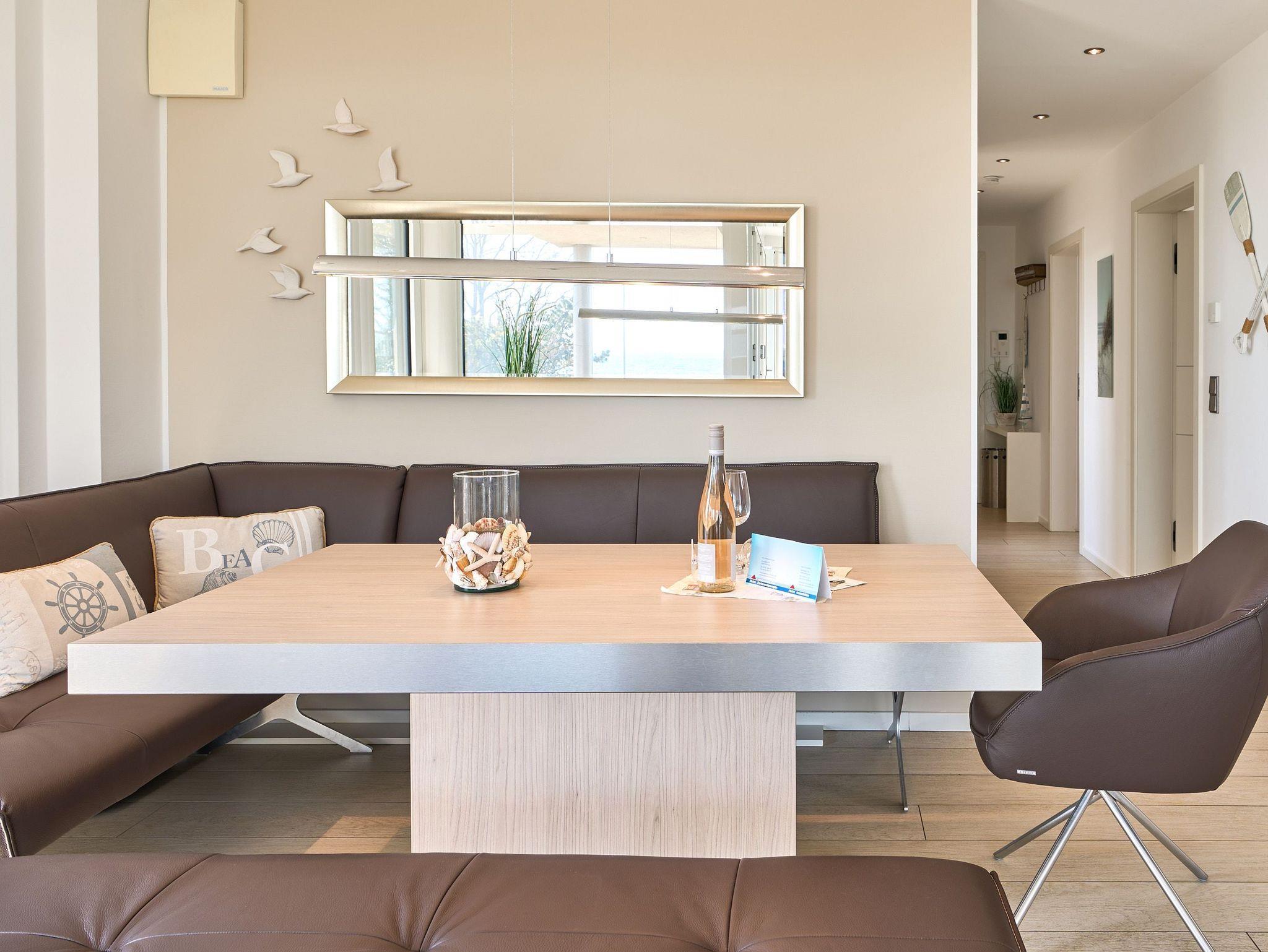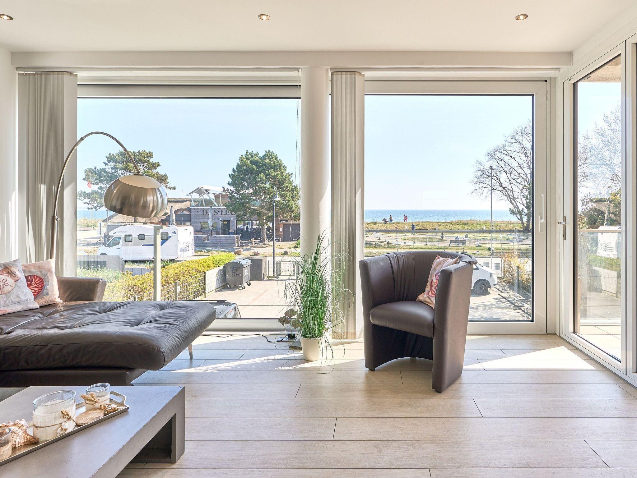 Es erwartet Sie schon beim Betreten der Wohnung der herrliche Blick auf die Ostsee. Der Wohnbereich dieser Traumwohnung ist durch die bodentiefen Fenster absolut hell und lichtdurchflutet, selbstverständlich ist bei Bedarf ein Sichtschutz vorhanden. Der moderne Wohnbereich bietet Ihnen einen gemütlichen Essbereich (auch von hier haben Sie die freie Sicht auf die Ostsee), mit ausreichend Platz für 6 Personen. Hier können Sie bequem essen sowie gesellige Stunden verbringen. Die moderne Küche ist komplett ausgestattet und lässt keine Wünsche offen, der gegenüberliegende Tresen bietet Platz für drei Personen.