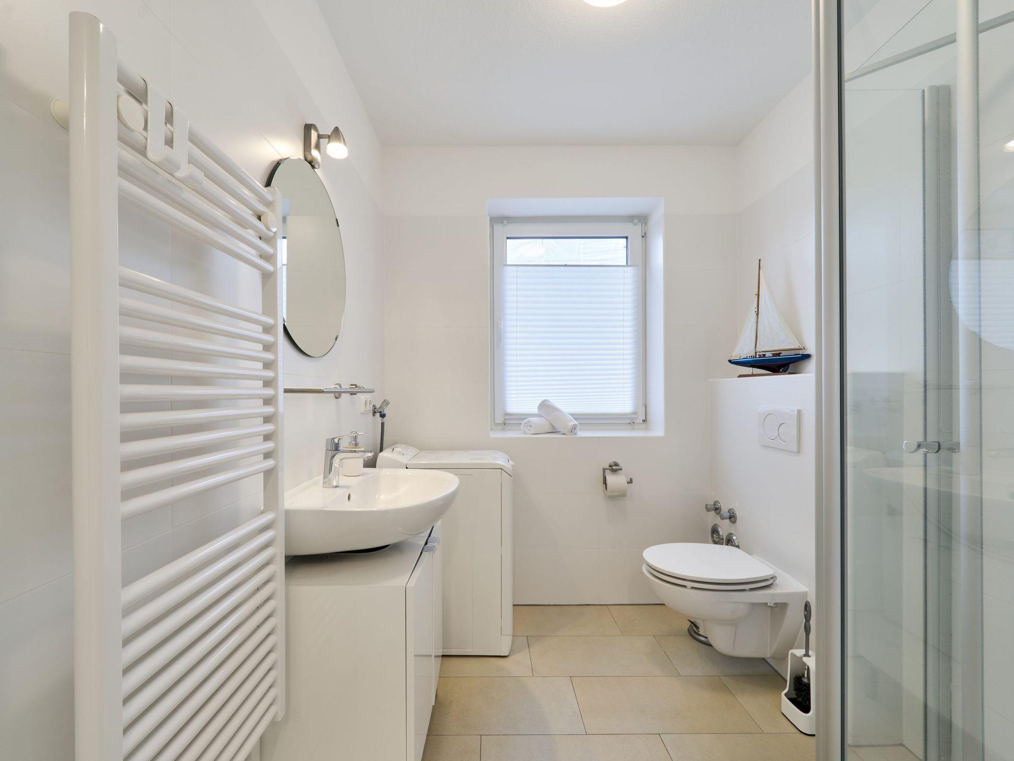 Das Badezimmer ist mit einer Dusche, einer Waschmaschine und Fußbodenheizung ausgestattet. Selbstverständlich steht Ihnen auch in dieser Wohnung kostenloses WLAN zur Verfügung.