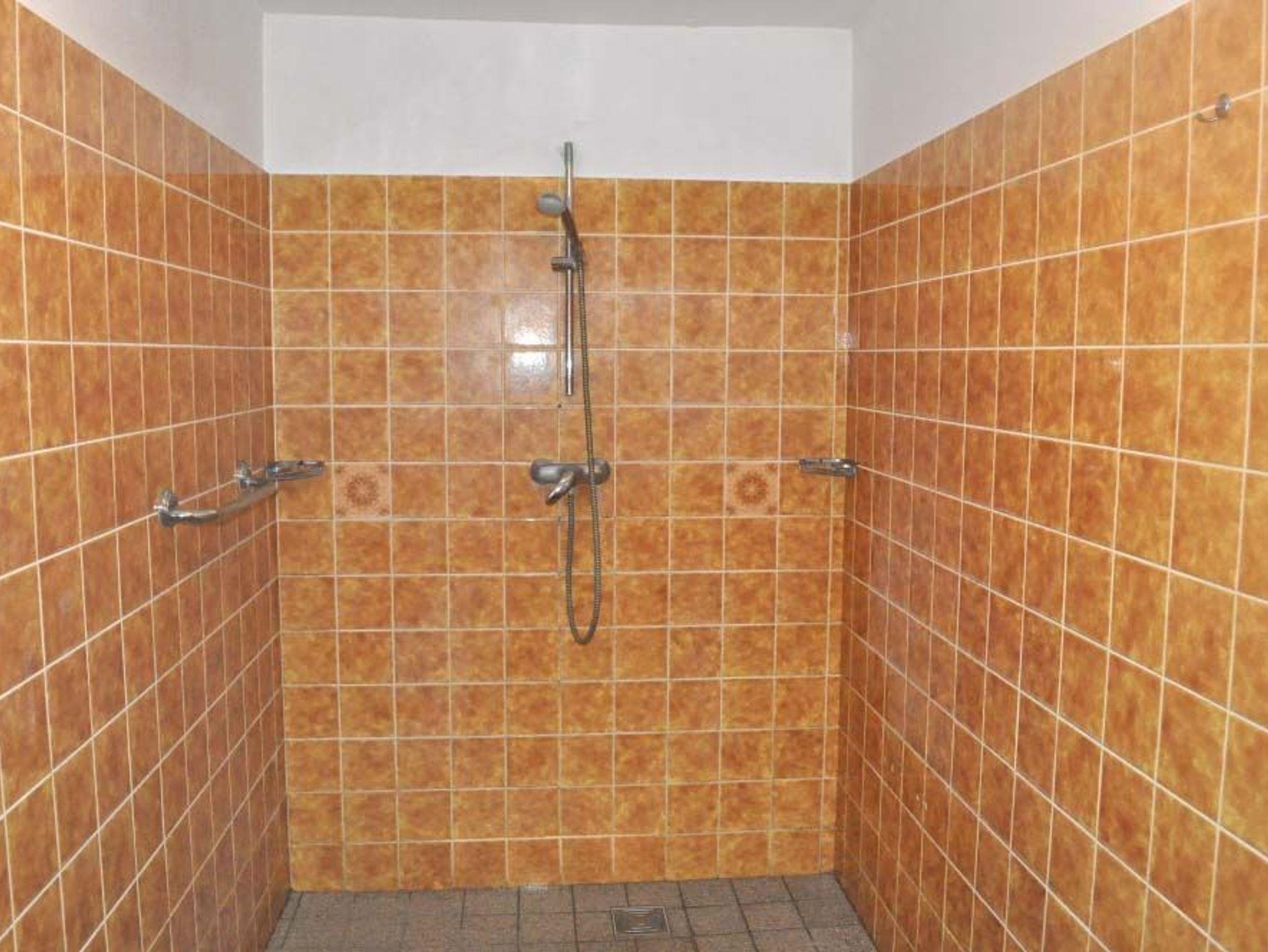 Bad 1: Dusche bodengleich, Duschkabine, Duschwand, Kosmetikspiegel, Schrank, Waschtisch, WC