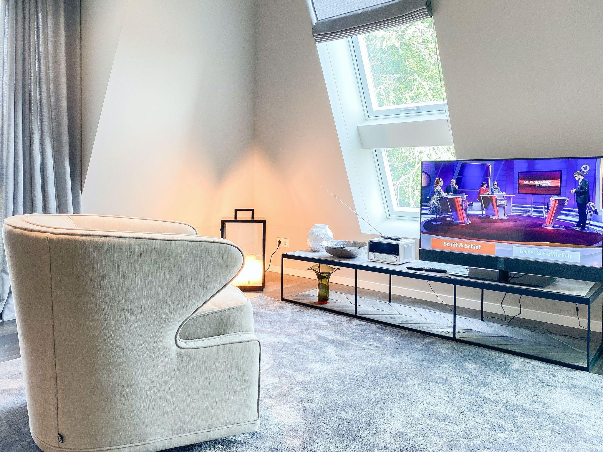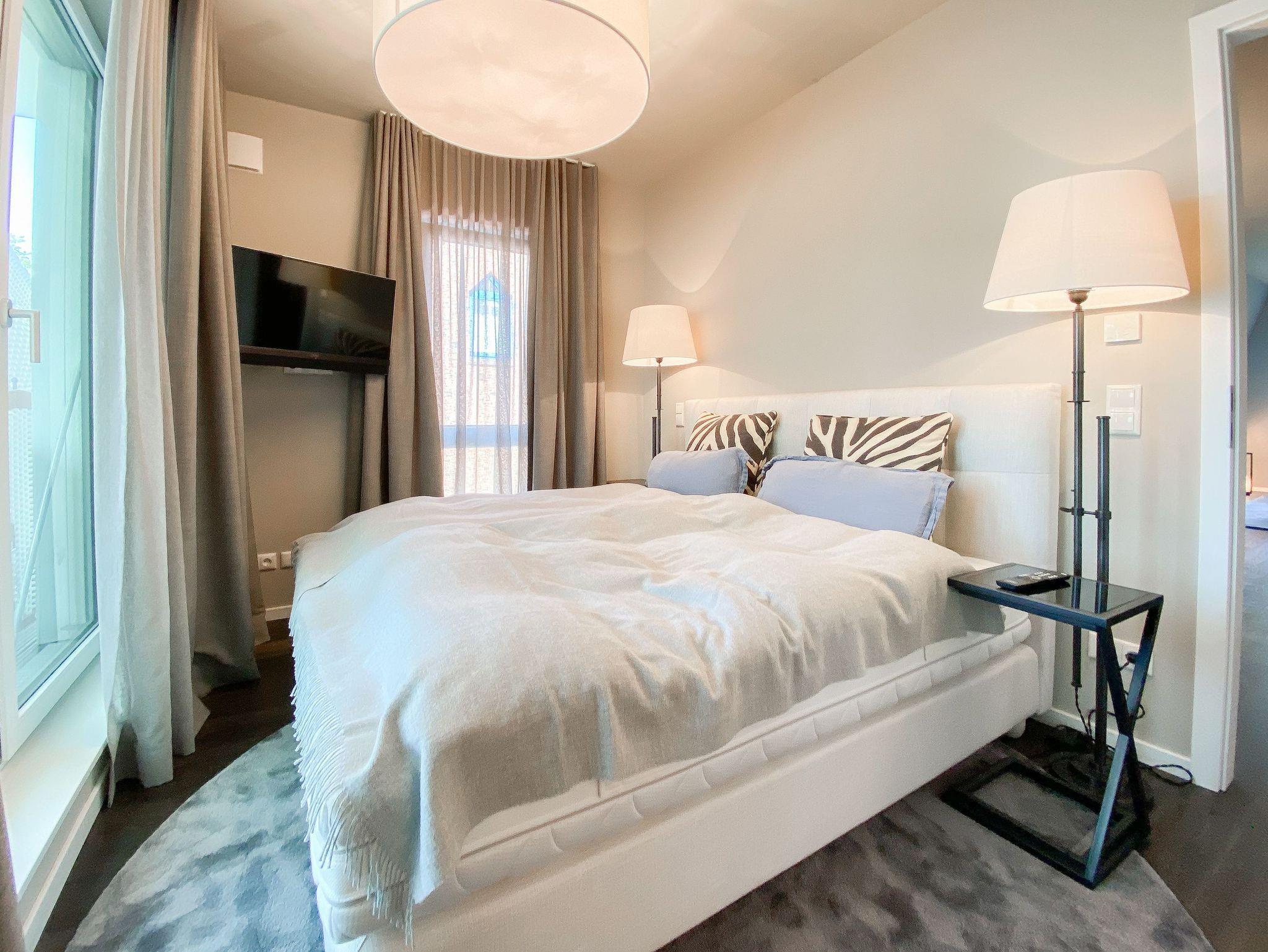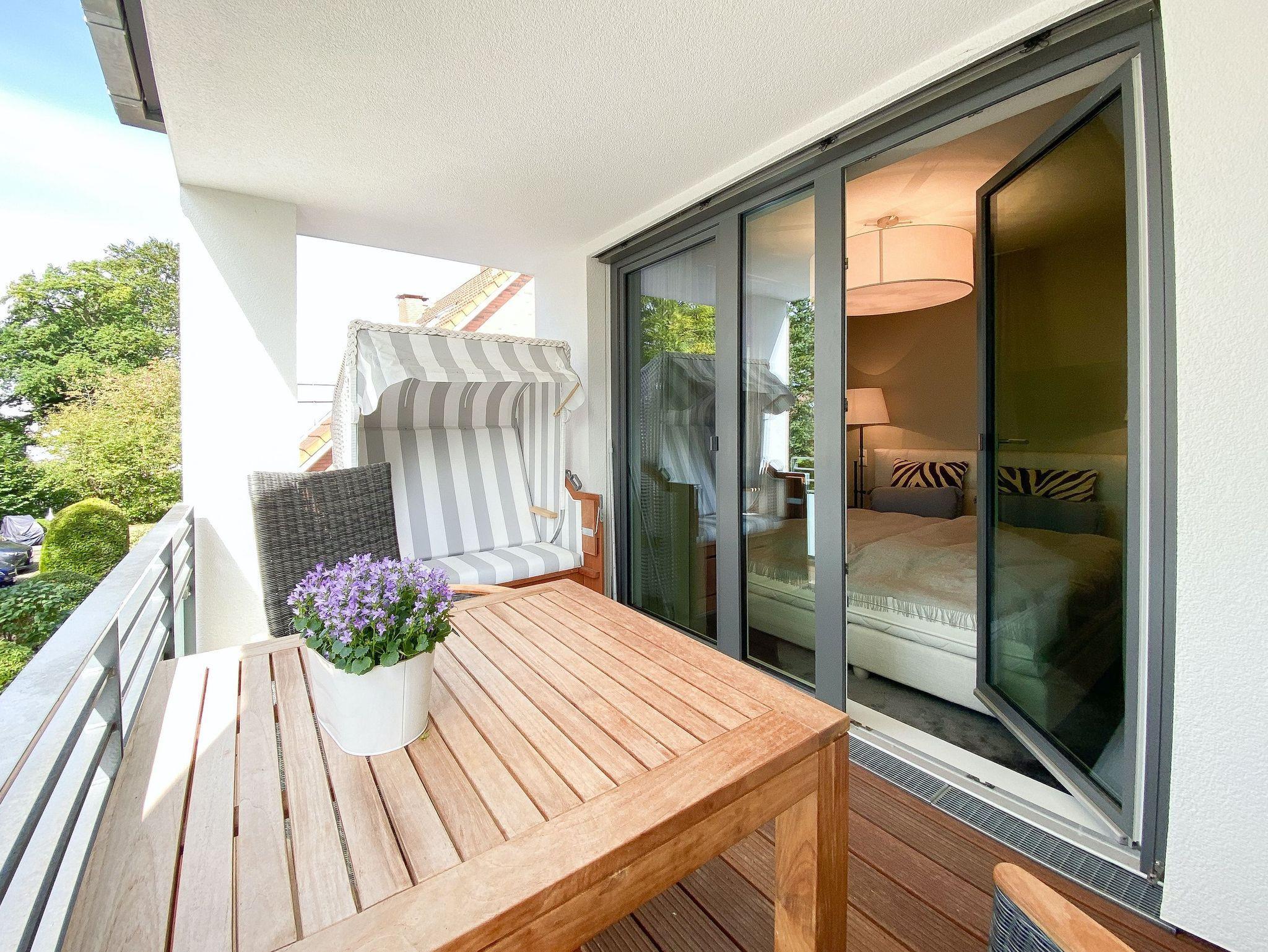Die äußerst hochwertige Ausstattung und stilvolle Einrichtung dieser Wohnung bietet zeitgemäßen Luxus auf fast 70 qm Wohnfläche für 2 Personen. Für Wellness Liebhaber wurde die Wohnung mit einer Infrarot Wärmekabine ausgestattet, besonders angenehm bei Verspannungen, zur Entschlackung oder einfach nur zur Entspannung. Mittelpunkt der Wohnung bildet der großzügige Wohnbereich mit wunderschönem Blick auf die Ostsee, der mit einem gemütlichen Sofa, Lesesessel und TV ausgestattet ist. Der anschließende Essbereich mit offener Designküche bietet ausreichend Platz für 4 Personen und ein Bioetanolkamin sorgt für eine gemütliche Atmosphäre. Das Schlafzimmer verfügt über ein Boxspringdoppelbett (180x200), Verdunkelungsvorhänge, TV und einen vorgelagerten Balkon in Südausrichtung, der mit Gartenmöbeln und einem Strandkorb ausgestattet ist. Im Flur befindet sich ein großer Einbauschrank mit ausreichend Stauraum für Ihre Urlaubsgarderobe. Das Bad ist hochwertig und modern mit Walk In Dusche und integriertem Waschtrockner. Kostenloser Internetzugang ist über WLAN gegeben.