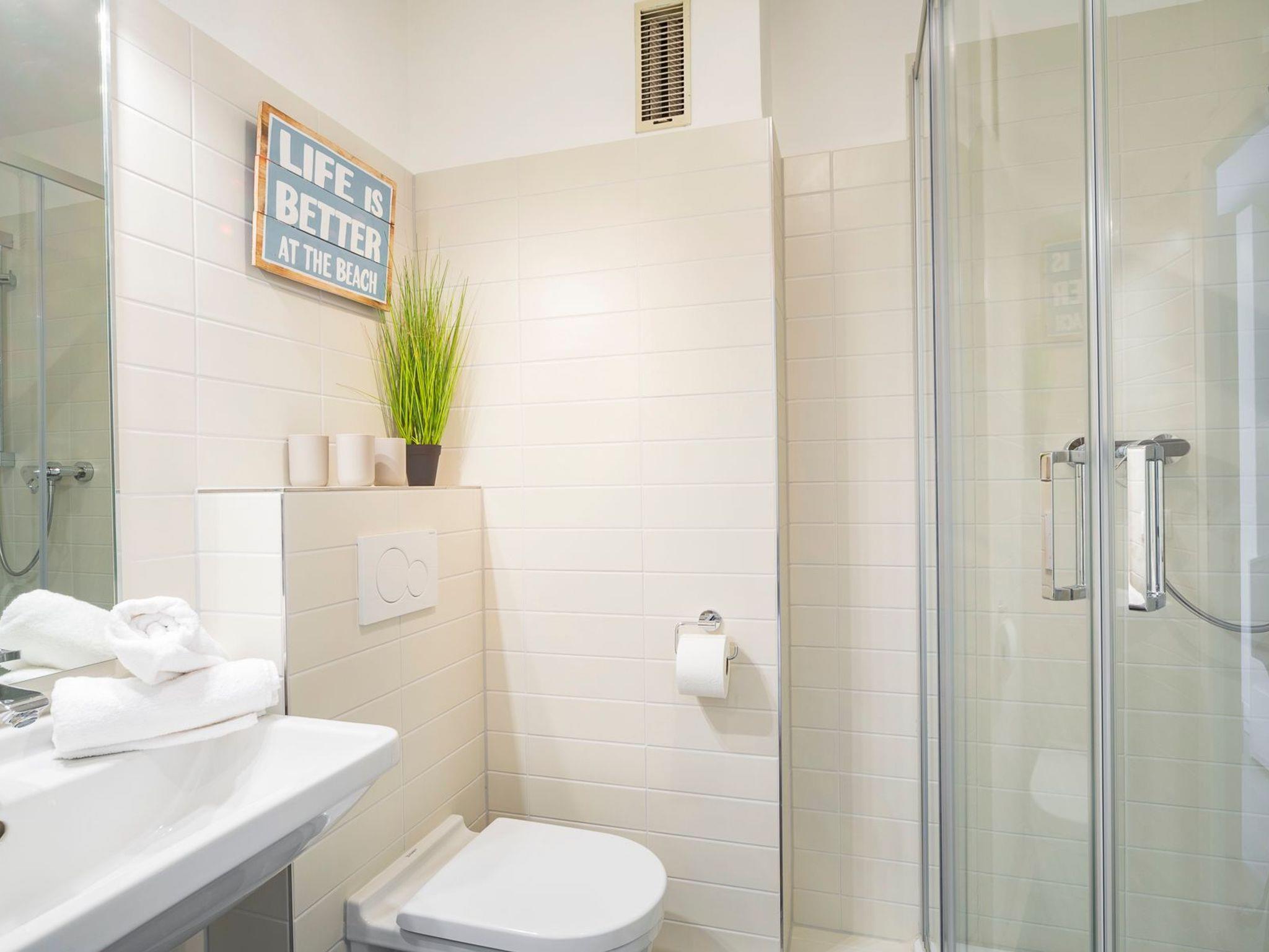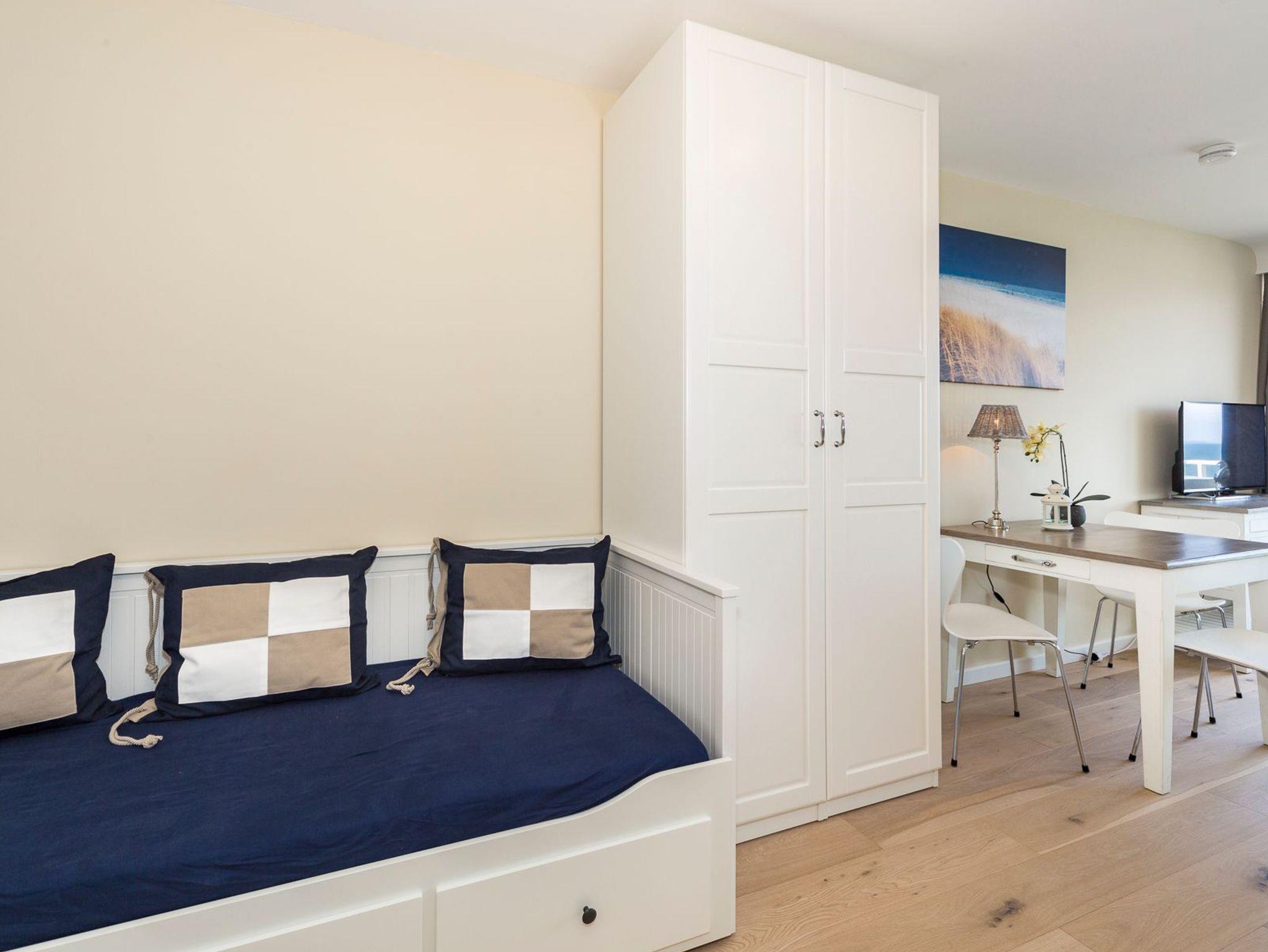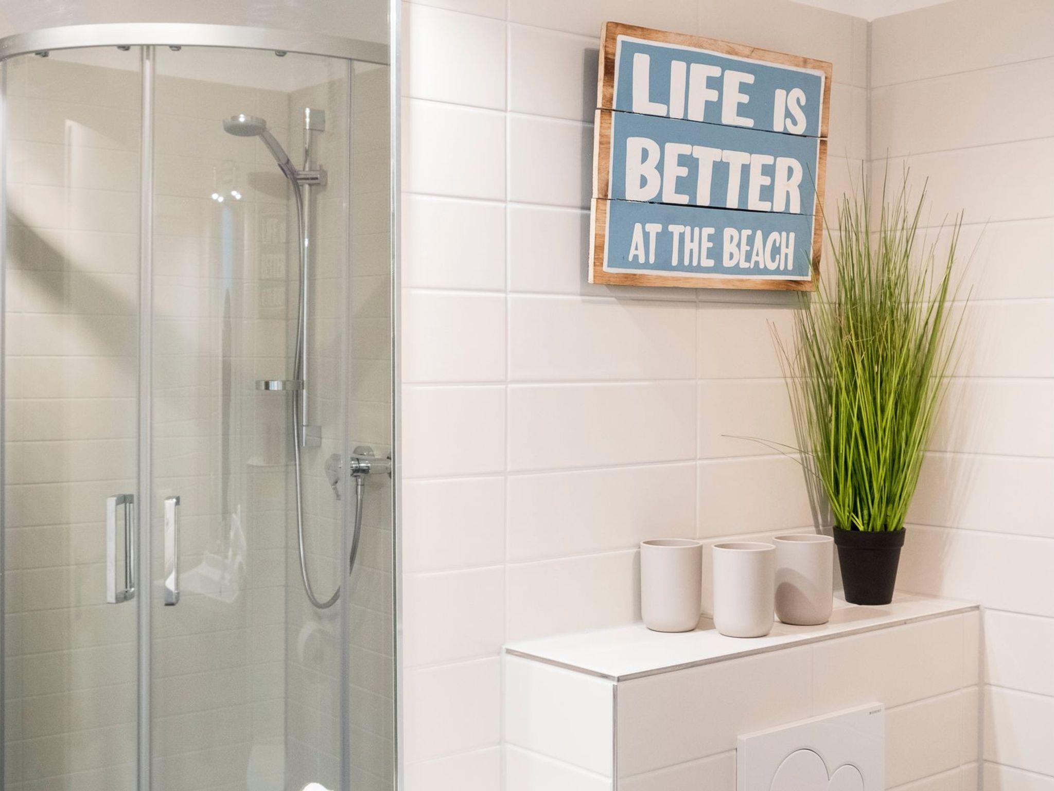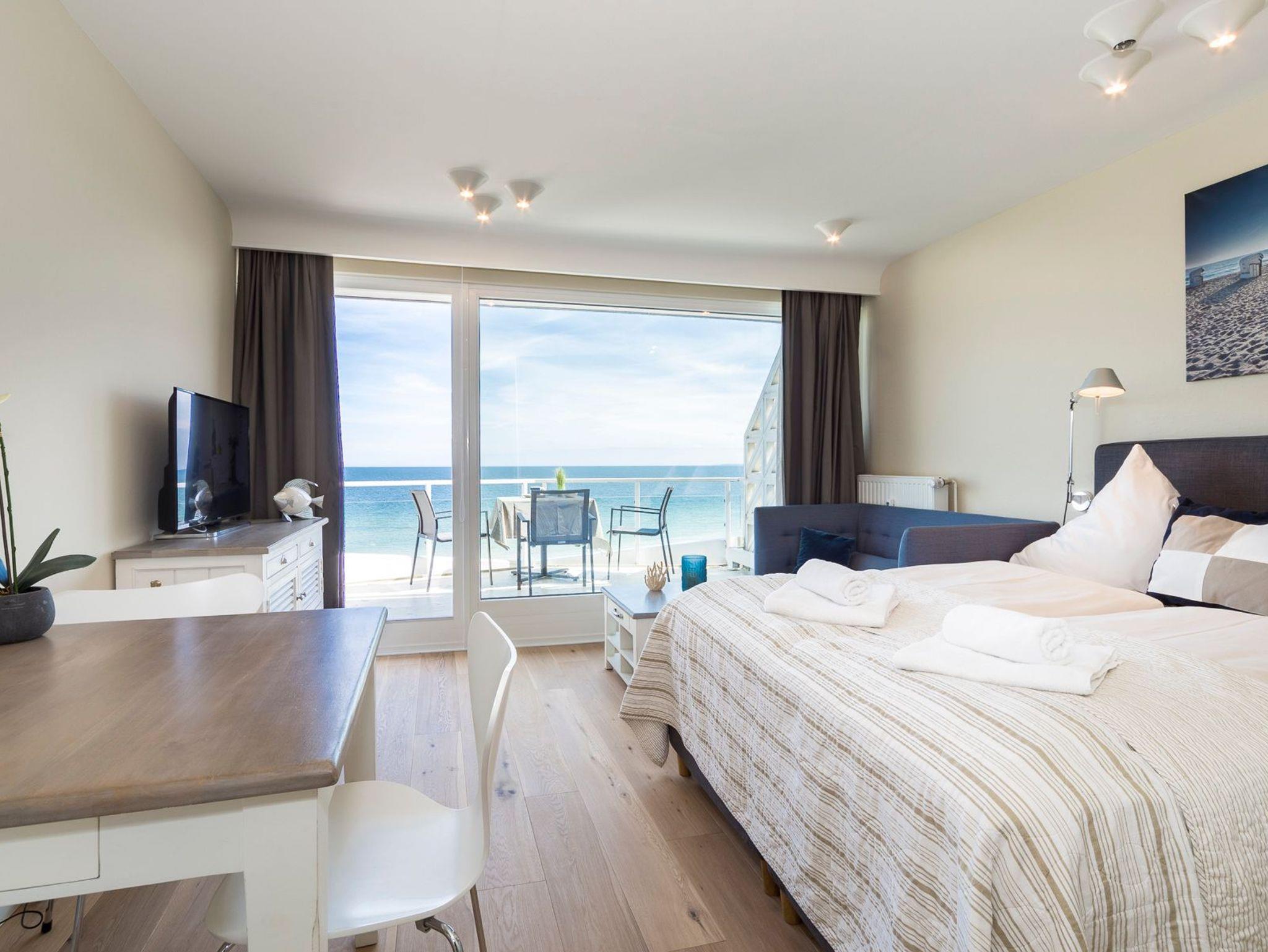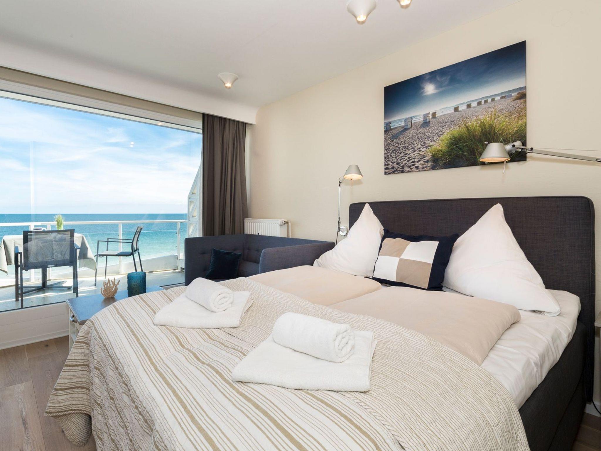 Die 1-Zimmer-Wohnung, ca. 32 m², bietet Platz für bis zu zwei Erwachsene und ein Kind. Design-Klassiker wie Riviera-Maison-Tische, Ligne-Roset-Sofas, Arne-Jacobsen-Stühle, Artemide-Leuchten und Lexington-Geschirr begeistern Designfreunde und sorgen für eine stylische, aber auch gemütliche Atmosphäre. Echtholzparkett, ein modernes Duschbad und eine Pantryküche mit Geschirrspüler, Nespresso-Maschine und Holzarbeitsplatte. WLAN und ein Flachbildfernseher runden das Angebot ab, eine Spielesammlung ist ebenfalls vorhanden. Der große Balkon zur Ostsee lädt zum Outdoor-Living ein; durch die Terrassenbauweise des Hauses können Sie hier die Sonne lange genießen. Für Ihren Pkw steht Ihnen hinter dem Haus ein Stellplatz zur Verfügung. Falls Sie eigene Fahrräder mitbringen möchten, können Sie diese in einer nur zu dieser Wohnung gehörenden abschließbaren Fahrradbox unterbringen.