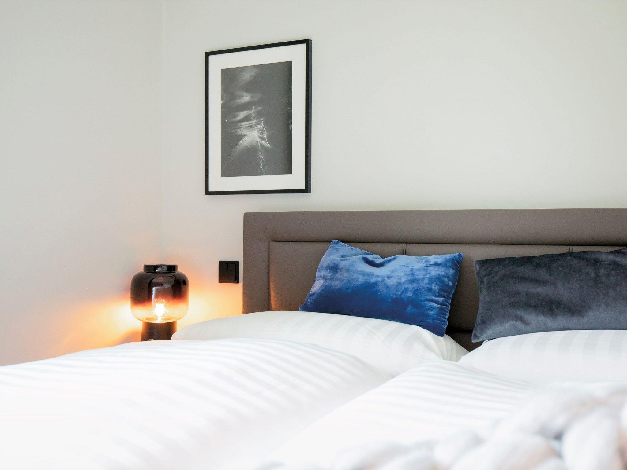 Die beiden komfortabel ausgestatteten Schlafzimmer sind mit extragroßen Betten für zwei ausgestattet. Vom größeren der beiden Schlafzimmer aus betreten Sie direkt den Ost-Balkon. Der kleinere Schlafraum verfügt über ein großes Fenster mit Südblick. Für ein angenehmes Raumklima sorgt in allen Räumen die integrierte Klimaanlage.