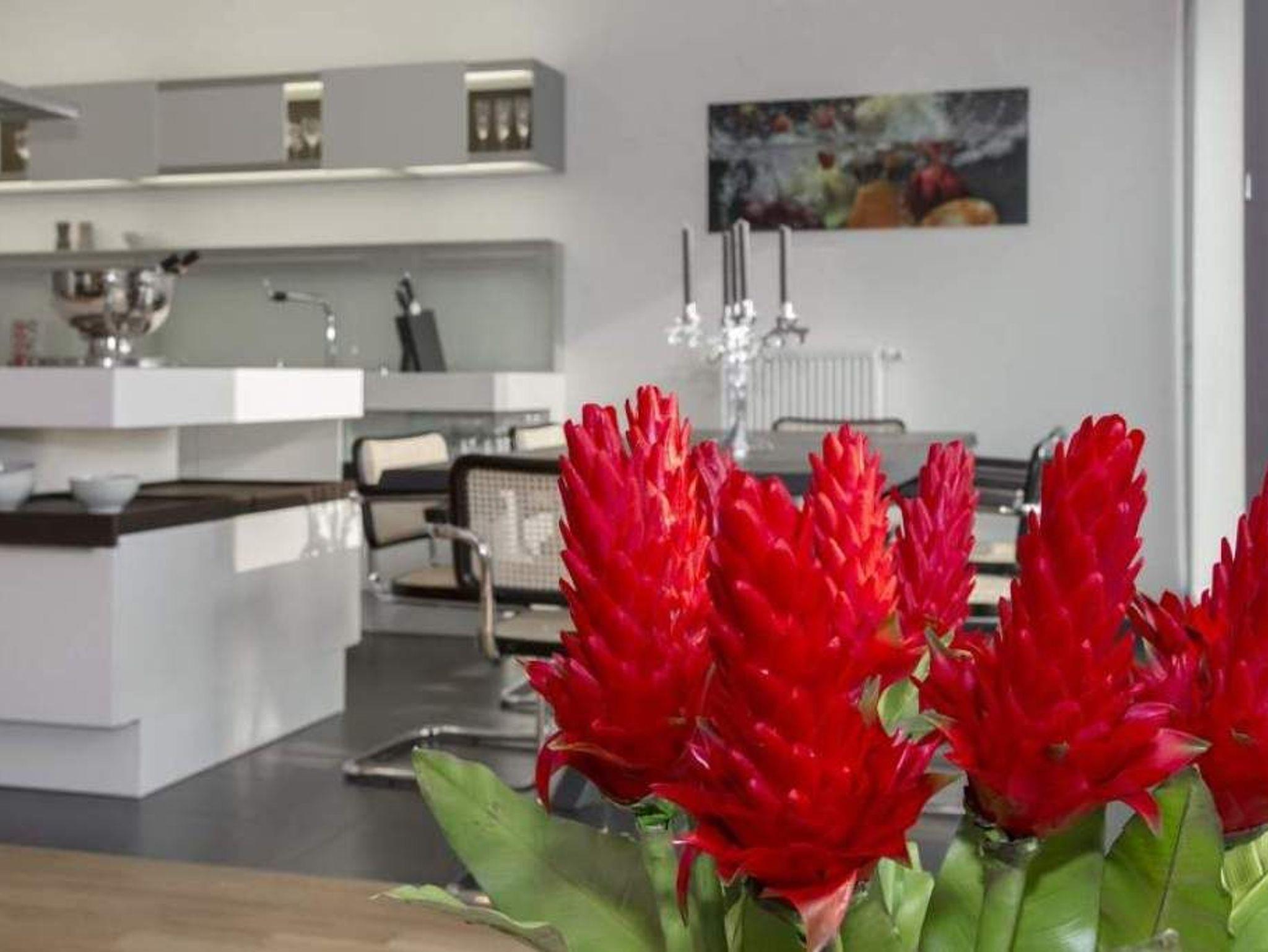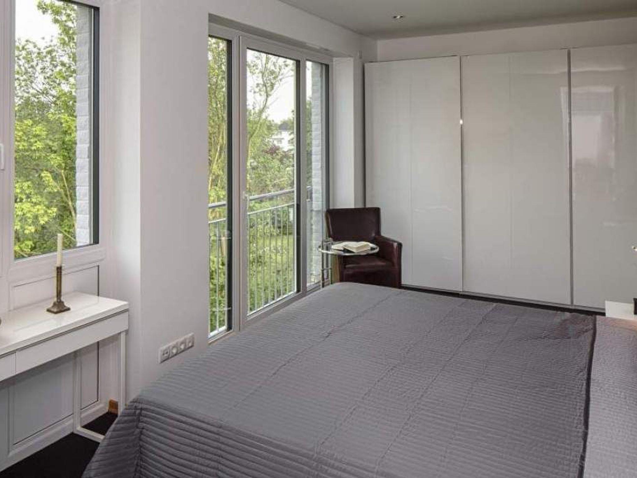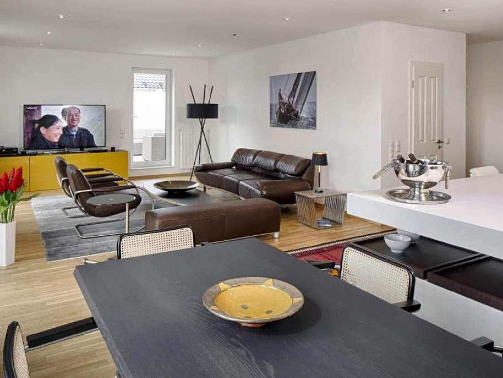 Diese Ferienwohnung heißt Sie in einem großen Flur willkommen. Der großzügige Wohn-Essbereich bietet Ihnen ein Ledersofa, Lederstühle und eine Bank sowie einen großzügigen Esstisch mit Stühlen für gesellige Stunden. Neben dem Flachbildfernseher, einem CD-Player und einem Blu-ray-Player steht Ihnen selbstverständlich kostenloses WLAN zur Verfügung. Die moderne und hochwertige Küche ist komplett ausgestattet, verfügt über eine Tchibo Cafissimo Kapselmaschine und lässt keine Wünsche offen. Die Kücheninsel mit Sitzgelegenheiten lässt Sie auch beim Kochen nicht alleine und die gemeinsame Zubereitung macht noch viel mehr Spaß. Die ca. 40 qm große, nicht einsehbare Dachterrasse ist mit Lounge-Elementen, einer Sonnenliege und einem Esstisch mit 4 Sesseln ausgestattet. Genießen Sie den Blick über den Kurpark und die Ruhe. Schlafzimmer 1 verfügt über ein Boxspringbett (180 cm breit), 2 Nachttischschränke, einen Kleiderschrank, einen Ledersessel, einen Schreibtisch und einen Flachbildfernseher. Schlafzimmer 2 verfügt über ein Boxspringbett (100 cm), Nachttischschrank, Schreibtisch, Sessel, Kleiderschrank und einen Flachbildfernseher. Schlafzimmer 3 verfügt über ein Boxspringbett (160 cm), 2 Nachttischschränke, einen Kleiderschrank und einen Flachbildfernseher. Sie gelangen von allen Schlafzimmern auf die Dachterrasse. In allen Räumen sind zur Verdunkelung elektrische Rollläden angebracht. Das große Tageslicht-Bad ist mit einer bodentiefen Dusche, einem Waschtisch, einem großen Spiegel und neben der Fußbodenheizung mit einem zusätzlichen Handtuchheizkörper ausgestattet. Hier ist auch die Waschmaschine mit Trockner untergebracht. Im zweiten Bad ist ebenso eine bodentiefe Dusche und neben der Fußbodenheizung ein zusätzlicher Handtuchheizkörper vorhanden.