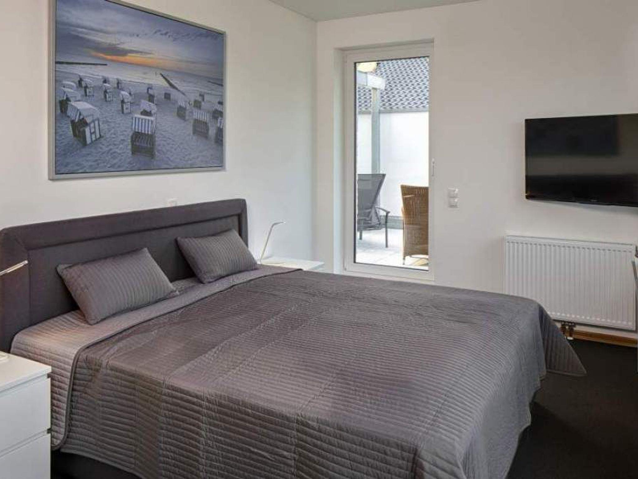 Diese lichtdurchflutete Ferienwohnung mit einer fast 40 m² großen und nicht einsehbaren Dachterrasse im obersten Stockwerk gibt Ihnen einen Eindruck modernen und großzügigen Wohnens. Die Fenster sind mit elektrischen Rollläden ausgestattet. Zusätzlich kann der Wohnraum mit modernen Schiebeelementen beschattet werden. Ein weiteres Highlight ist die hochwertige Medienausstattung. Ihr Feriendomizil liegt sehr zentral und die Dünenmeile mit zahlreichen Cafés, Restaurants und Geschäften ist fußläufig in wenigen Minuten zu erreichen. Der Tiefgaragenstellplatz sorgt für eine sichere Unterbringung Ihres Autos und mit dem Fahrstuhl gelangen Sie bequem zu Ihrer Ferienwohnung. Ein Kinderreisebett mit Matratze und ein Hochstuhl stehen Ihnen in dieser Ferienwohnung kostenlos zur Verfügung. Für die Strandkorbsaison (15.05. - 15.09.) steht am Strand kostenlos ein Strandkorb für Sie bereit.
