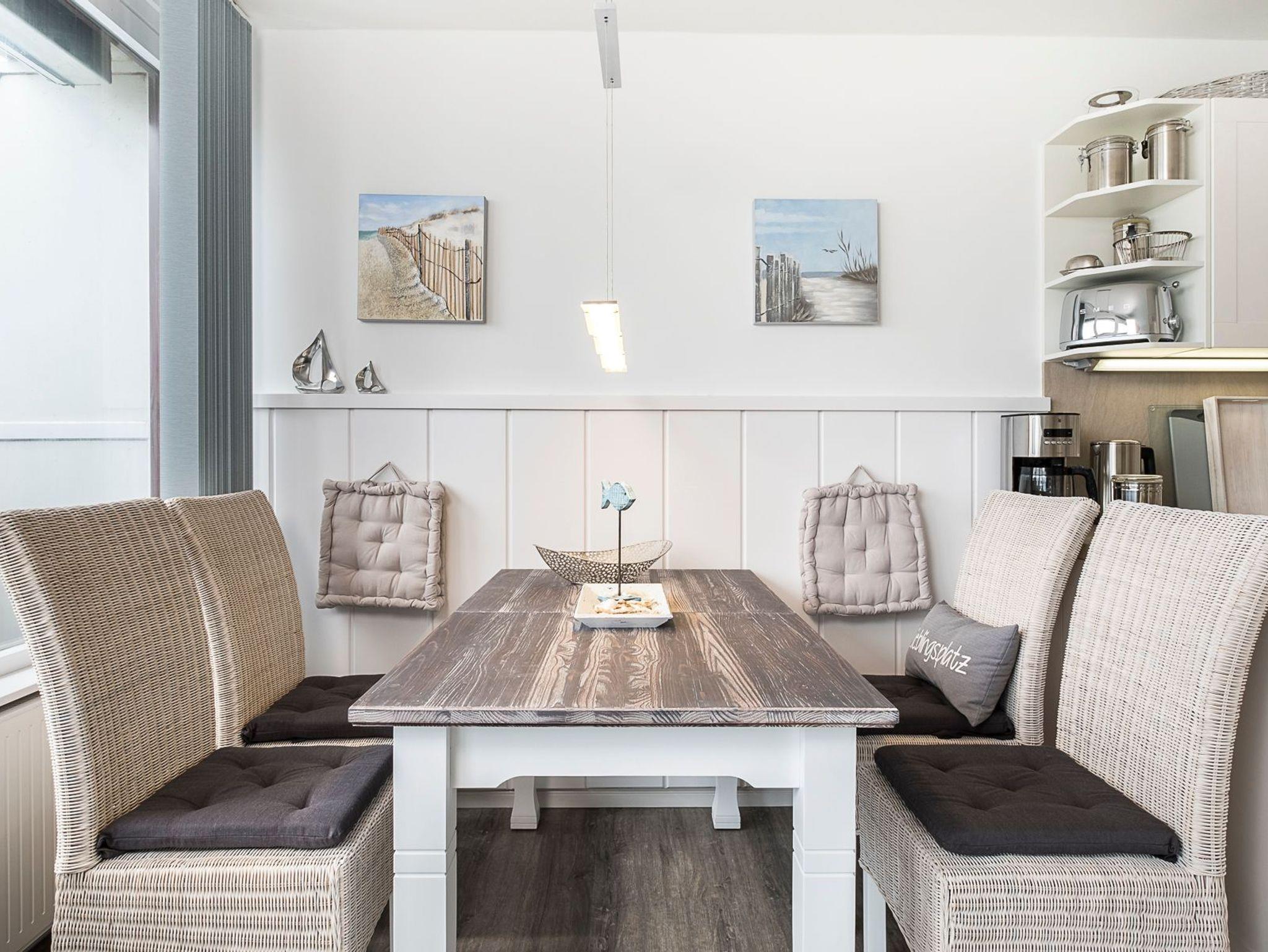 Meerblick, Kaffeemaschine mit Milchaufschäumer, WMF-WOK, Fußbodenheizung, Handtuchheizkörper, Kinderbett, Kinderhochstuhl und Babybadewanne, Fluxtec-Bollerwagen, WLAN, Kfz-Außenstellplatz, Strandkorb gegenüber am Strand (saisonbedingt 15.05. ? 15.09.).