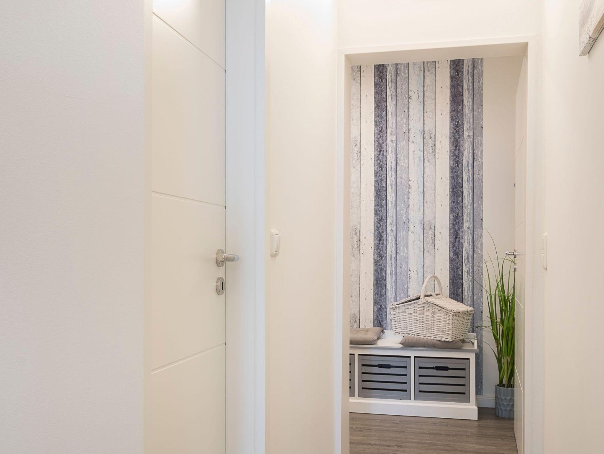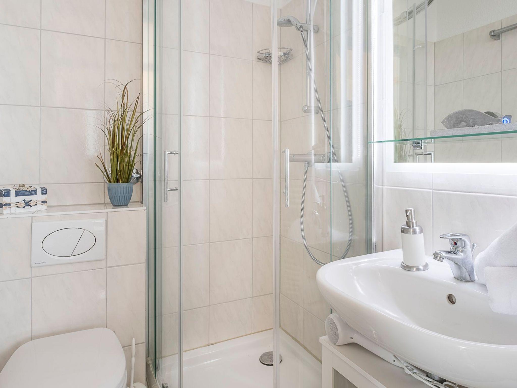 Helles, gemütliches Wohnzimmer, mit 4-K-Ultra-HD-TV mit Ambilight an der Wand. Offene Küche mit angrenzendem Essbereich. Vom Essbereich aus haben Sie einen schönen Meerblick; hier können Sie lange verweilen, auch für fröhliche Spielabende bietet Ihnen dieser Bereich ausreichend Platz und Bequemlichkeit. Das Schlafzimmer ist mit einem Doppelbett (1,60 x 2,00m), einem Kleiderschrank und einem Wand-TV ausgestattet. Auch von hier aus haben Sie einen herrlichen Ostseeblick. Ein weiteres Schlafzimmer ohne Fenster, mit einem Einzelbett, bietet ausreichend Platz für eine dritte Person. Auf dem Flur ist eine Garderobe mit einem Ganzkörperspiegel. Das Duschbad ist in heller Optik. Das Haus verfügt über eine Waschmaschine im Waschkeller und einen Fahrradkeller.