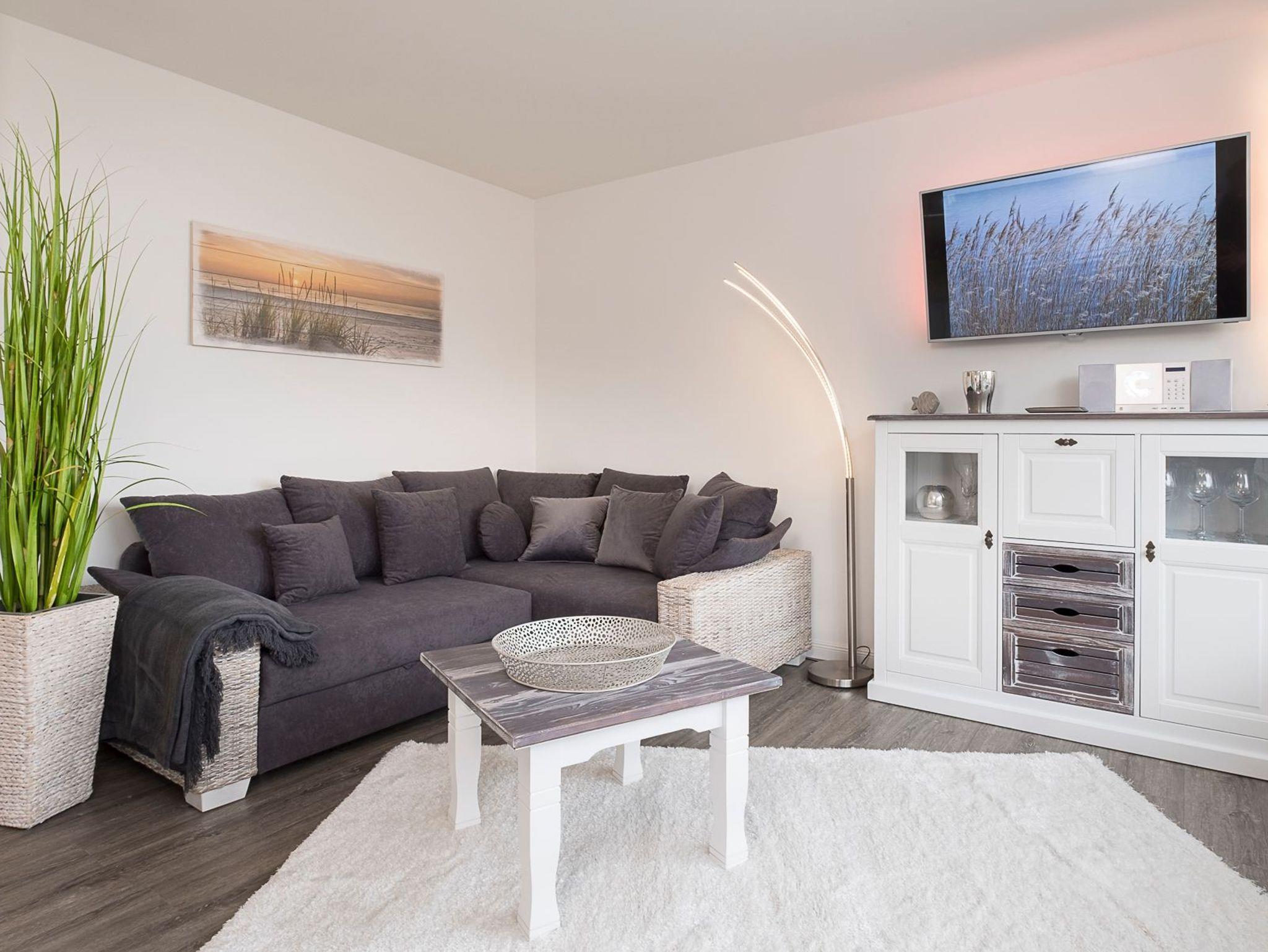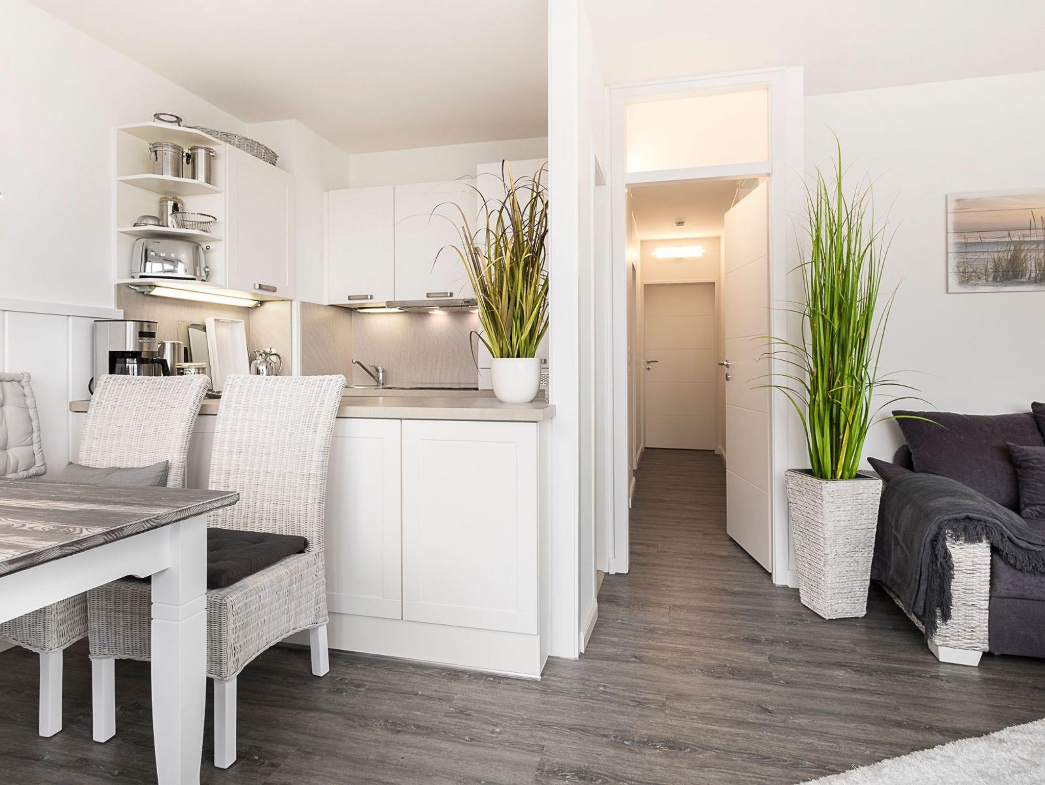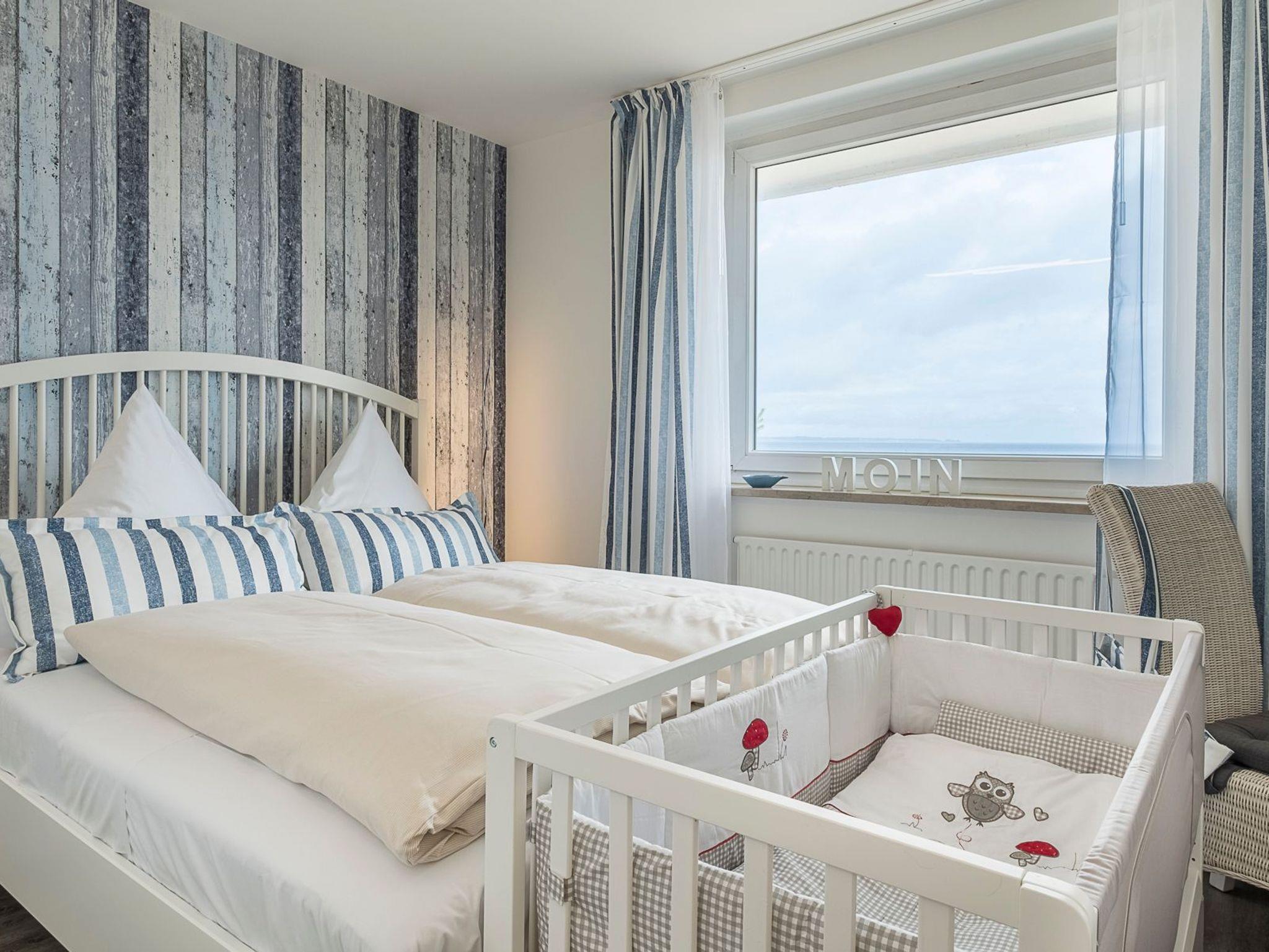 Meerblick, Kaffeemaschine mit Milchaufschäumer, WMF-WOK, Fußbodenheizung, Handtuchheizkörper, Kinderbett, Kinderhochstuhl und Babybadewanne, Fluxtec-Bollerwagen, WLAN, Kfz-Außenstellplatz, Strandkorb gegenüber am Strand (saisonbedingt 15.05. 15.09.).