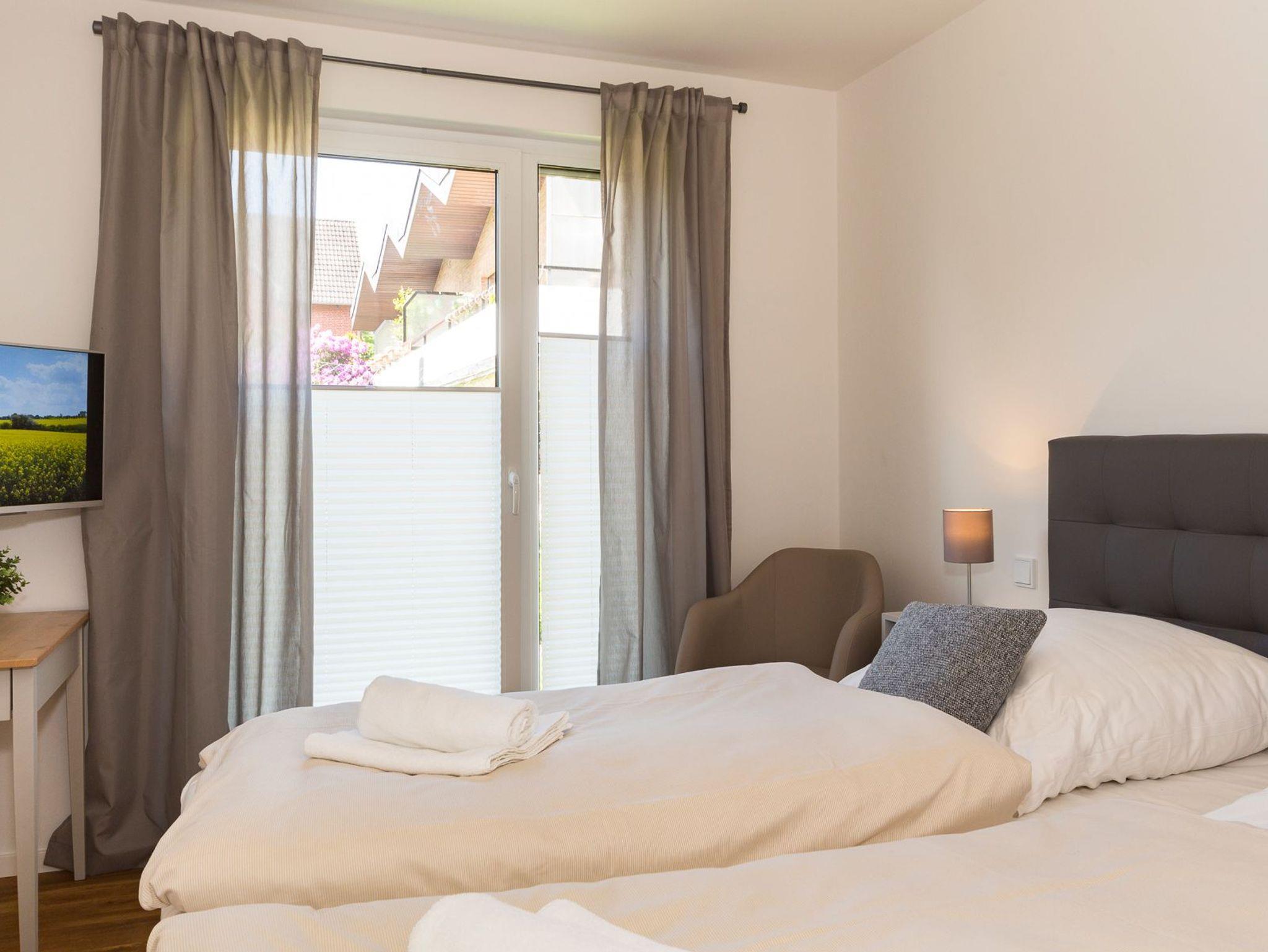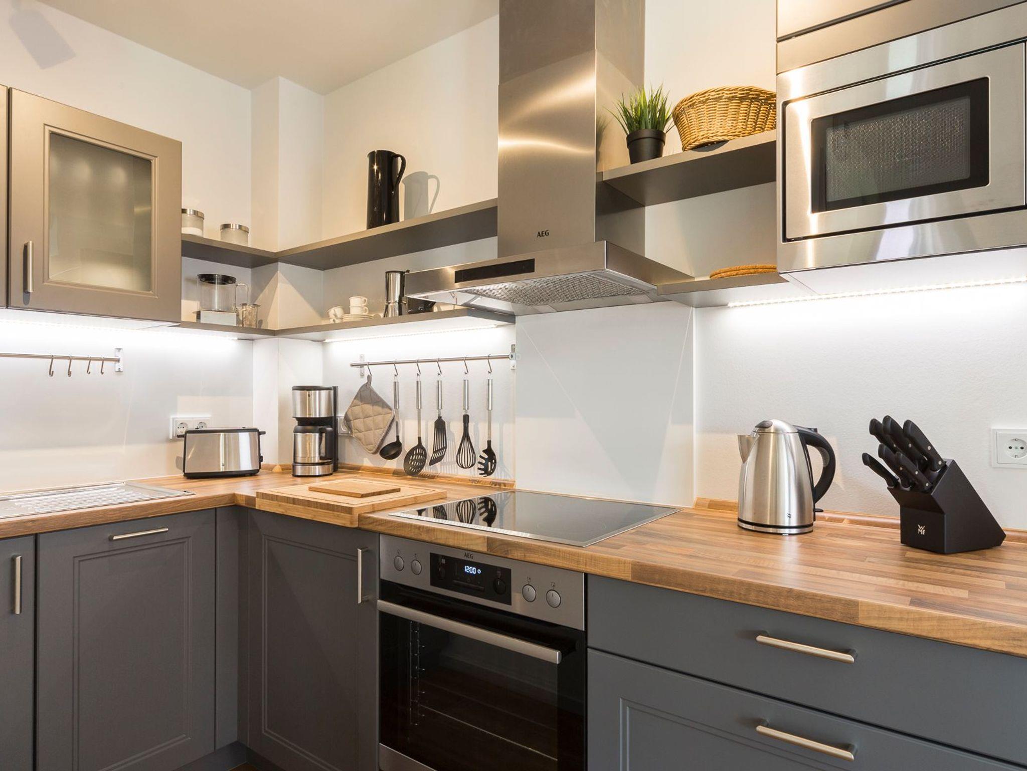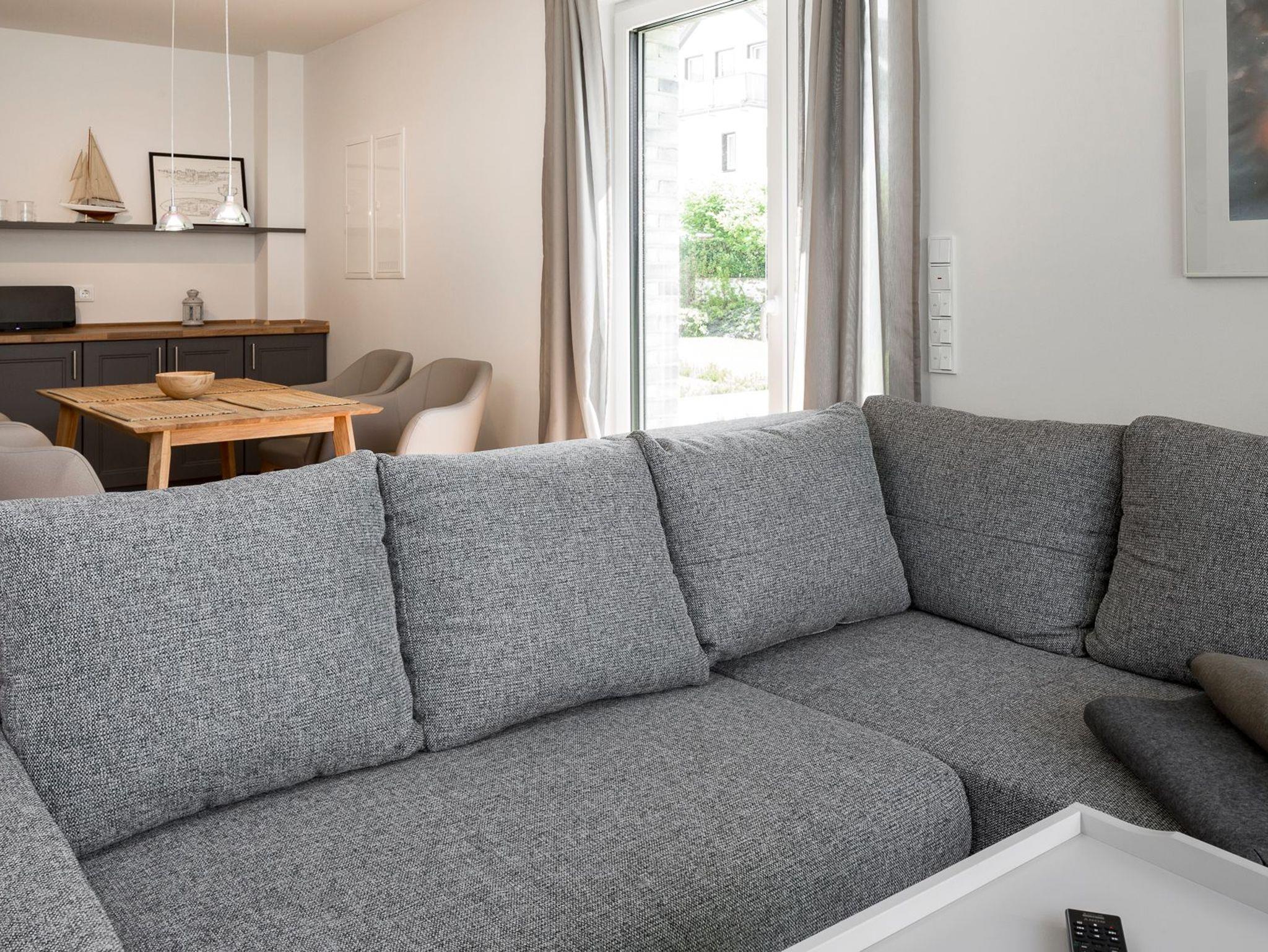 Die Ferienwohnung bietet Ihnen einen gemütlichen Wohn-Essbereich mit einer Eck-Couch und einem ansprechenden Essbereich. Neben dem Flachbildfernseher steht Ihnen eine Stereoanlage zur Verfügung. Kostenloses WLAN ist selbstverständlich. Eine moderne Küche lässt keine Wünsche offen. Das Duschbad ist mit einer bodengleichen Dusche und einem großen Spiegel ausgestattet. Neben der Fußbodenheizung ist hier ein zusätzlicher Handtuchheizkörper angebracht. Das Schlafzimmer verfügt über eine Kommode, ein bequemes Boxspringbett (1,80cm x 2,00m) und einen Flachbildfernseher. Über die Außenrollläden haben Sie die Möglichkeit, das Schlafzimmer sowie das Wohnzimmer nach Ihren Wünschen zu verdunkeln.