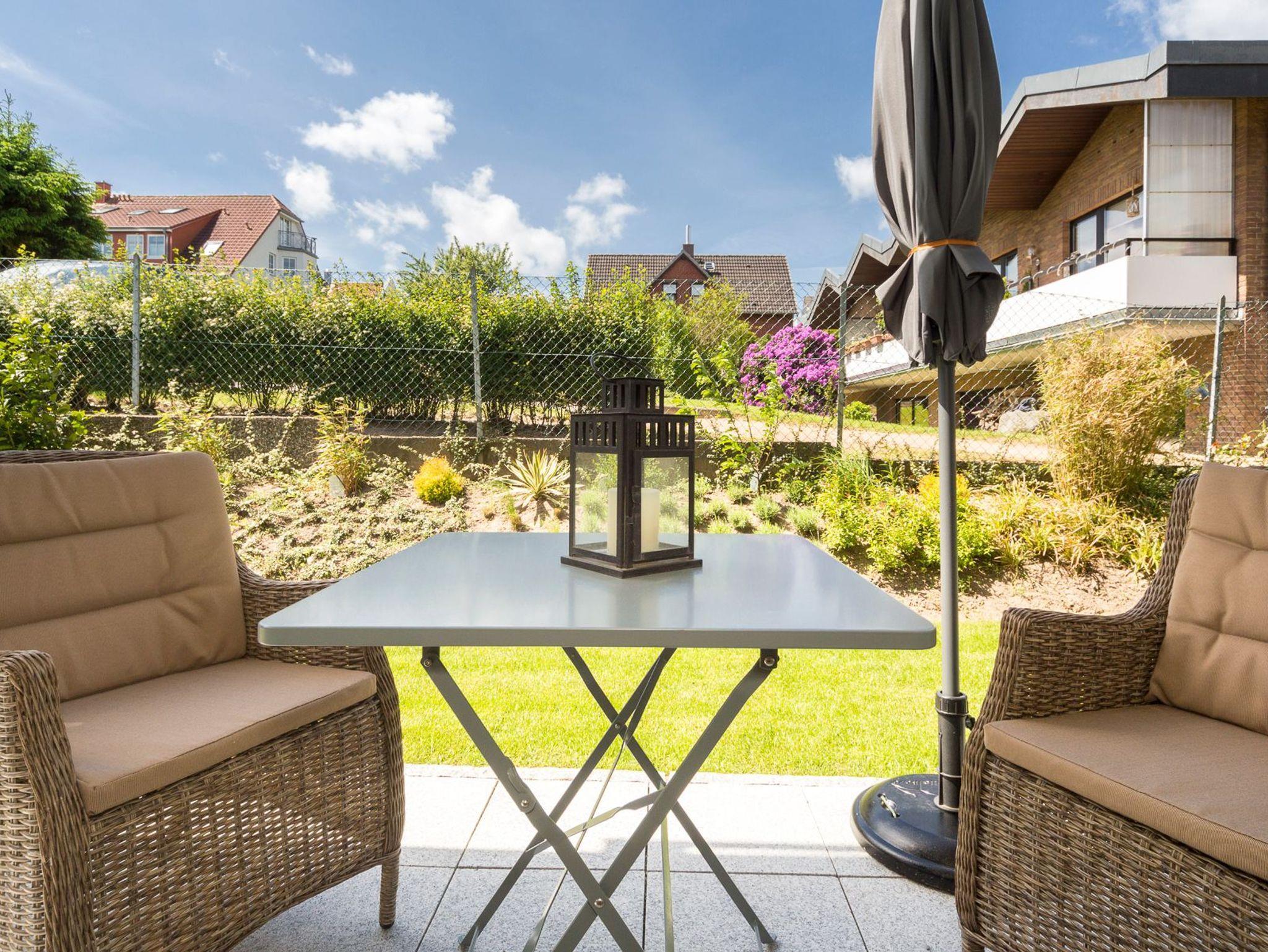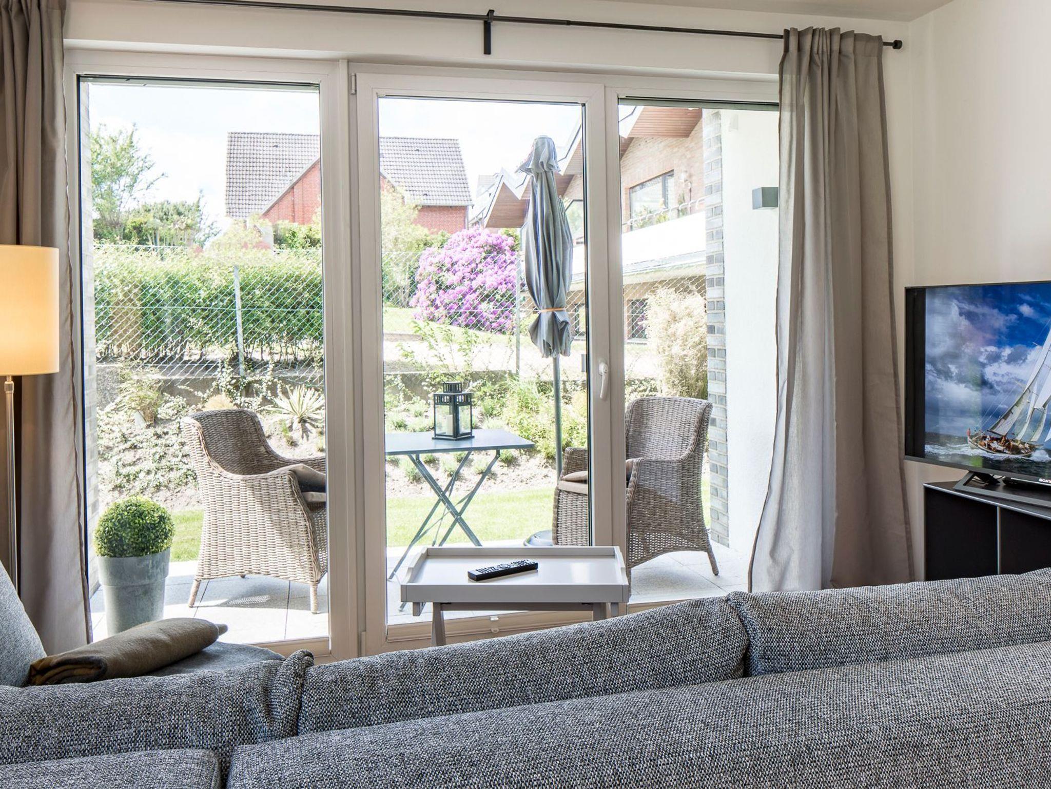 Sehr ansprechende 2-Zimmer-Ferienwohnung, ca. 54 m² im Erdgeschoss, mit herrlicher Terrasse nach Südwesten. Inkl. PKW-TG-Stellplatz (Durchfahrtshöhe 2,08 m) sowie Strandkorb am Strand (saisonbedingt 15.05. 15.09.).