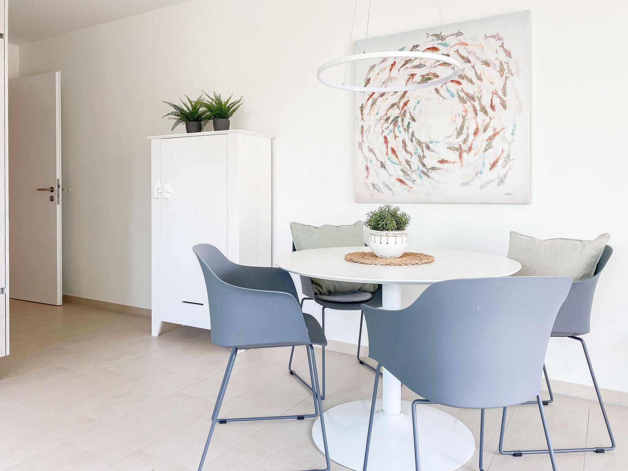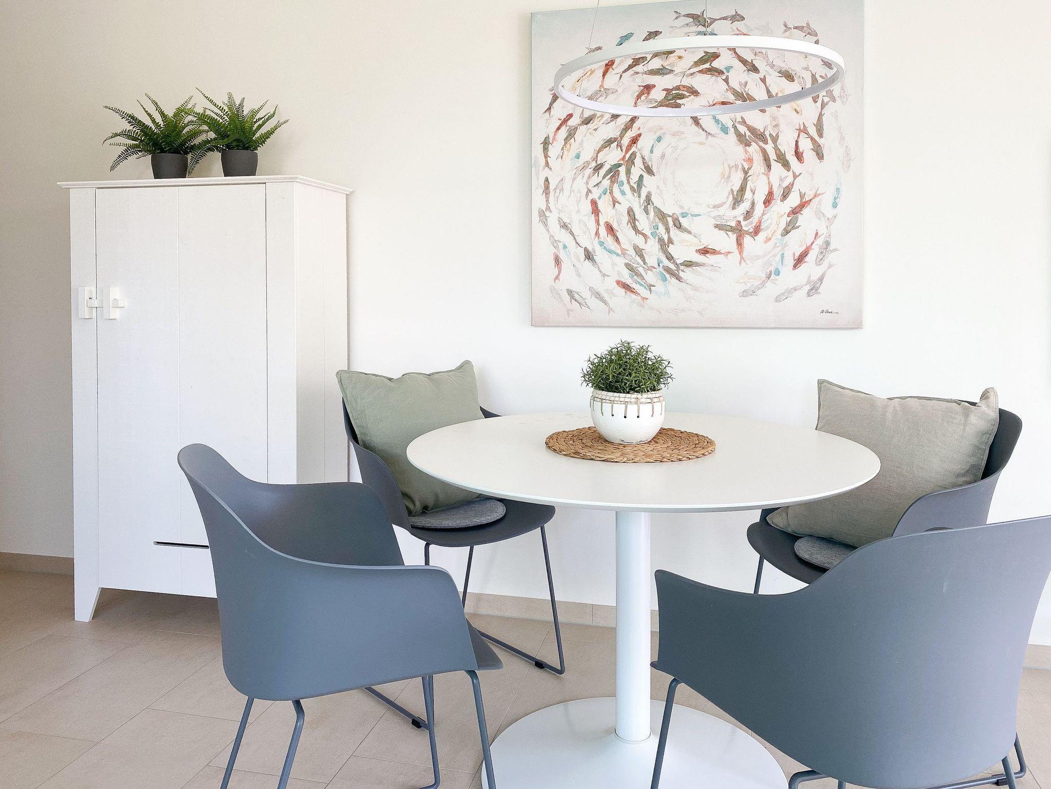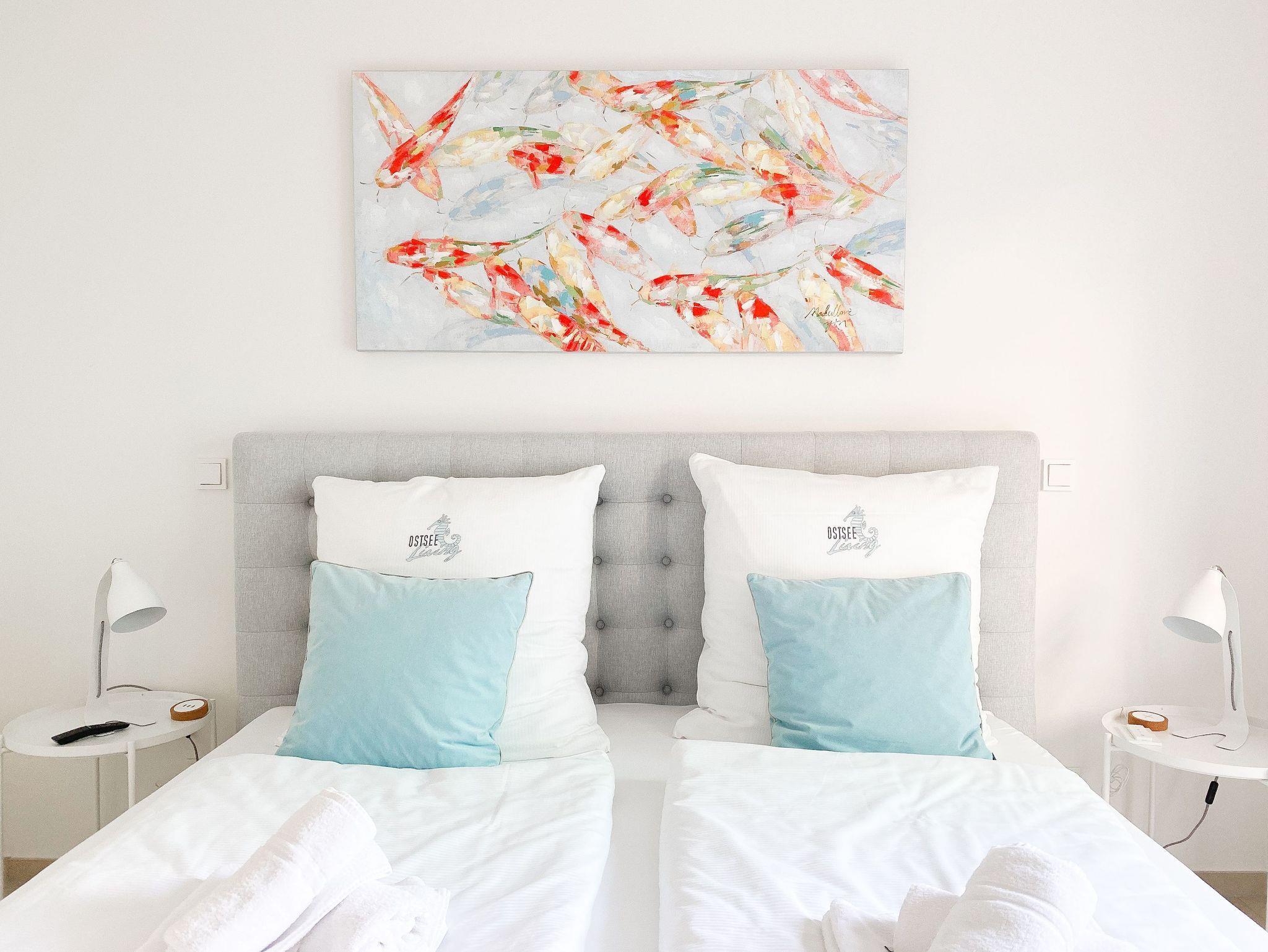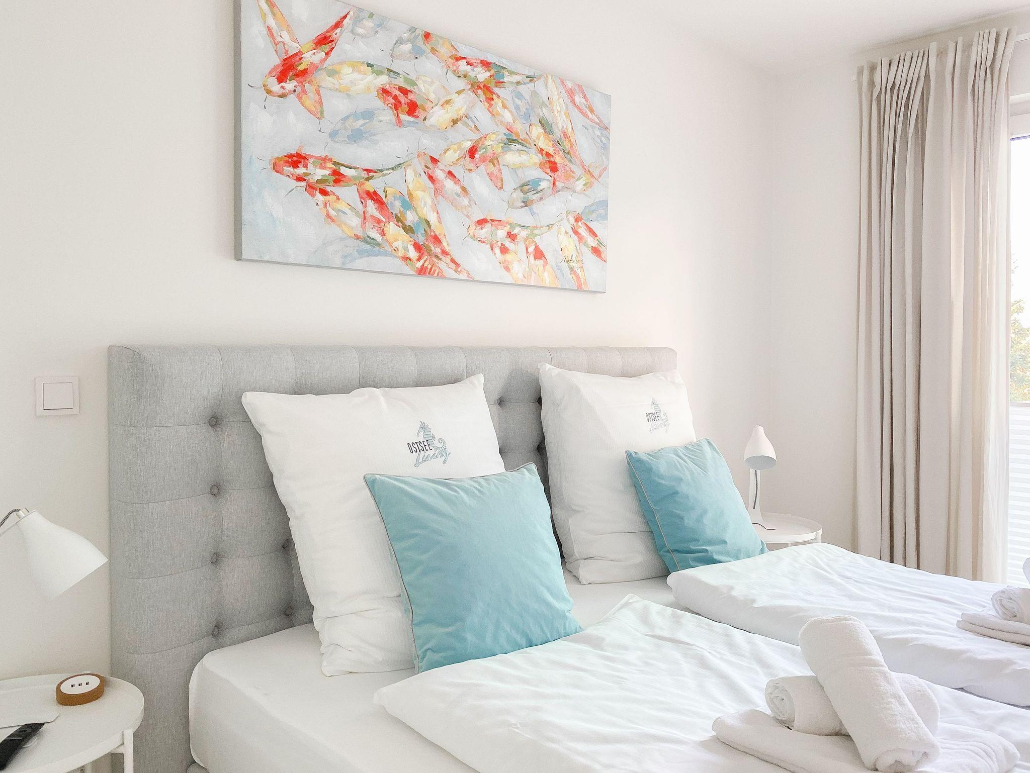 Die äußerst hochwertig eingerichtete und mit allen Annehmlichkeiten ausgestattete Wohnung bietet jeglichen Komfort für maximal 4 Personen, um einen entspannten Urlaub zu verleben. Helle Räumlichkeiten mit großen Fensterflächen, elektrischen Außenjalousien und Fußbodenheizung sorgen für ein zeitgemäßes Ambiente zum Wohlfühlen. Der Wohnbereich mit hochwertigem Sofa mit Schlaffunktion, die offene, bestens ausgestattete Küche sowie der anschließende Essbereich bilden den Mittelpunkt der Wohnung. Die großzügig angelegte Terrasse ist zum Südwesten ausgerichtet und mit Gartenmöbeln und Sonnenliege ausgestattet. Es steht ein großes Schlafzimmer mit Boxspringbett und TV sowie ein modernes Duschbad mit Walk In Dusche und integrierter Waschmaschine zur Verfügung.