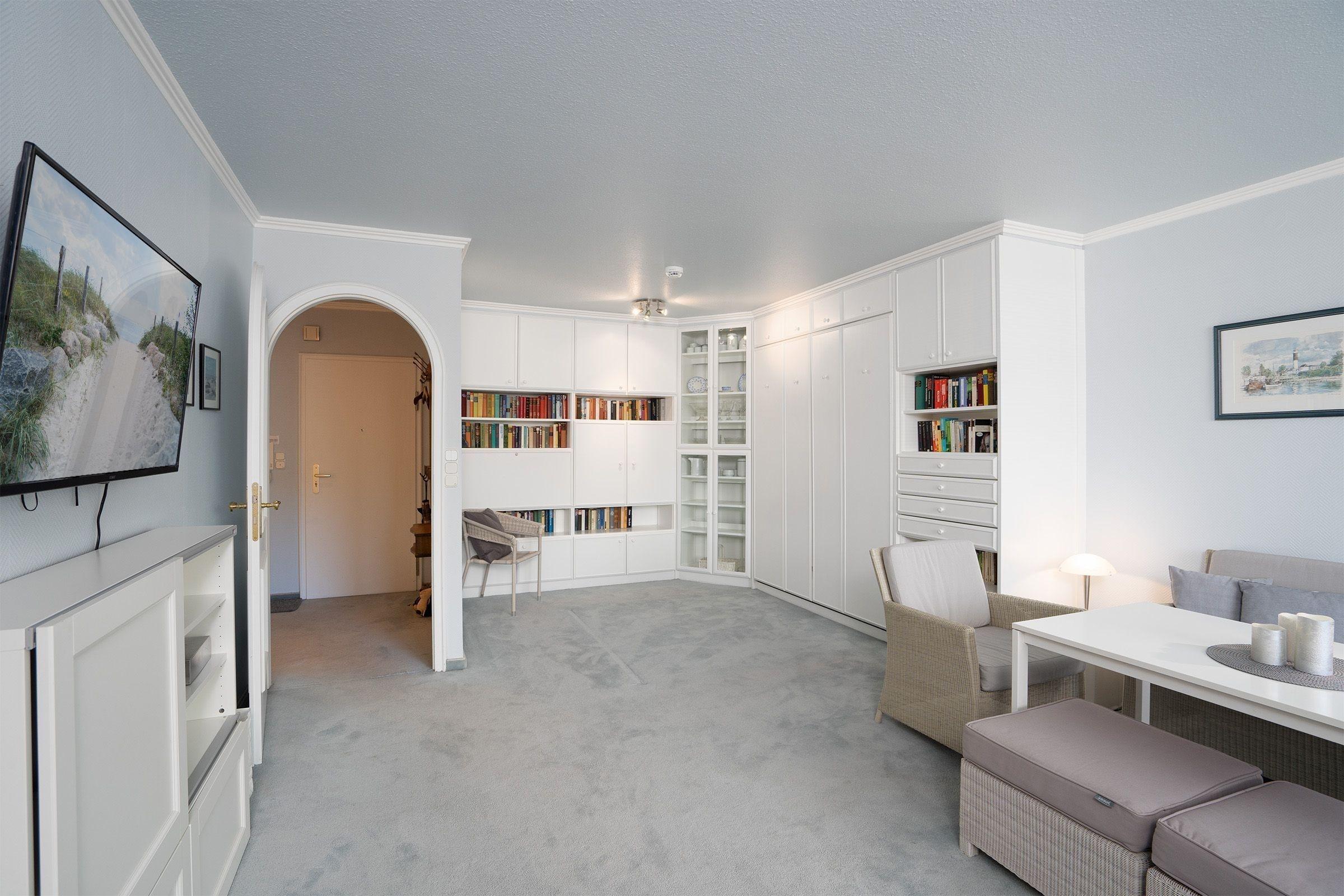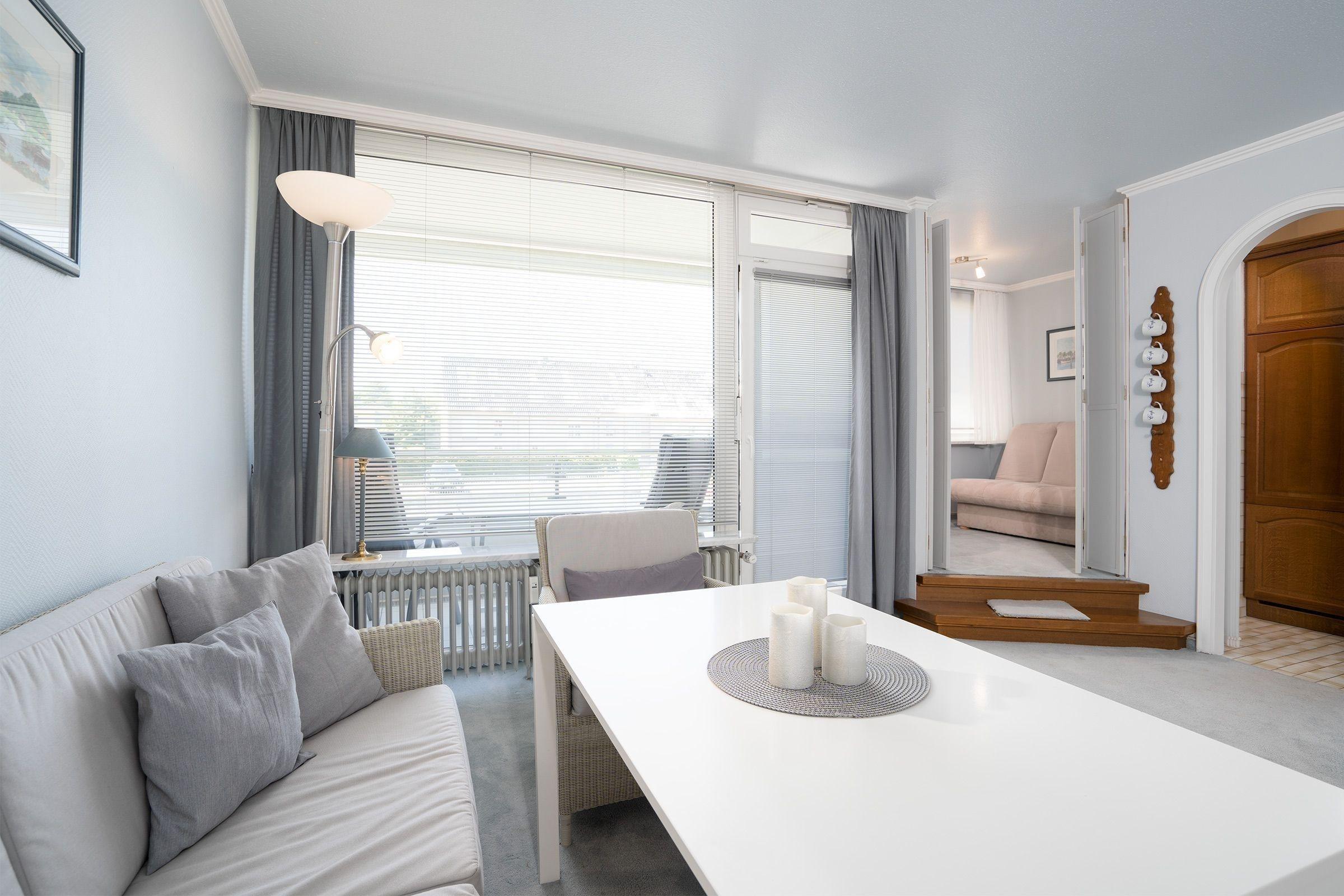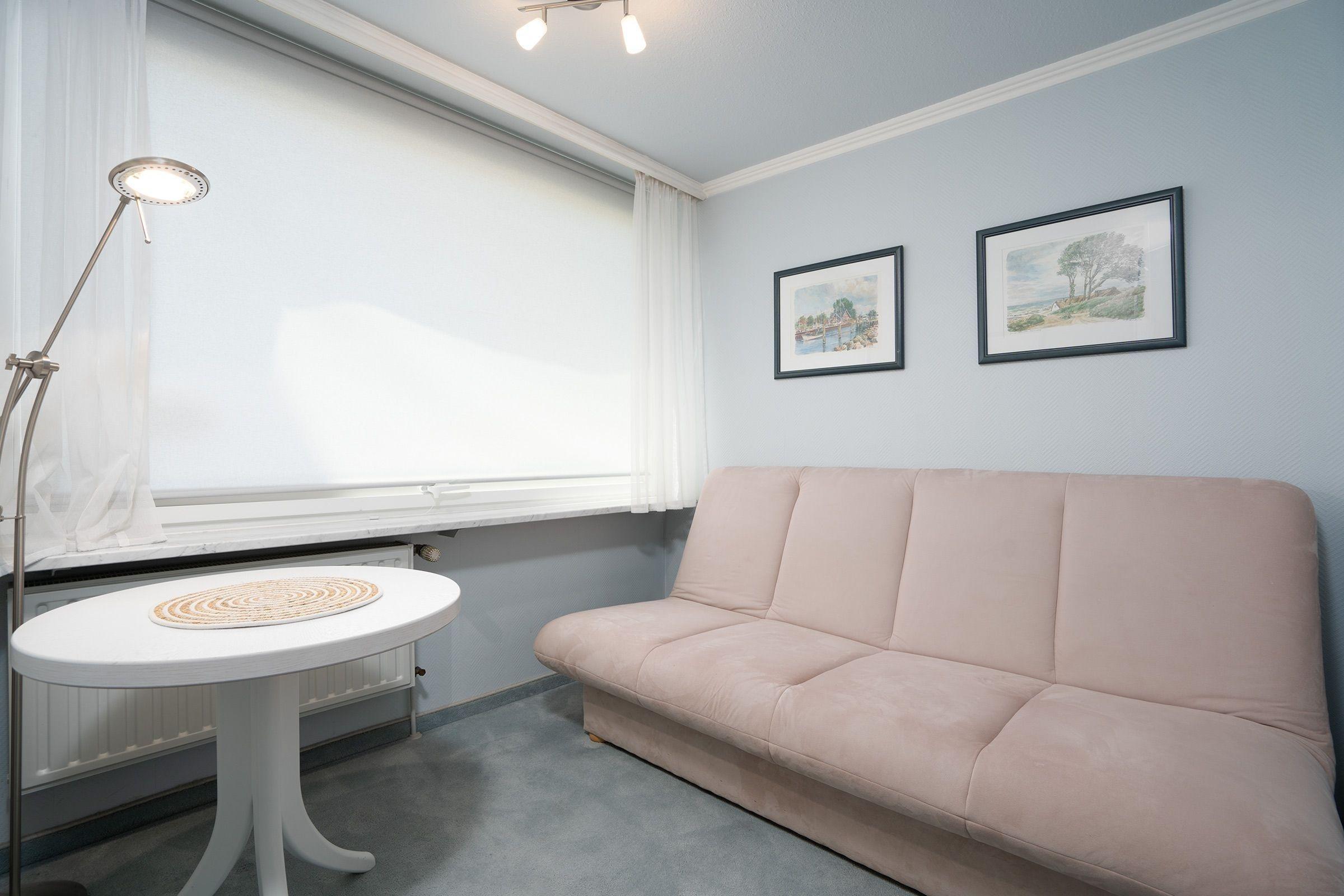Das ca. 50 m² große 2-Zimmer-Appartement im 2. Obergeschoss bietet eine moderne und einladende Einrichtung. Der großzügige Wohnbereich, ausgestattet mit einem gemütlichen Sofa und Teppichboden, lädt zum Entspannen ein. Die kleine Küche ist funktional mit einer Kaffeemaschine, einem Wasserkocher, einer Mikrowelle und einem Backofen ausgestattet. Ein Schrankbett (2 m x 0,80 m x 2,00 m) im Wohnraum bietet Platz für zwei Personen und kann bei Bedarf verstaut werden. Ein separates Zimmer mit einer Schlafcouch (1,20 m x 2 m) ergänzt die Schlafmöglichkeiten. Das Duschbad/WC verfügt über eine Duschkabine, ein Waschbecken, einen Spiegelschrank und einen Handtuchwärmer. Im Flur befinden sich eine Garderobe und ein Kleiderschrank. Gemeinschaftliche Waschmaschine und Trockner sind im Haus gegen Gebühr nutzbar. Das Rauchen und das Mitbringen von Haustieren sind nicht gestattet. Ein PKW-Stellplatz steht kostenfrei zur Verfügung.